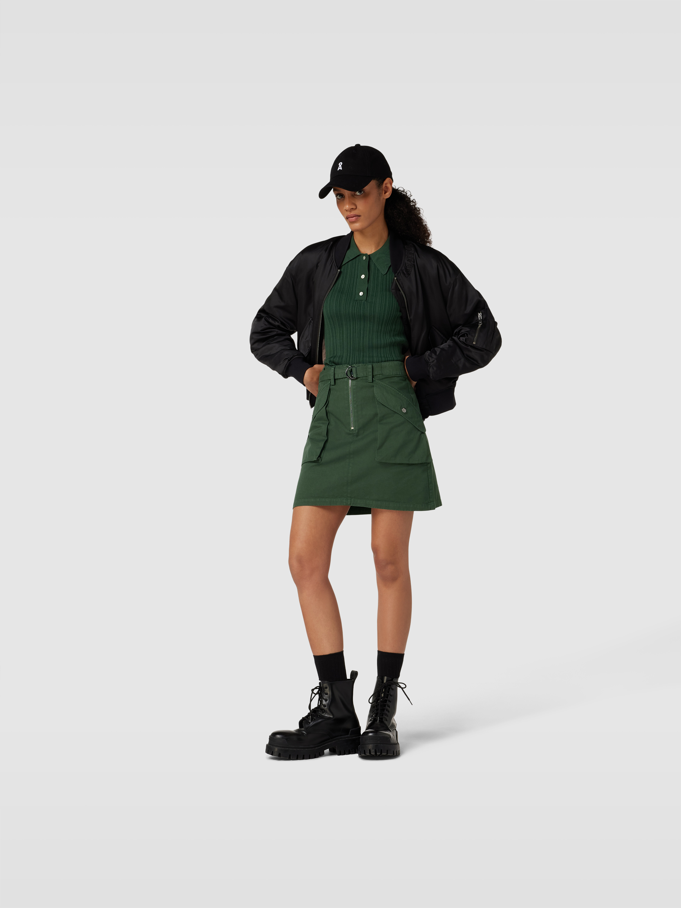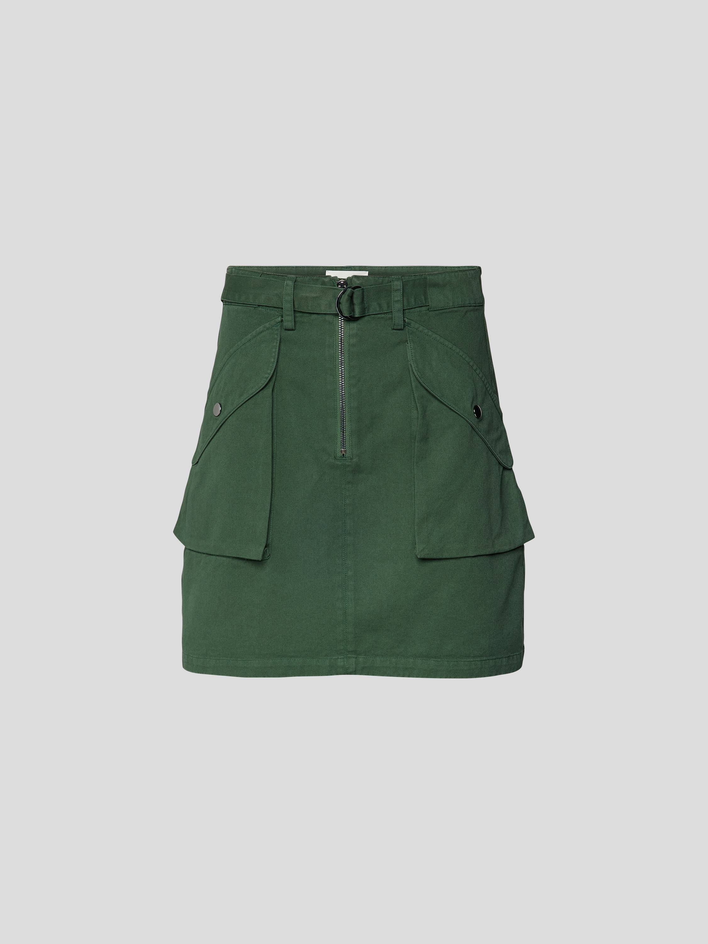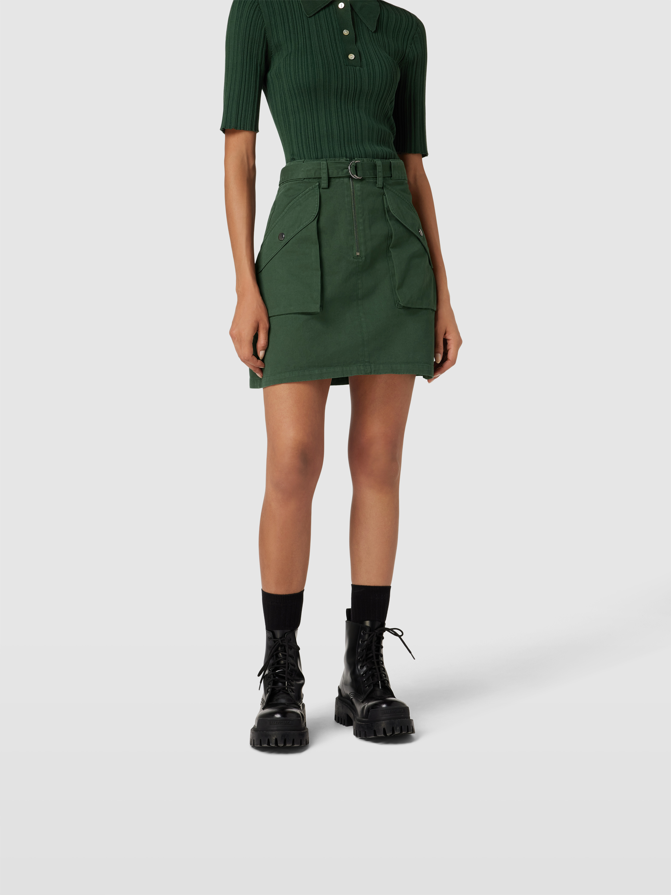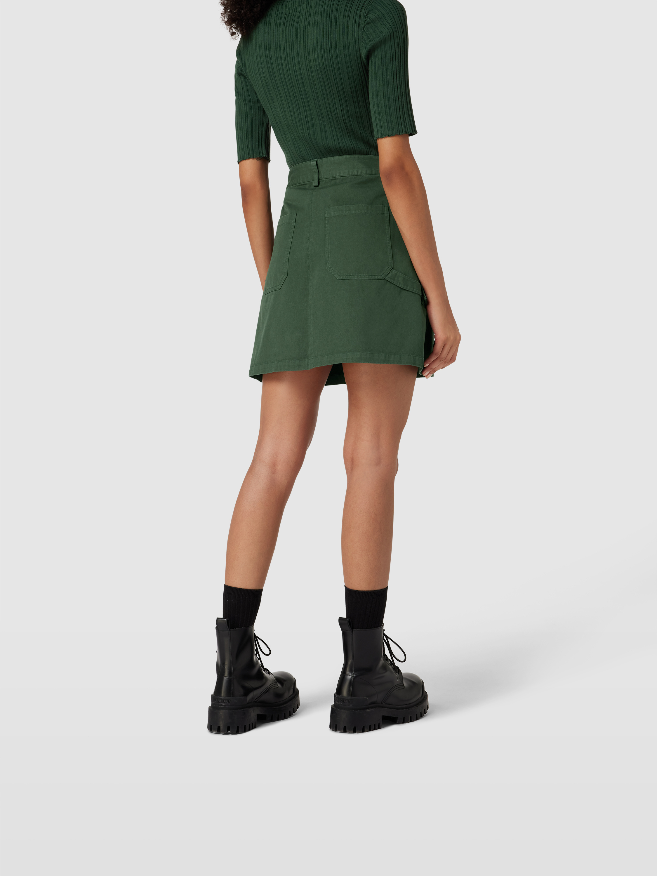 Der Minirock von Holzweiler zeigt sich in klassischer A-Linie und lässt sich vielseitig kombinieren. Dank reiner Baumwolle trägt er sich angenehm auf der Haut, während Pattentaschen und Gürtel für dezente Akzente sorgen. Mit seinem klaren Schnitt eignet er sich ideal für unkomplizierte Outfits.