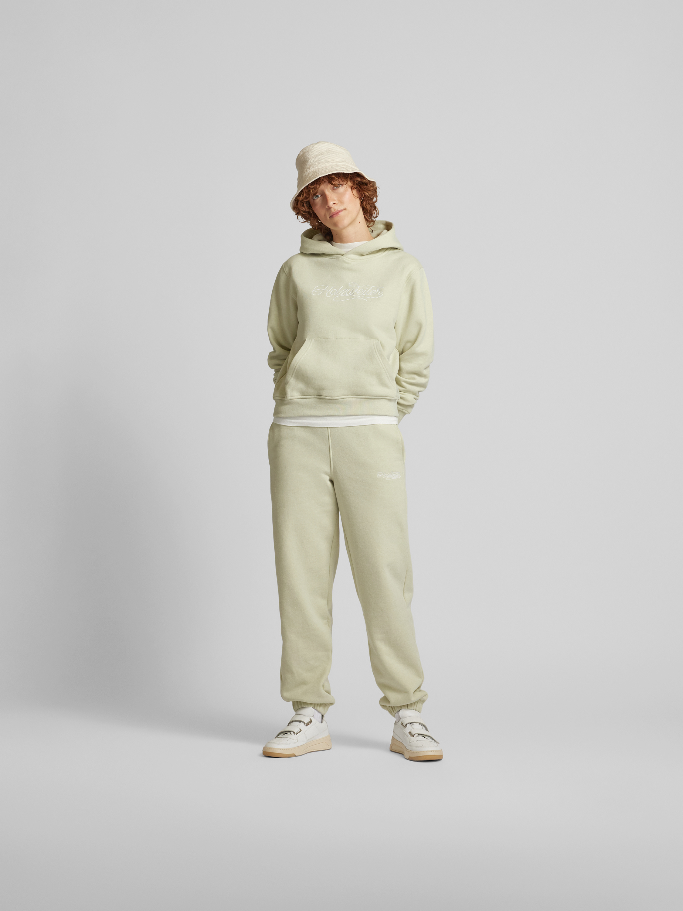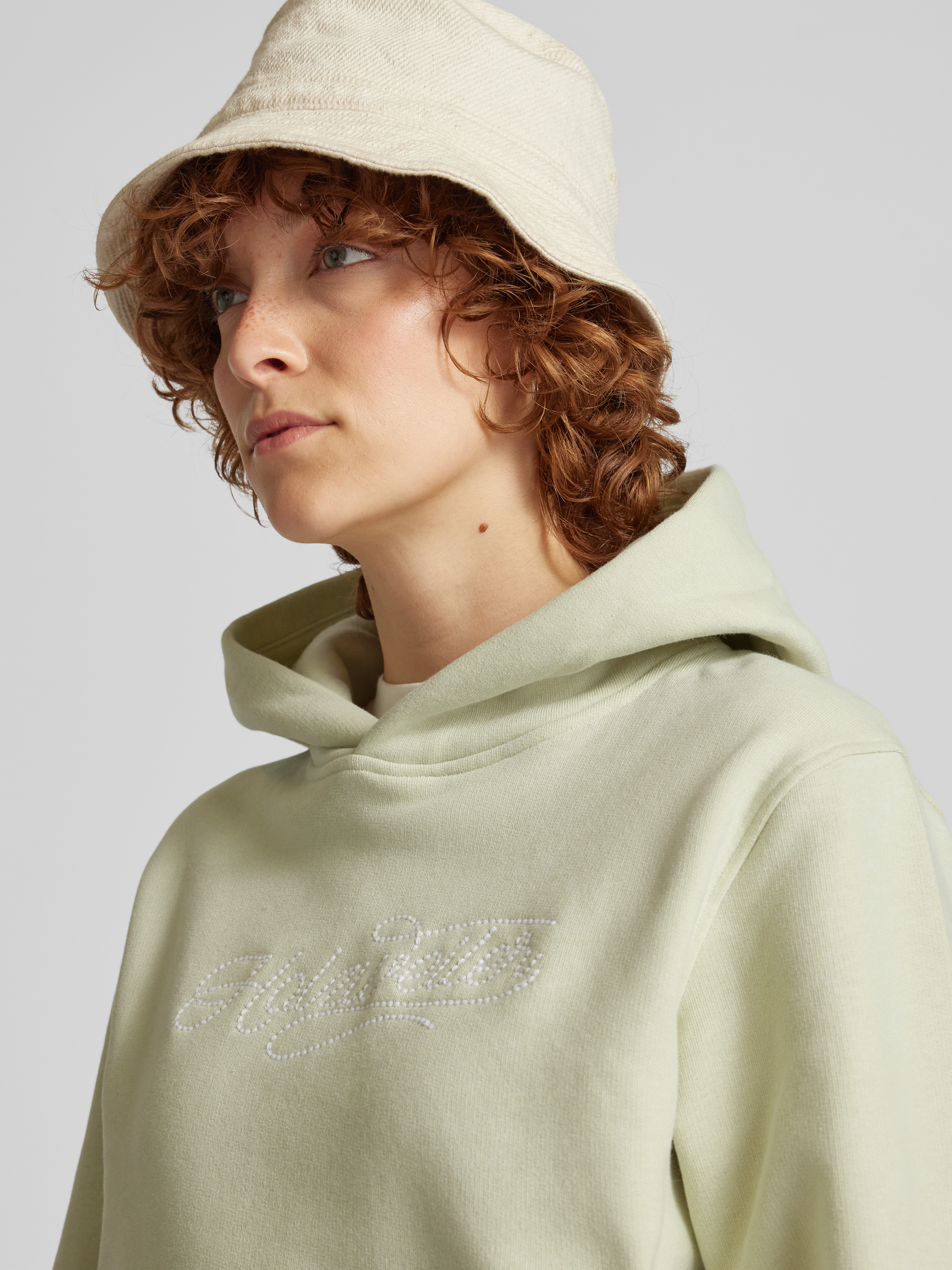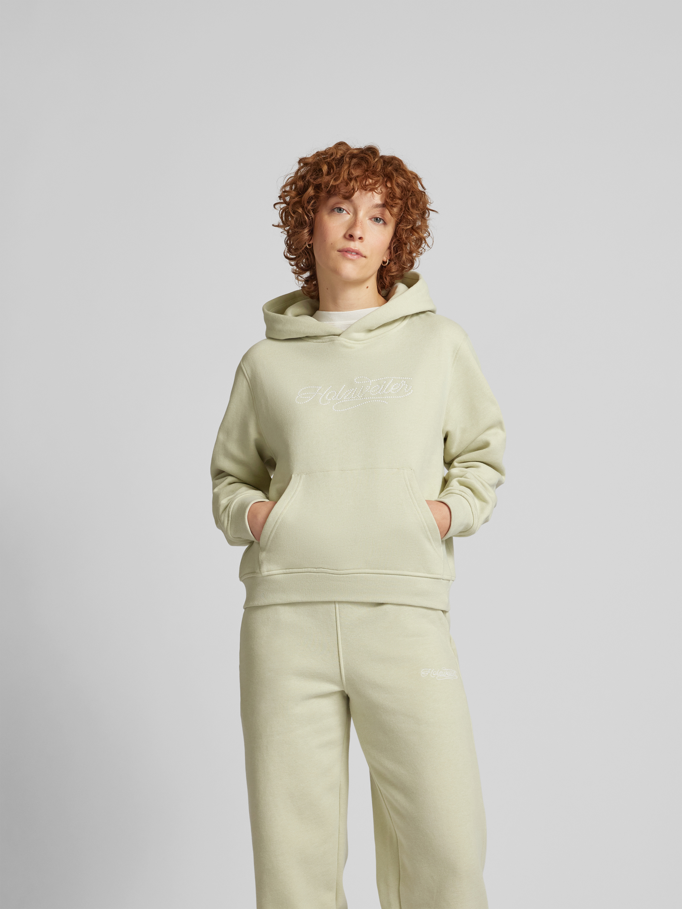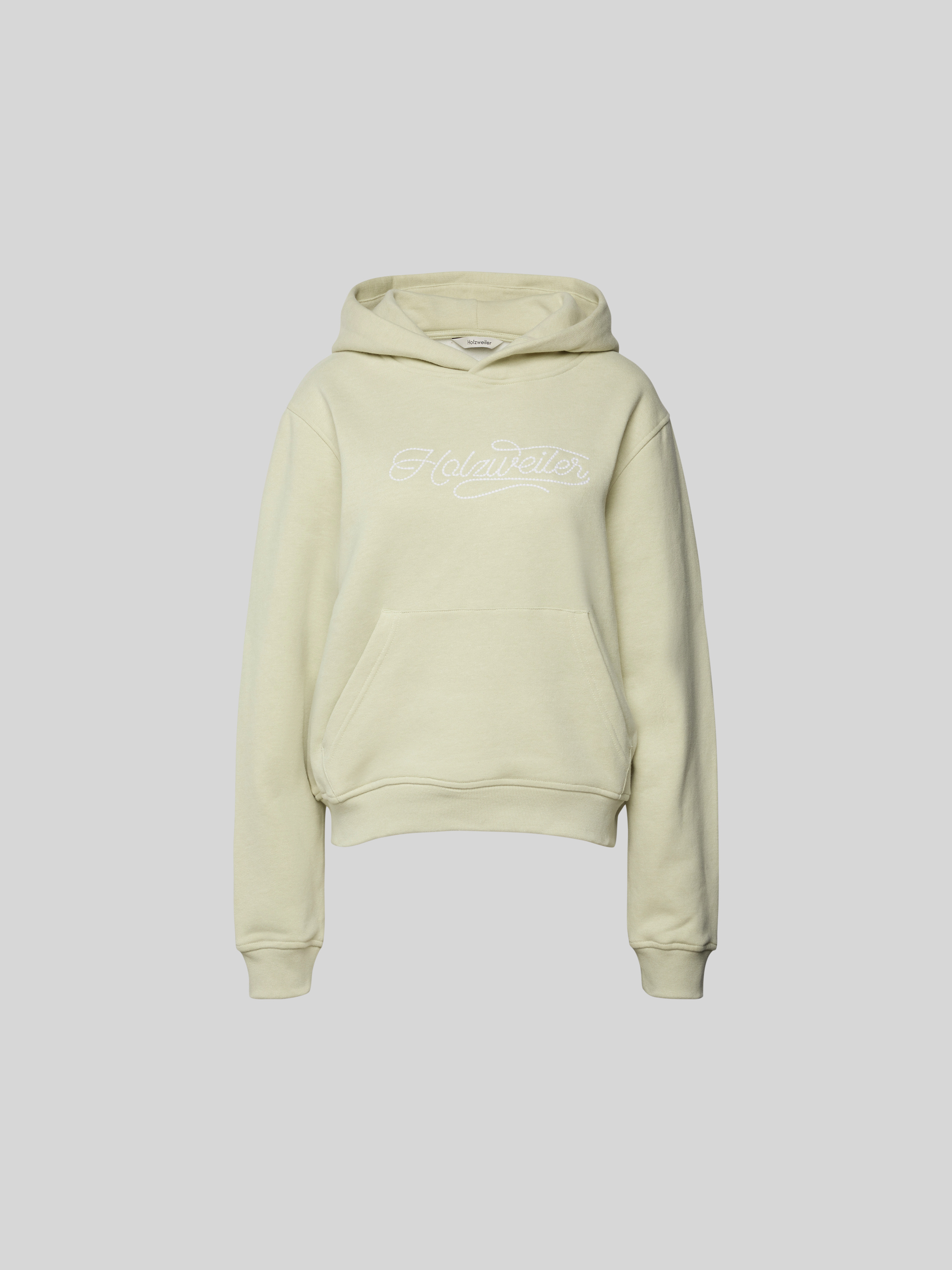 Der Damen Hoodie von Holzweiler fällt durch seinen lockeren Schnitt angenehm leger aus und eignet sich besonders für entspannte Tage. Dank des soften Baumwoll-Mix schmiegt sich das Material sanft an die Haut. Dezentes Label-Stitching und eine praktische Känguru-Tasche runden das Design ab.
