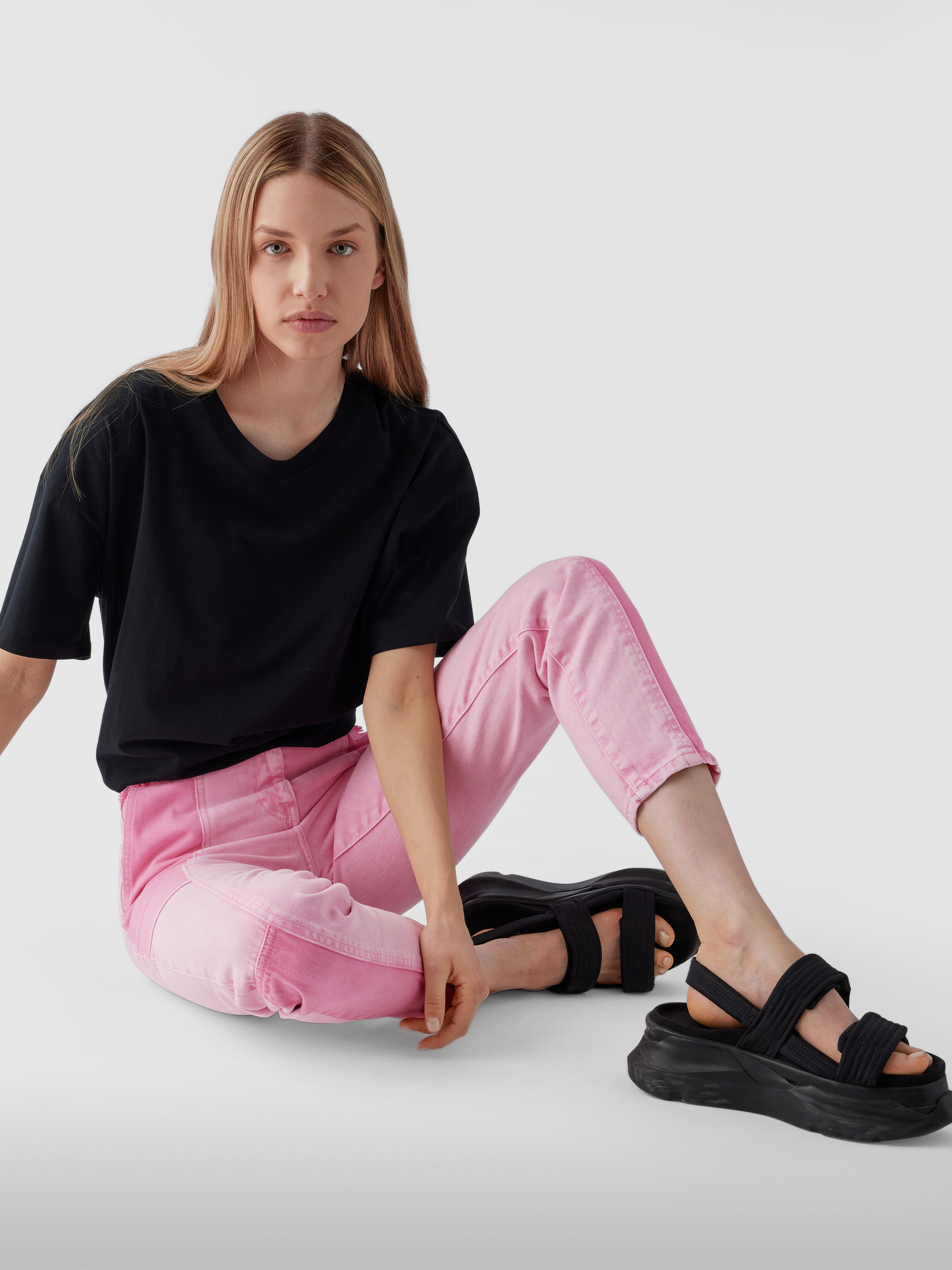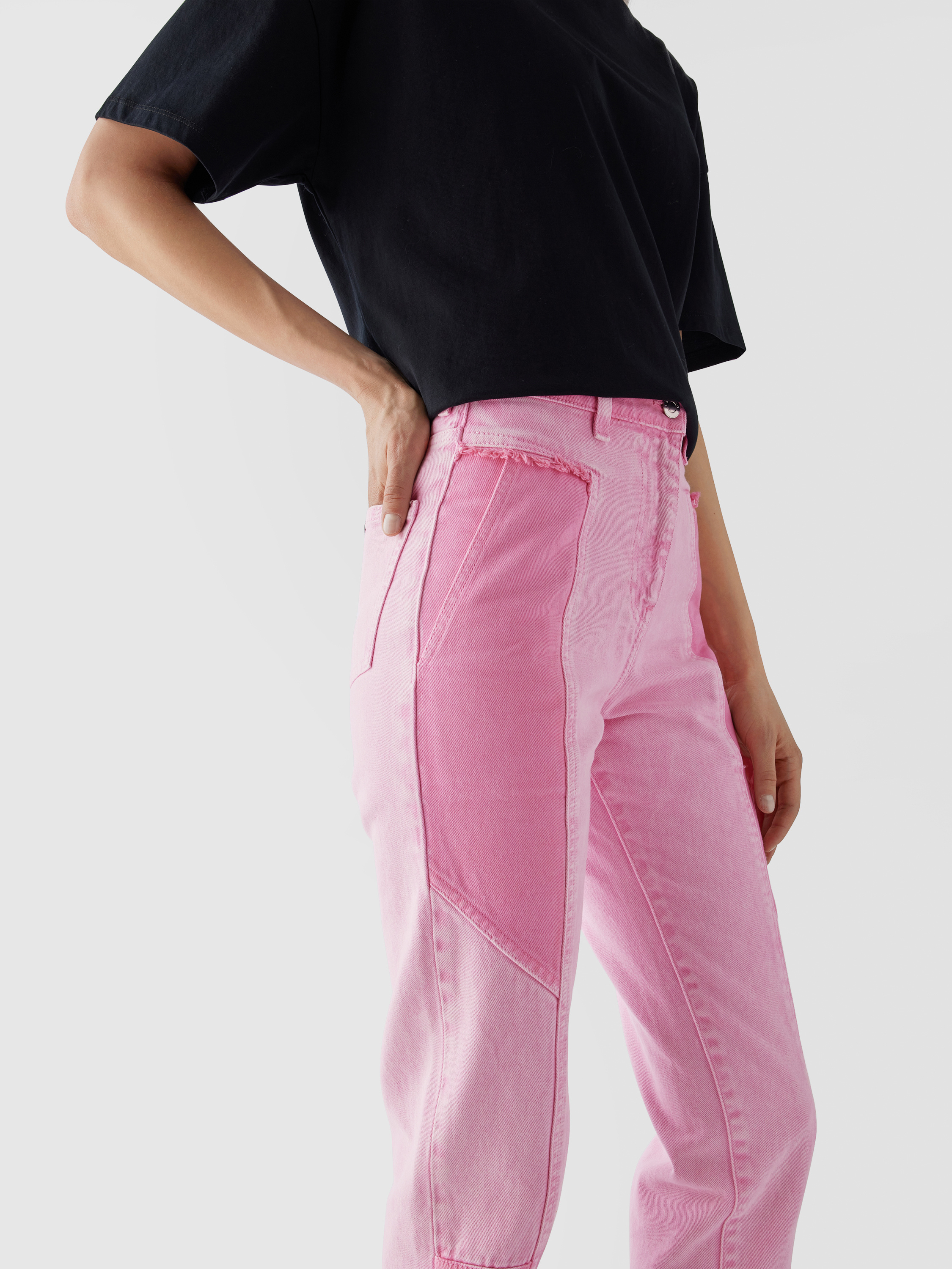 Die Damen High Waist Jeans von IRO aus reiner Baumwolle zeichnet sich durch einen geraden Schnitt aus, der Bewegungsfreiheit lässt und für einen lässigen Sitz sorgt. Dezente Brand-Details ergänzen das Design, während praktische Taschen den Alltag erleichtern. So eignet sich die Jeans vielseitig für verschiedene Gelegenheiten.