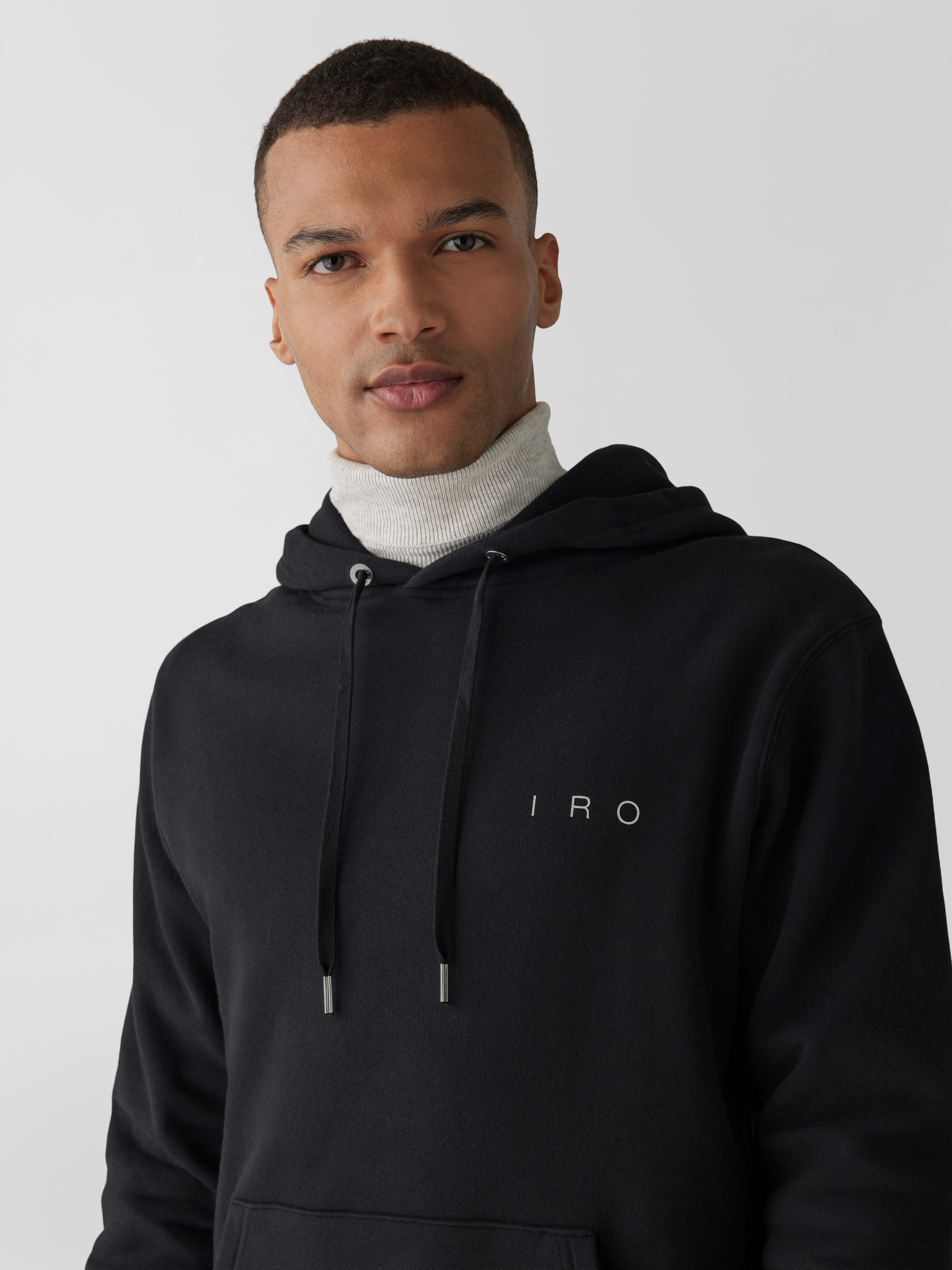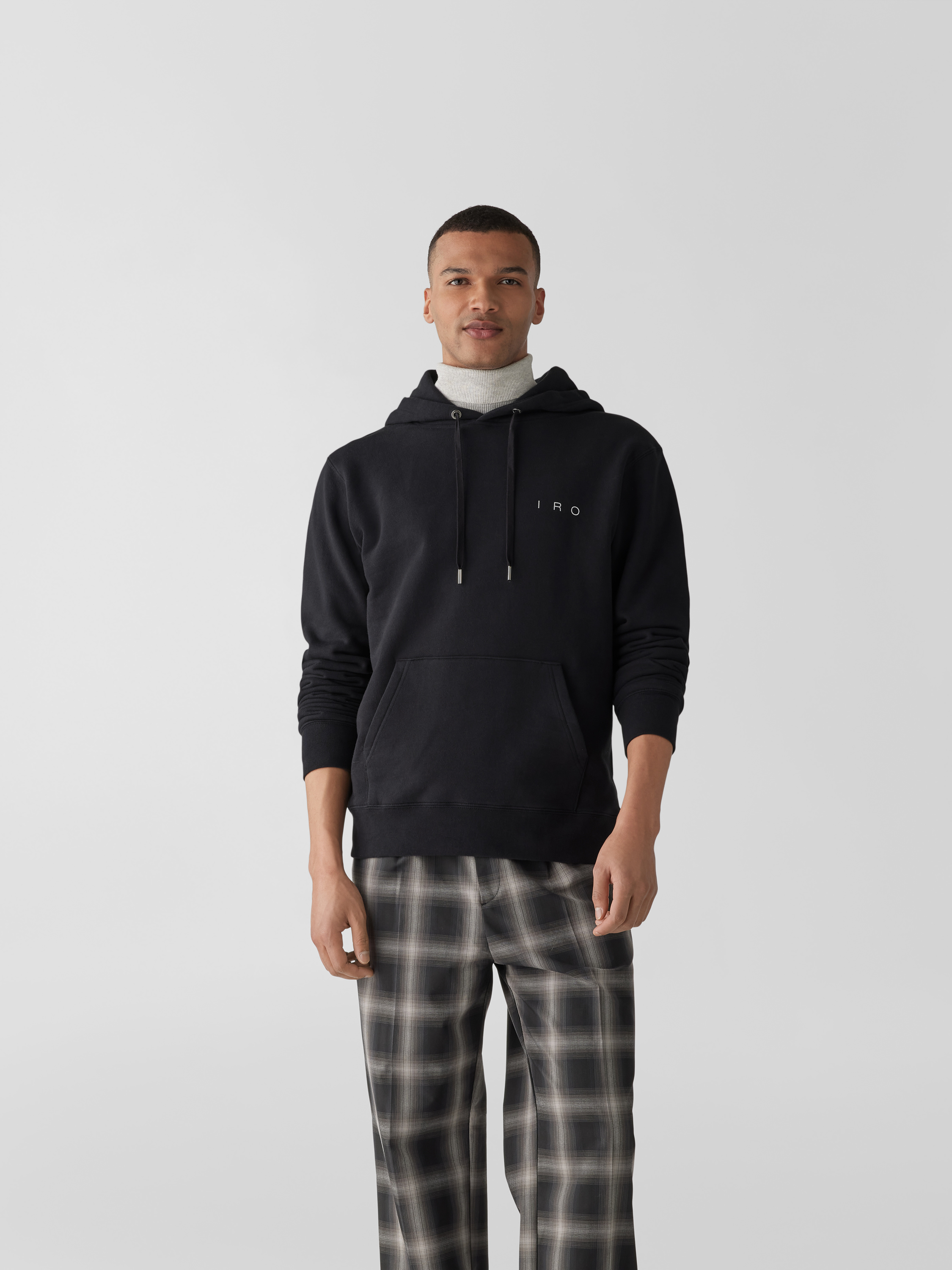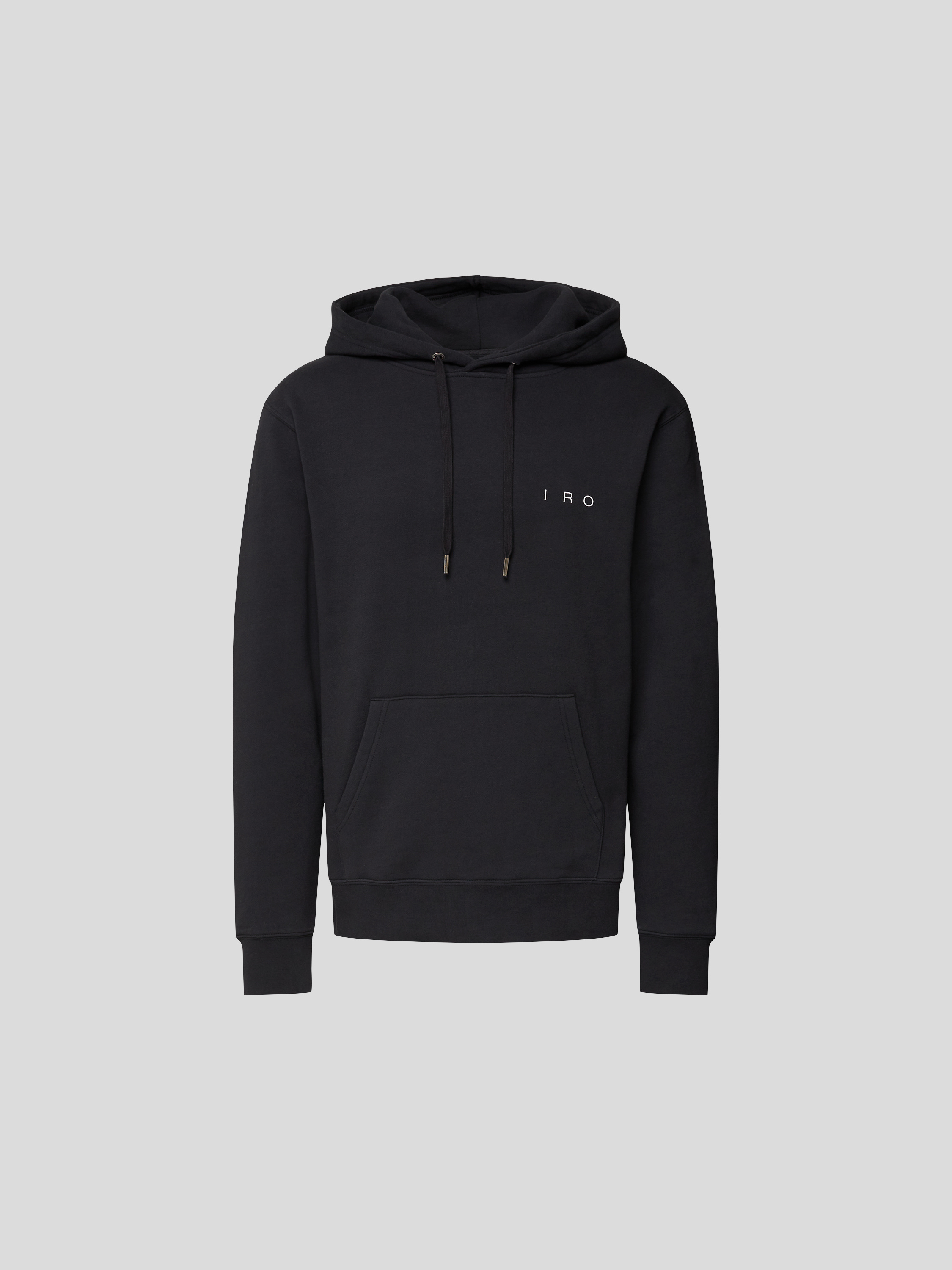 Der Herren Hoodie von IRO aus reiner Baumwolle fällt durch seine lockere Passform angenehm auf und schenkt Bewegungsfreiheit im Alltag. Die Kapuze mit Tunnelzug und die praktische Känguru-Tasche ermöglichen vielseitige Tragemöglichkeiten. Auffällige Label-Prints setzen dezente Akzente auf dem sportlichen Klassiker.