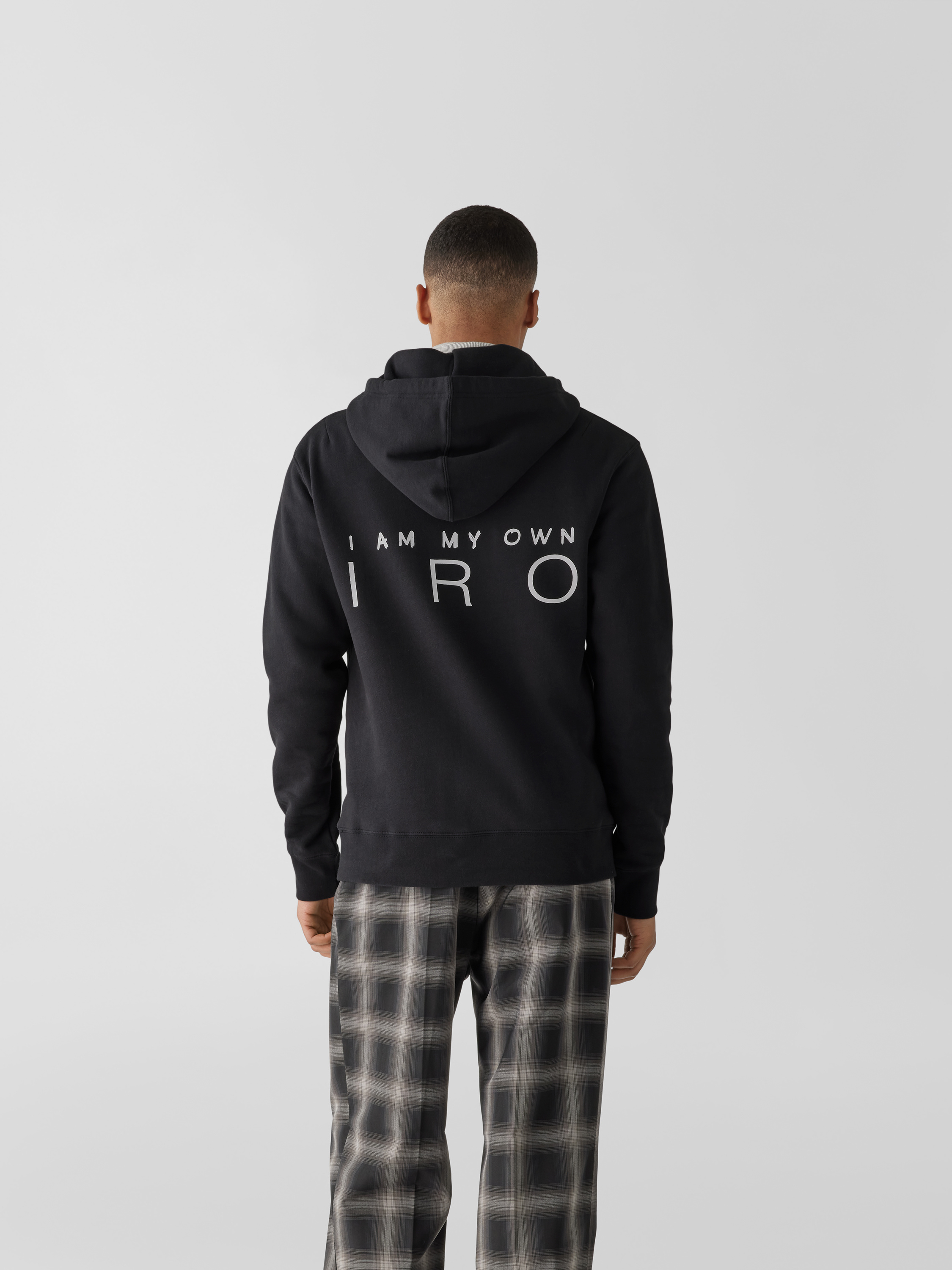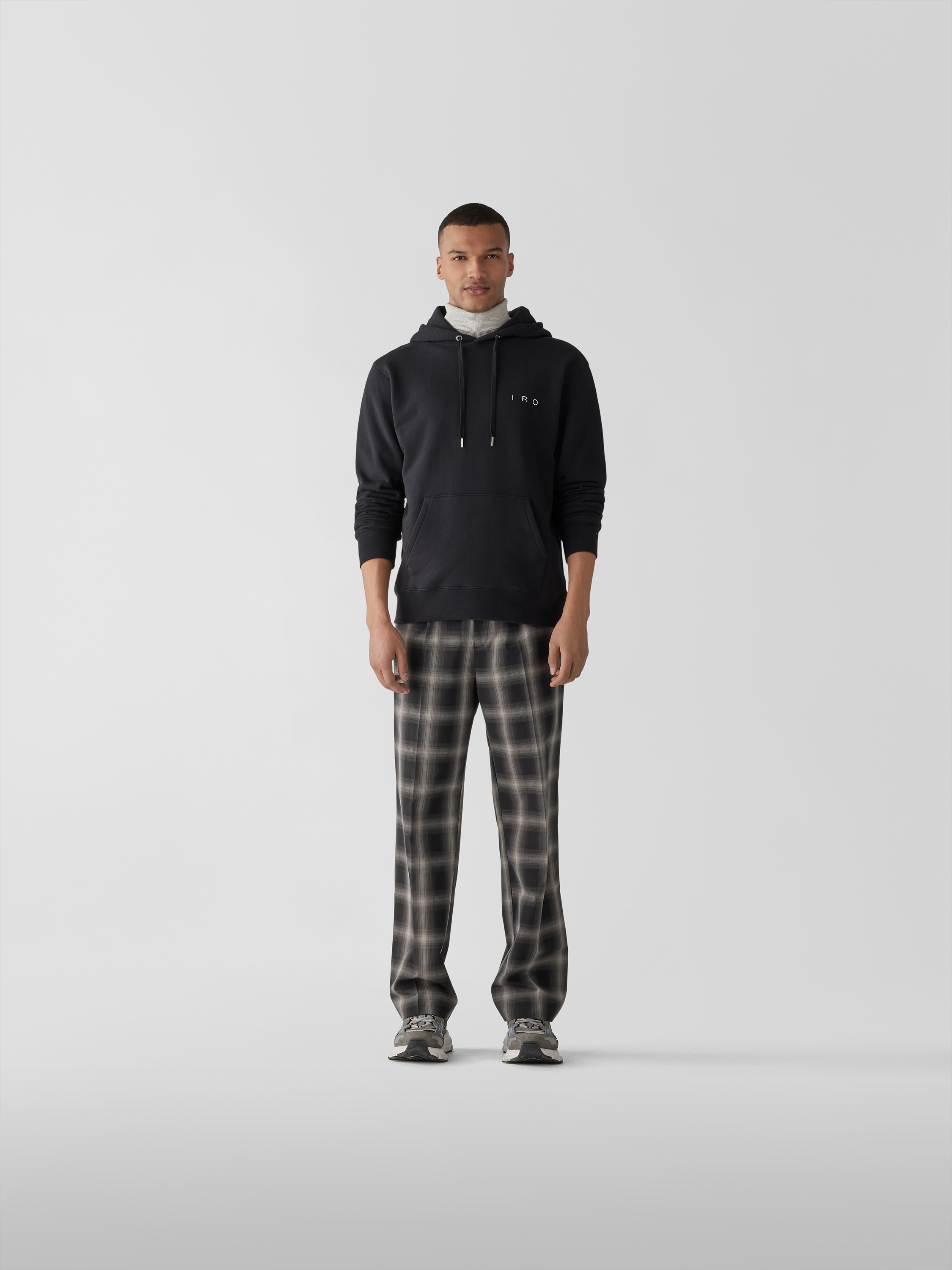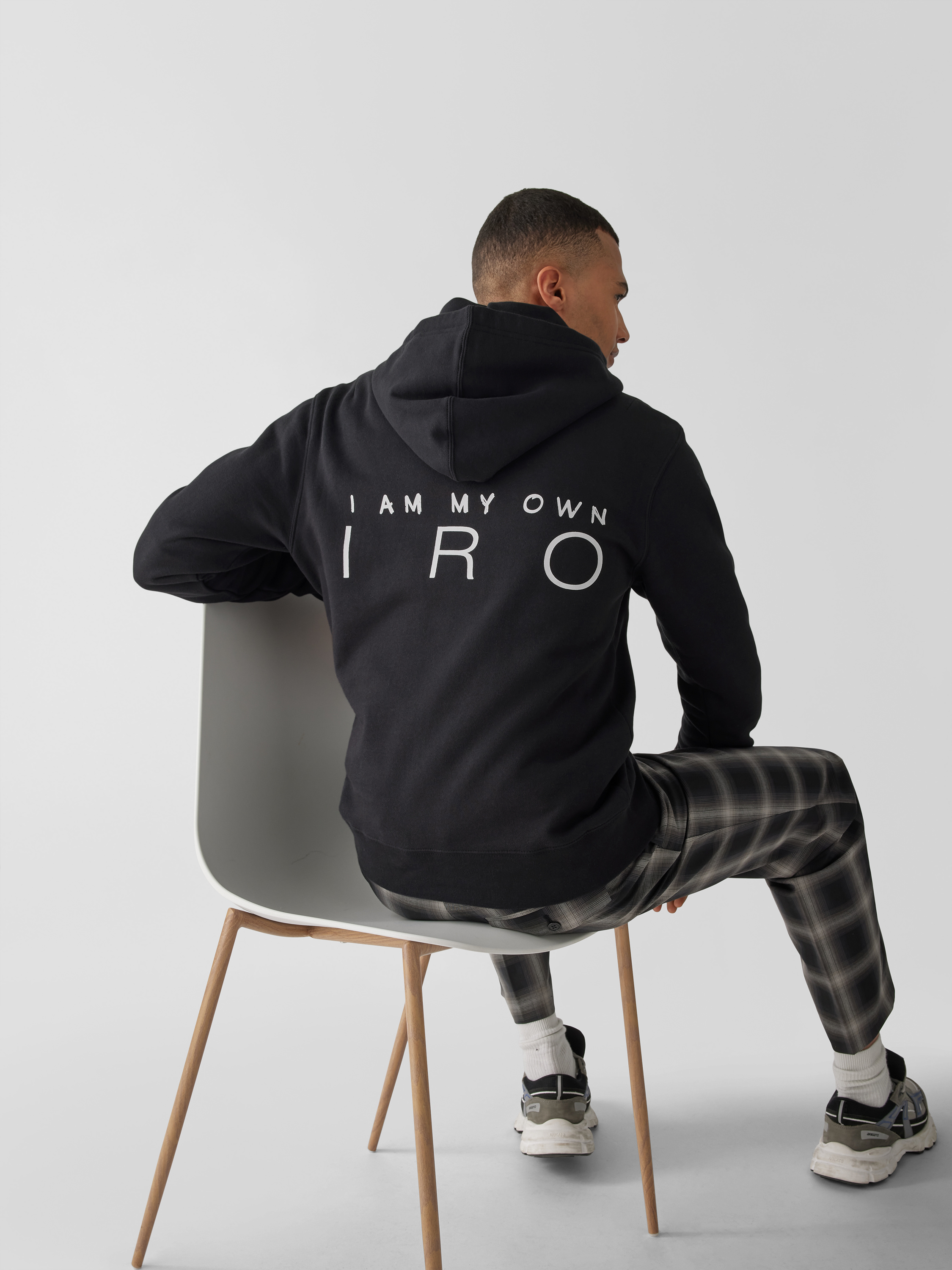 Der Herren Hoodie von IRO aus reiner Baumwolle fällt durch seine lockere Passform angenehm auf und schenkt Bewegungsfreiheit im Alltag. Die Kapuze mit Tunnelzug und die praktische Känguru-Tasche ermöglichen vielseitige Tragemöglichkeiten. Auffällige Label-Prints setzen dezente Akzente auf dem sportlichen Klassiker.