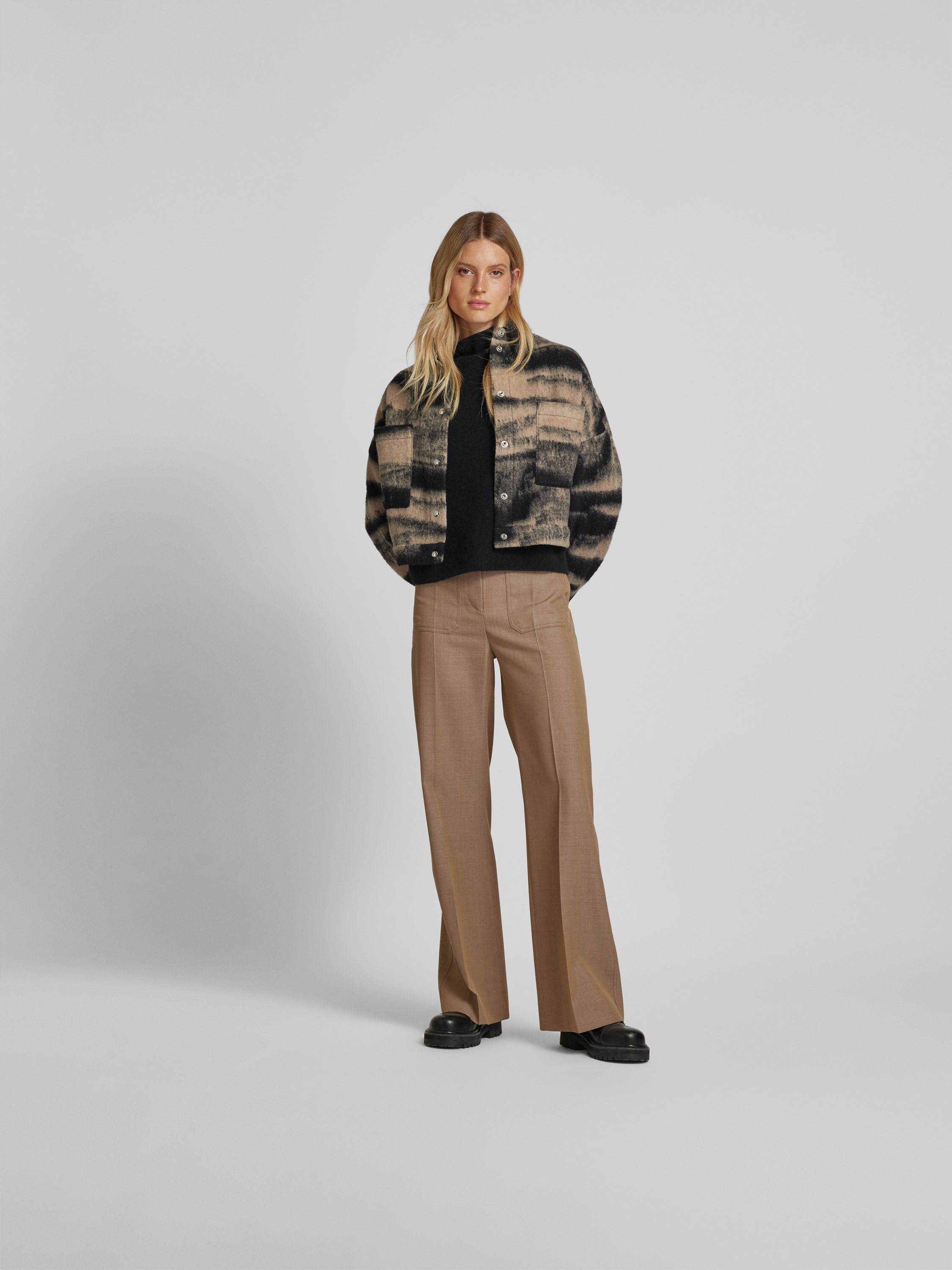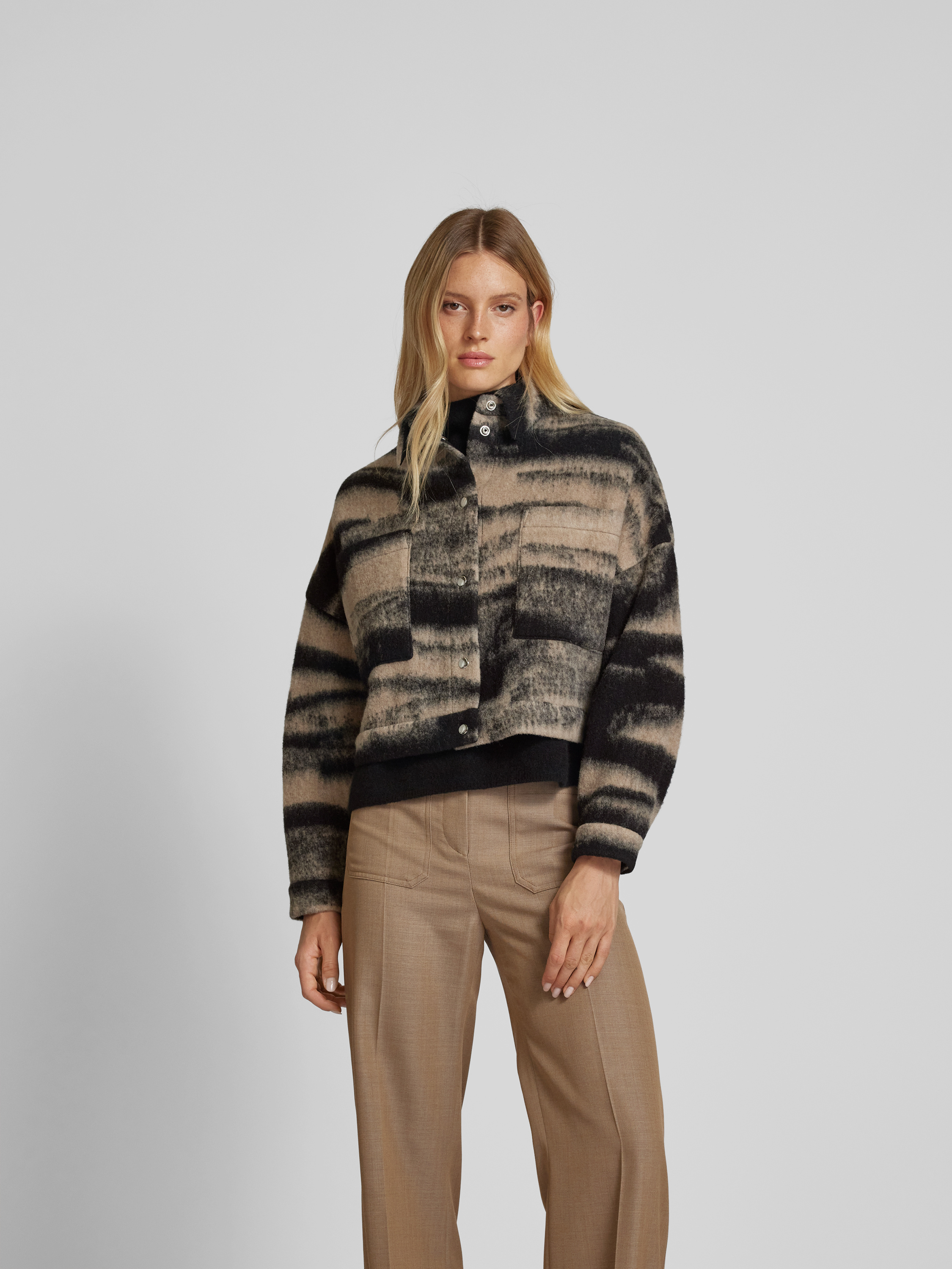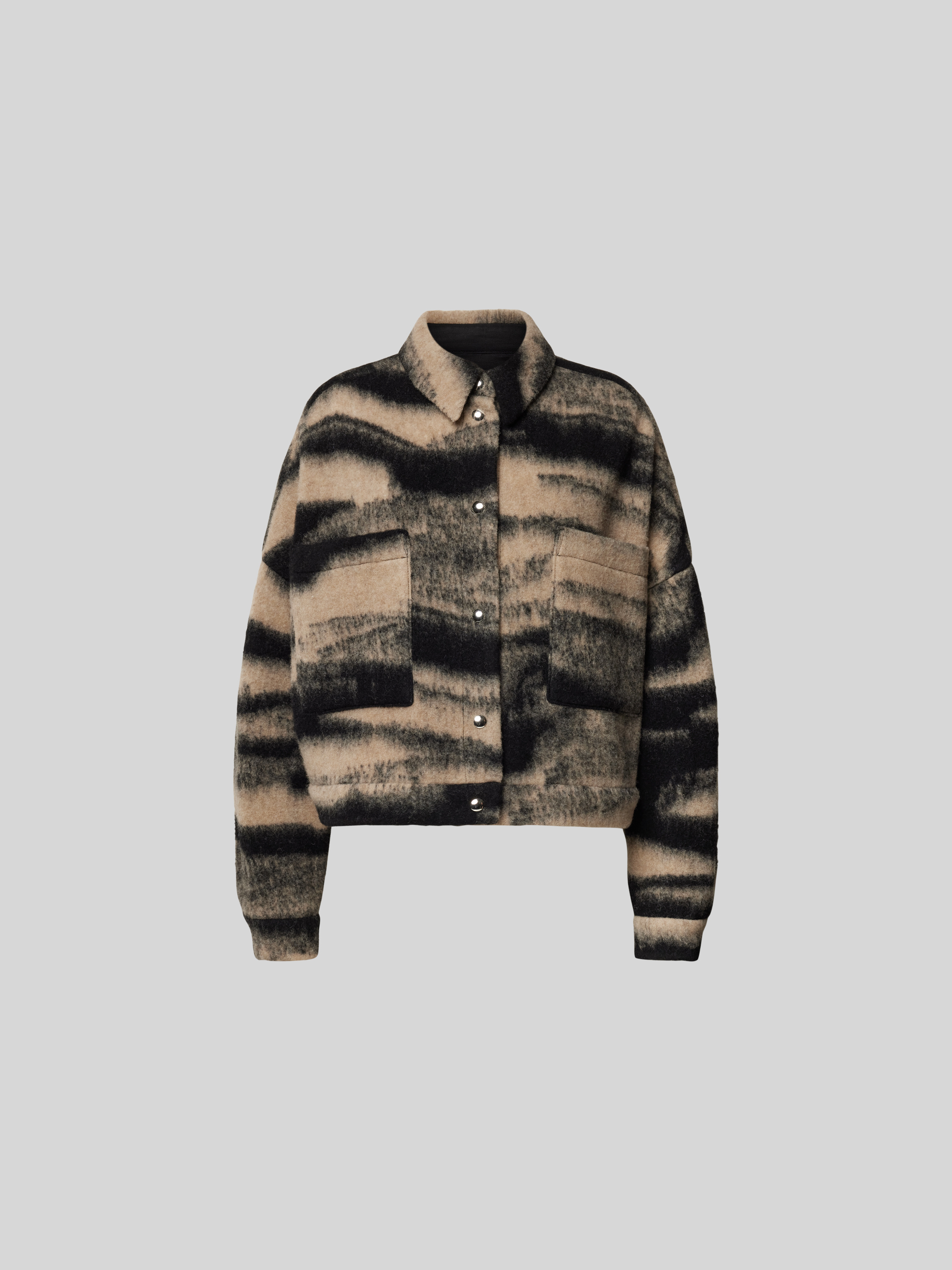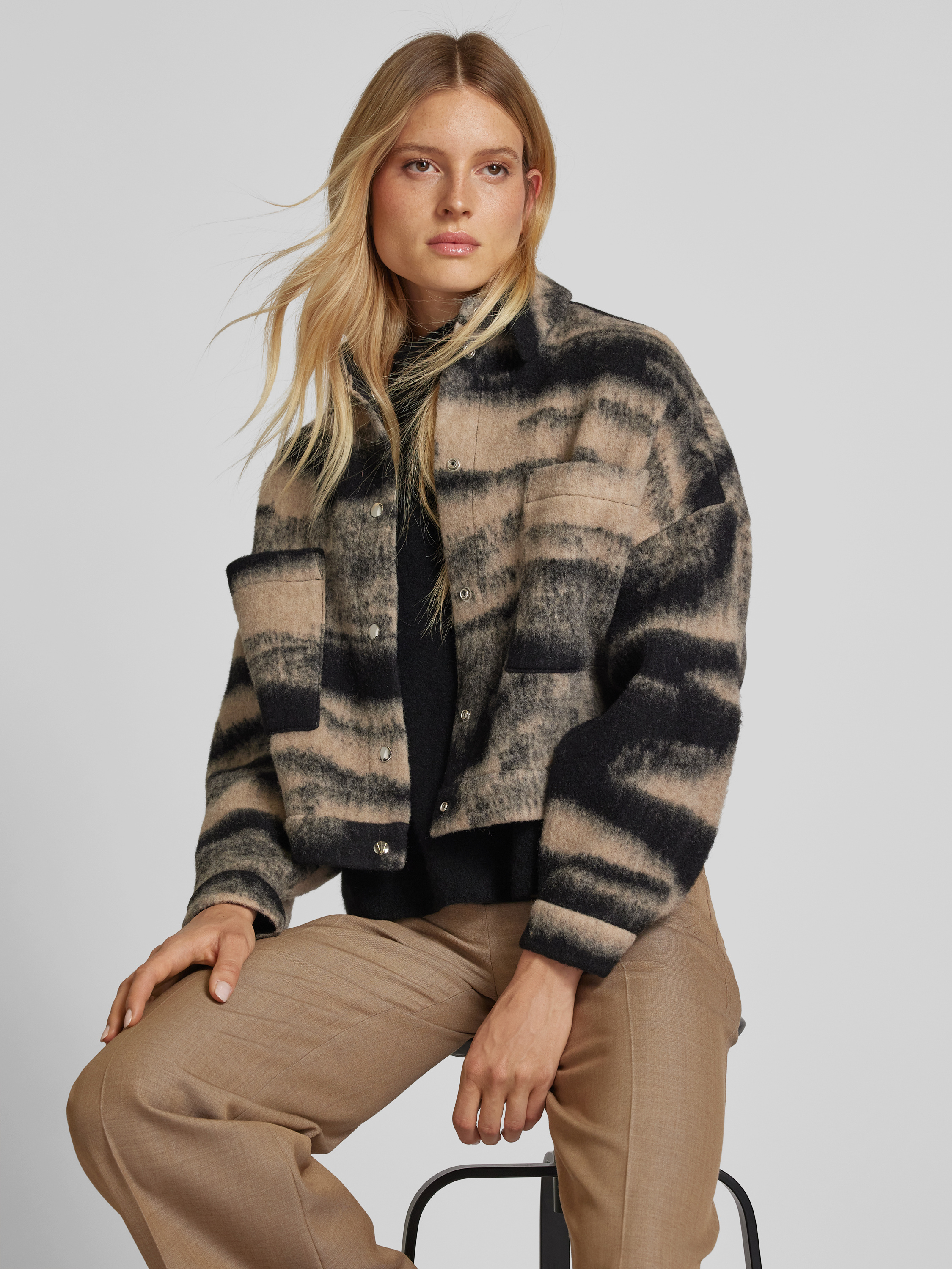 Die Damen Jacke von IRO in Regular Fit kombiniert einen klassischen Umlegekragen mit einem Woll-Mix, der sich angenehm trägt und wärmt. Durch die lockere Passform und die praktischen Brusttaschen entsteht ein vielseitiger Begleiter für verschiedene Gelegenheiten. So lässt sich stilvolle Lässigkeit unkompliziert umsetzen.