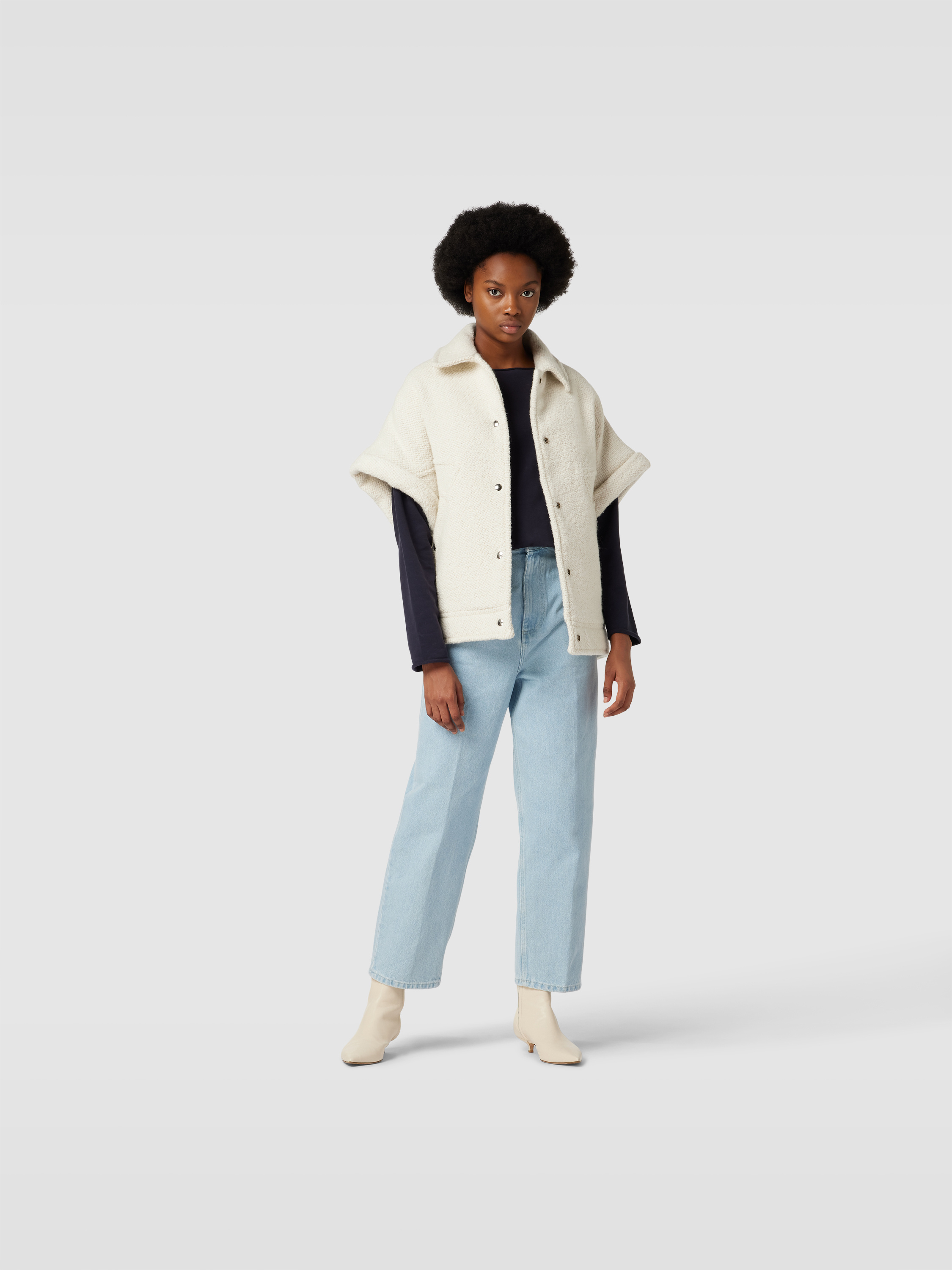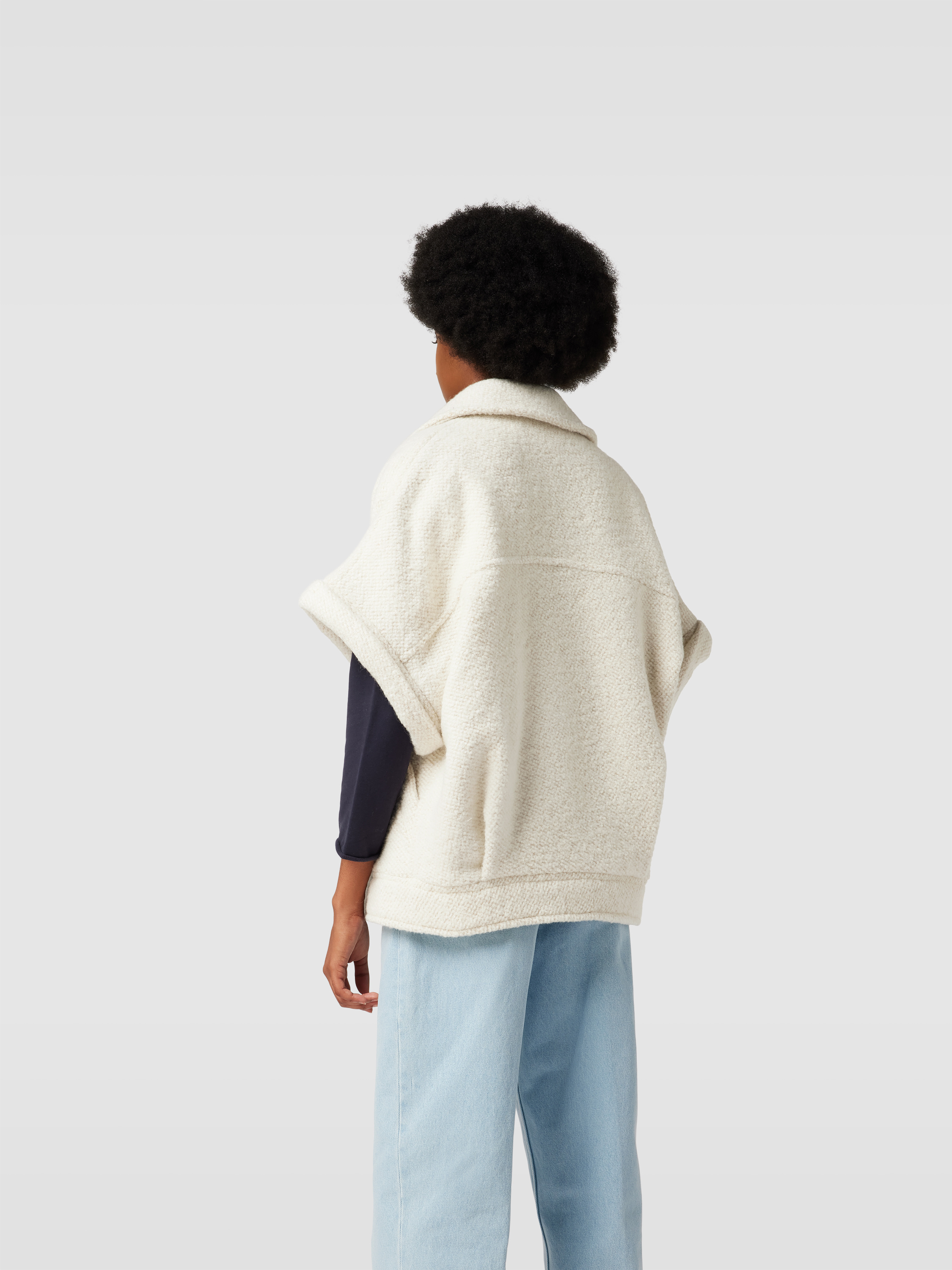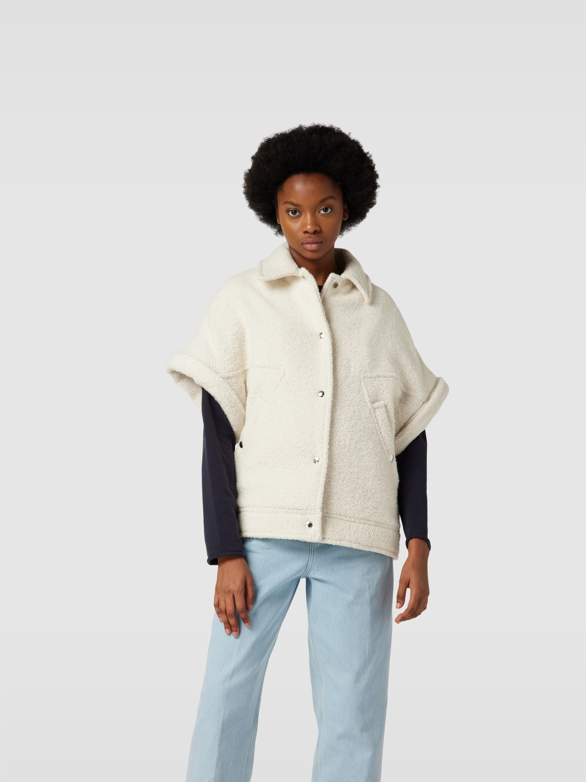 Die Jacke mit Woll-Anteil von IRO zeichnet sich durch eine gerade Passform und einen angenehmen Material-Mix aus, der einen spürbaren Tragekomfort ermöglicht. Dank des Halbarm-Designs und praktischer Eingrifftaschen eignet sie sich ideal für wechselhafte Tage. Besonders bei längeren Spaziergängen bleibt man angenehm flexibel.