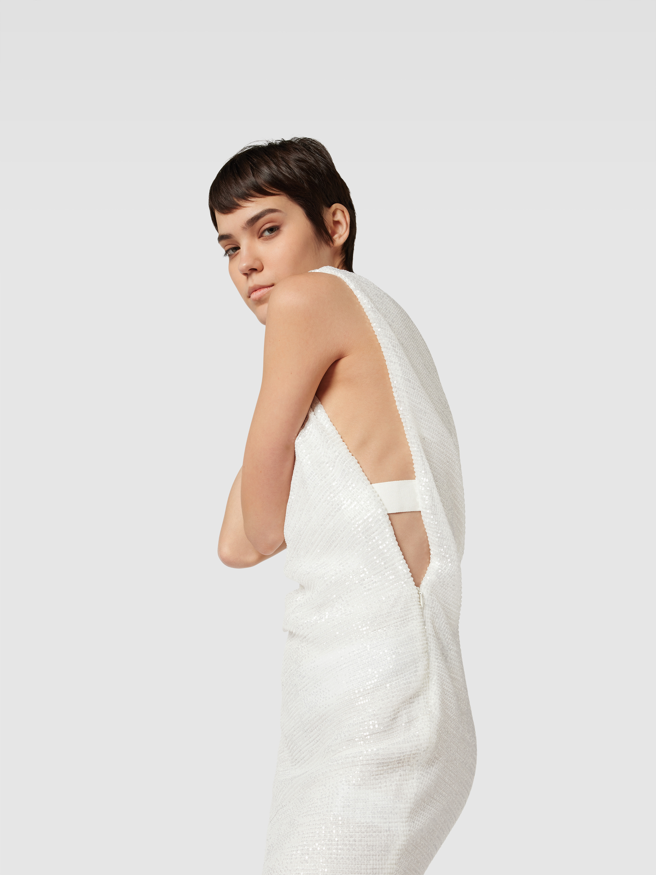 Das Kleid von IRO vereint einen körpernahen Schnitt mit einem eleganten One-Shoulder-Look und unterstreicht durch das unifarbene Design eine moderne Ausstrahlung. Der Allover-Paillettenbesatz sorgt für eine dezente Struktur, während das ärmellose Design angenehme Bewegungsfreiheit ermöglicht. So eignet sich das Modell für unterschiedliche Anlässe und lässt sich vielseitig kombinieren.