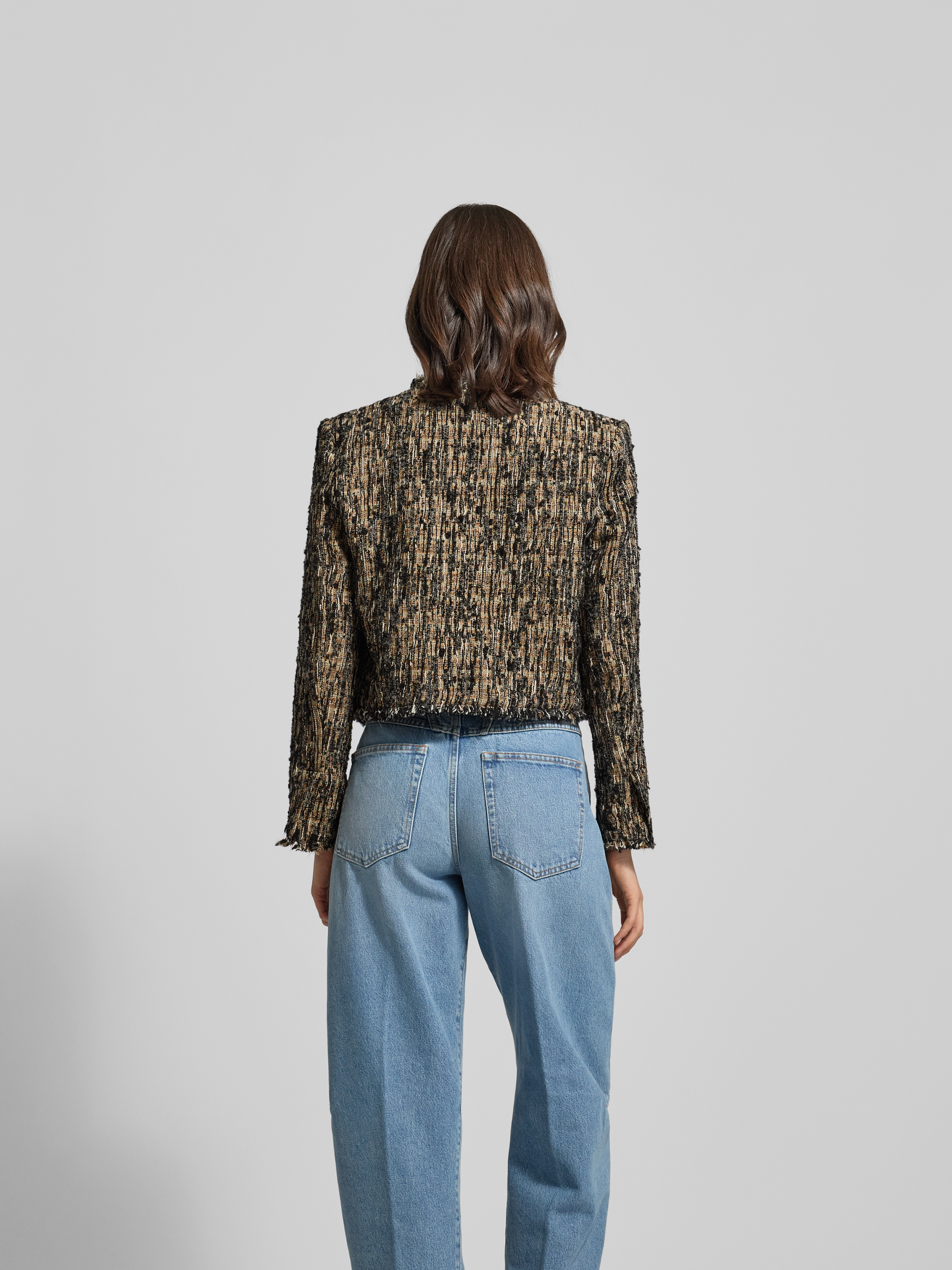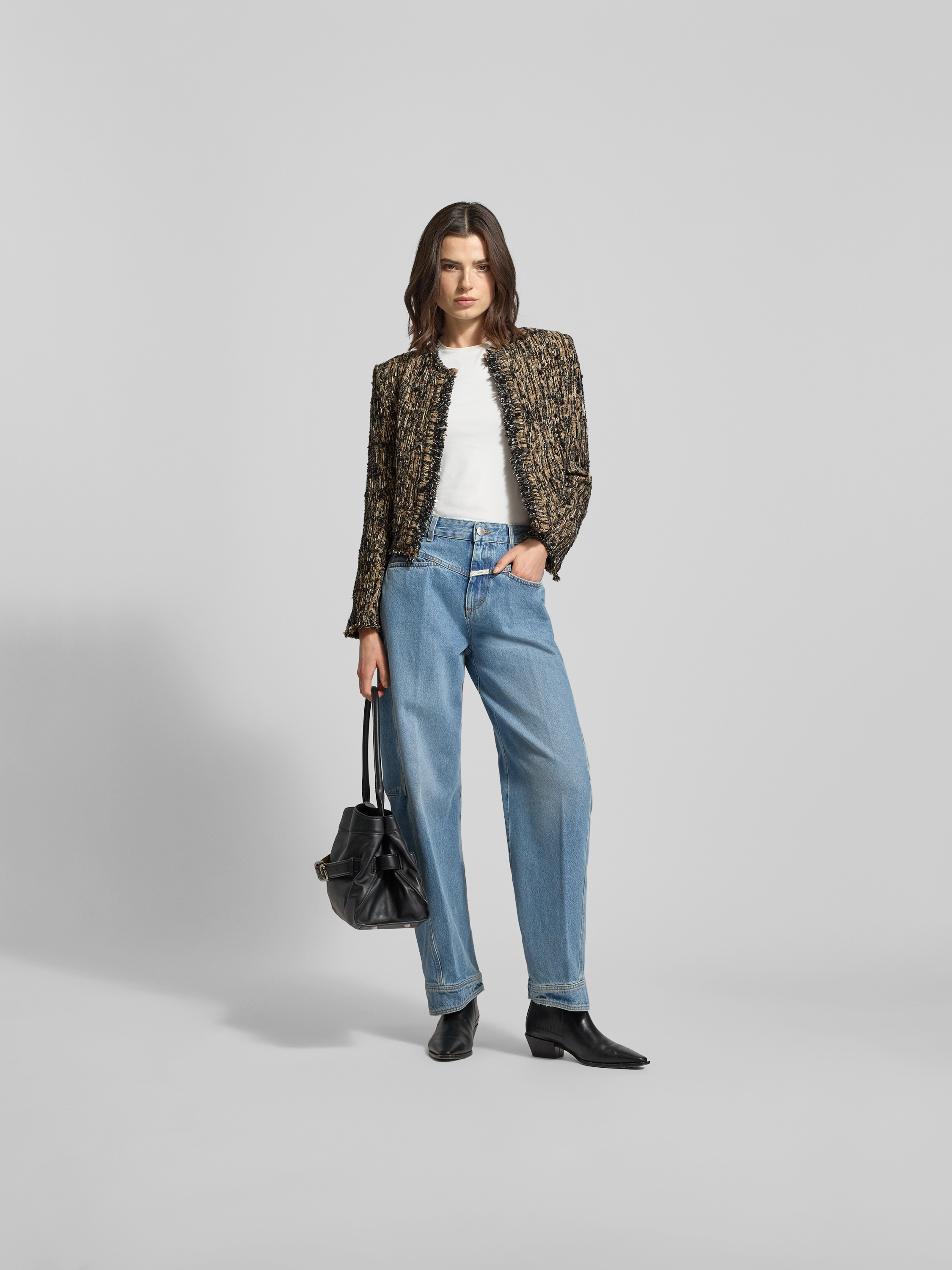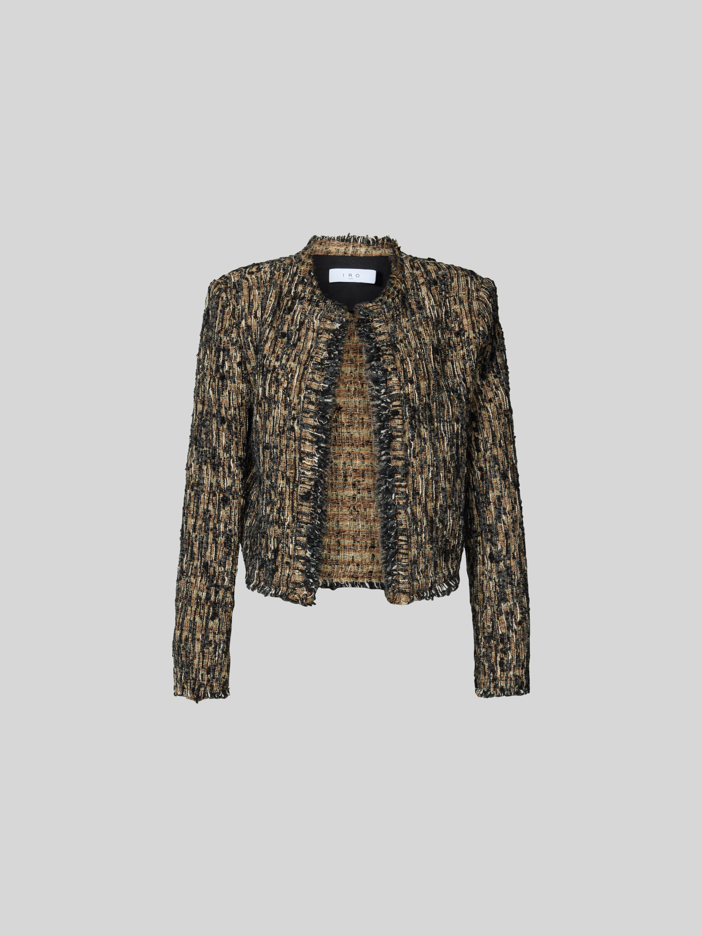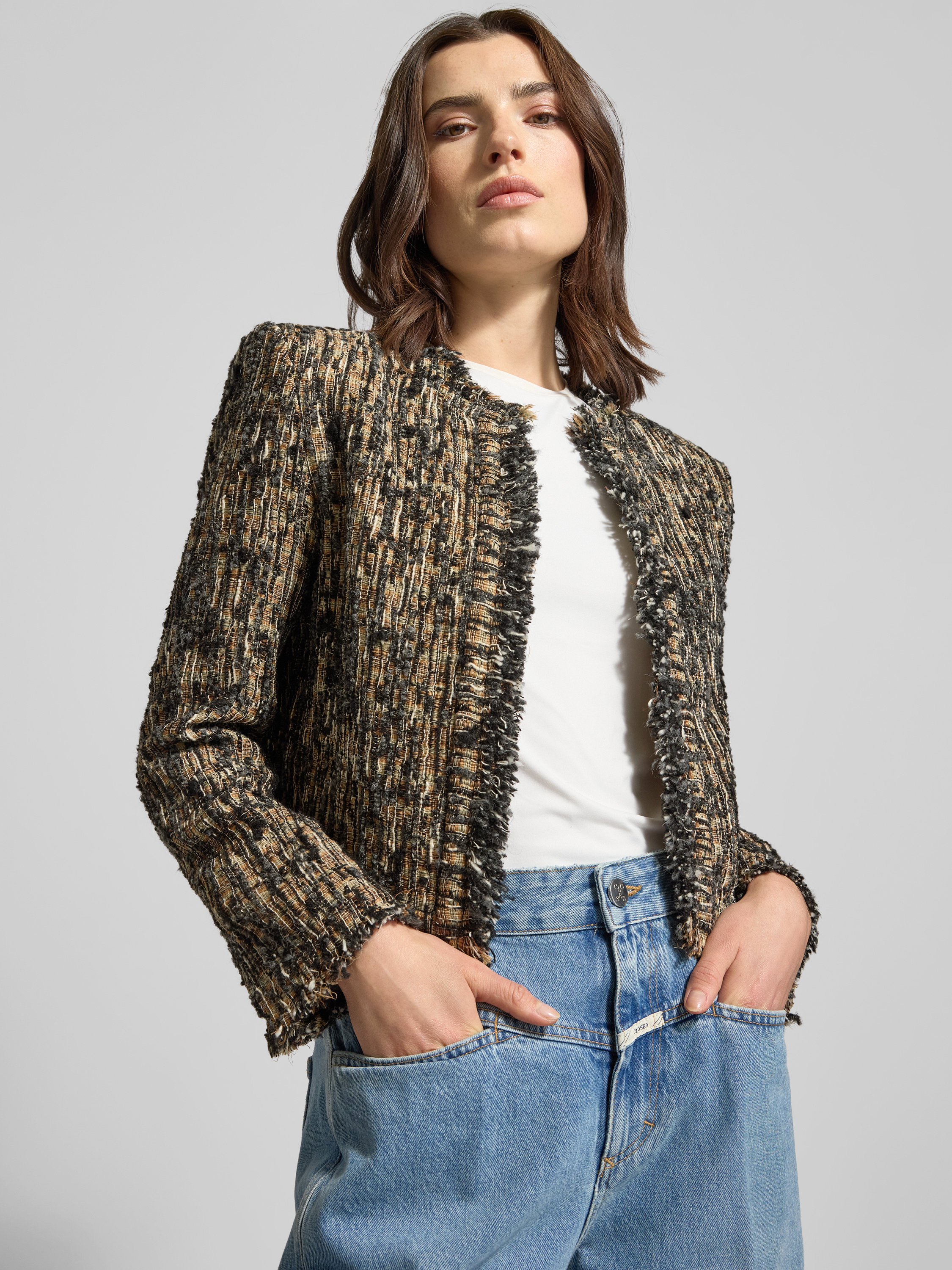 Der Damen Kurzblazer von Iro kombiniert einen markanten Material-Mix mit Baumwoll-Anteil und sorgt durch den Regular Fit für angenehmen Tragekomfort im Alltag. Ausfransungen setzen dezente Akzente, während der Rundhalsausschnitt dem Gesamtbild eine moderne Note verleiht. So eignet sich das Modell besonders, wenn man Wert auf lässige Eleganz legt.