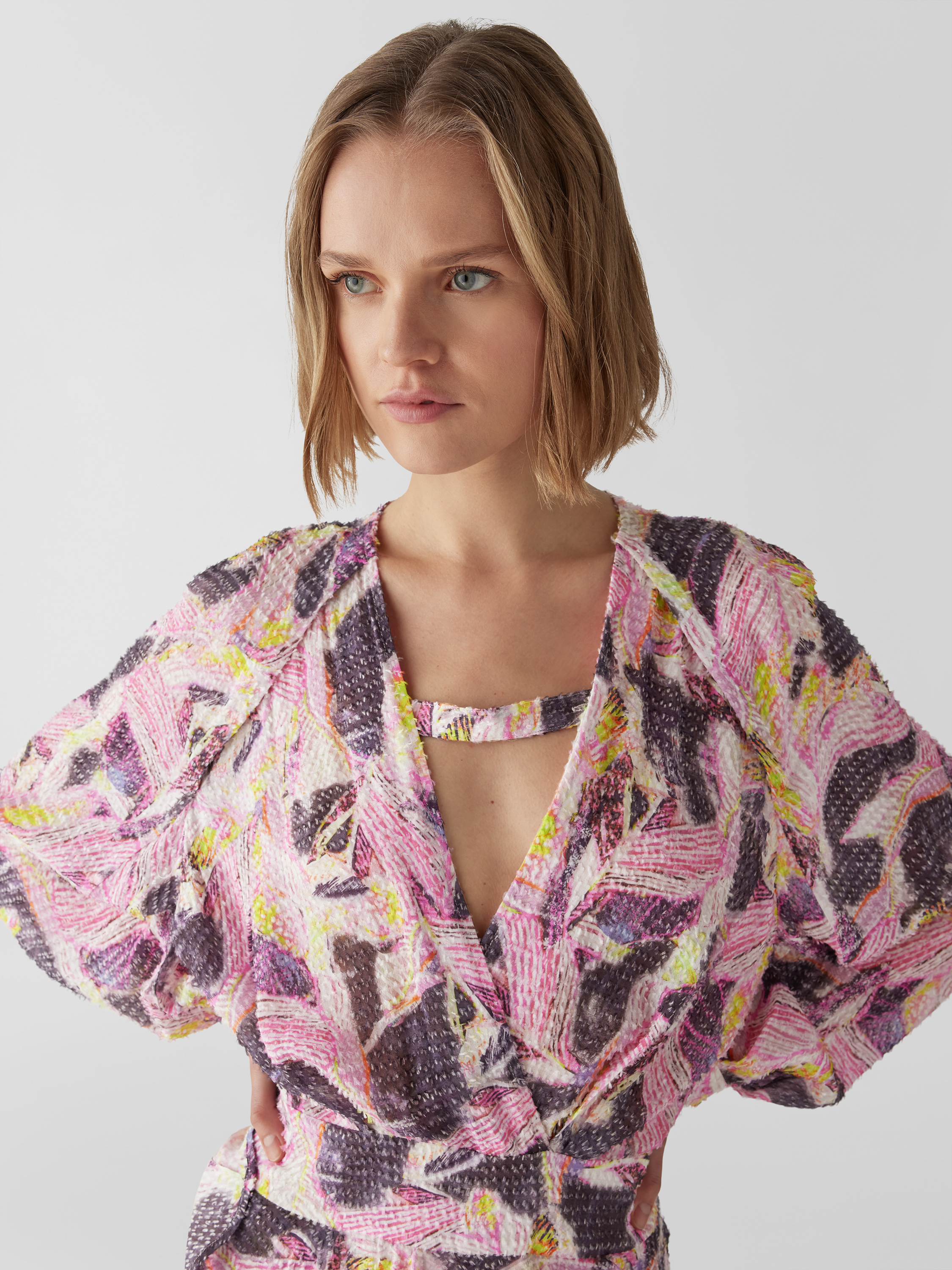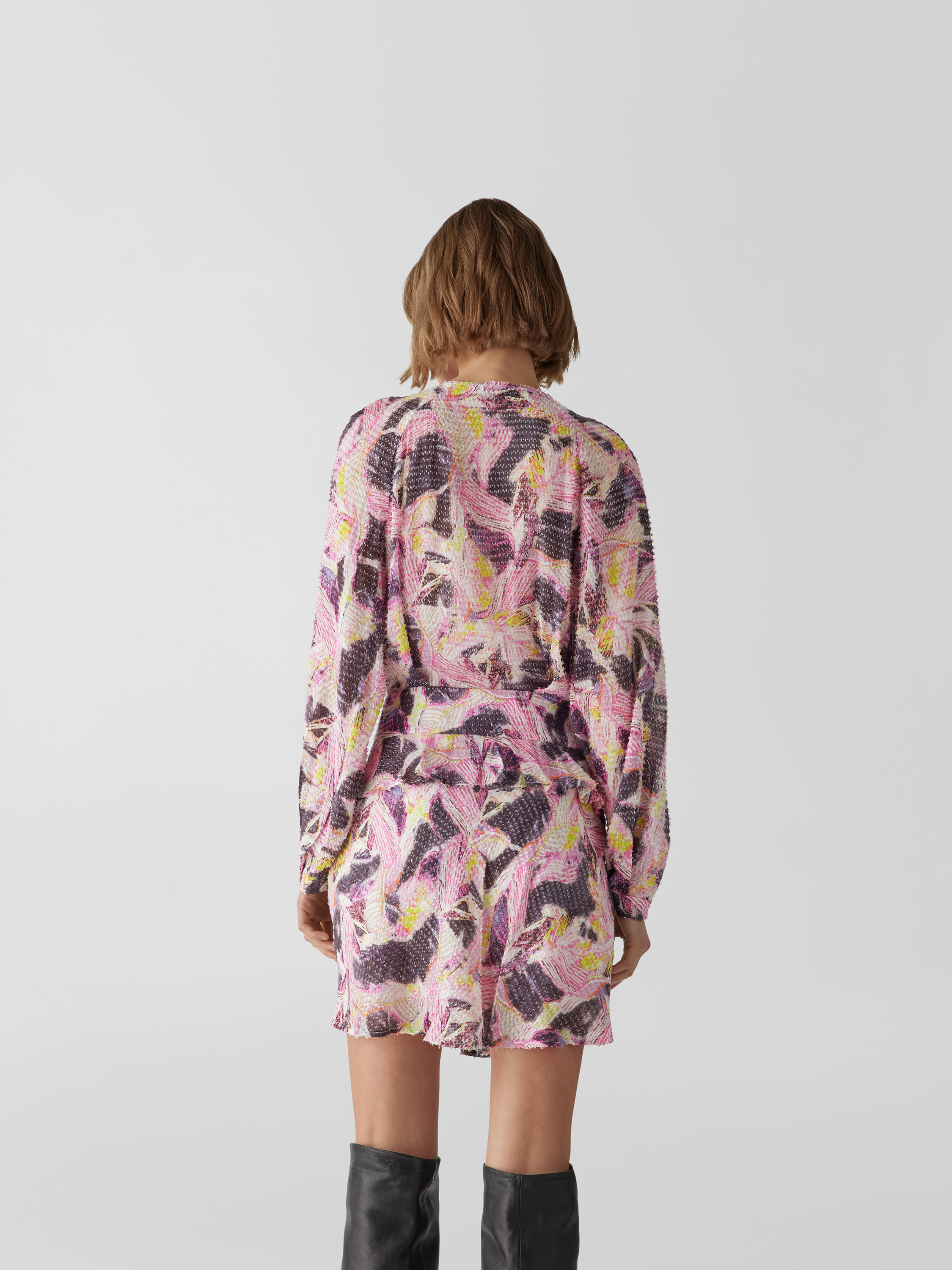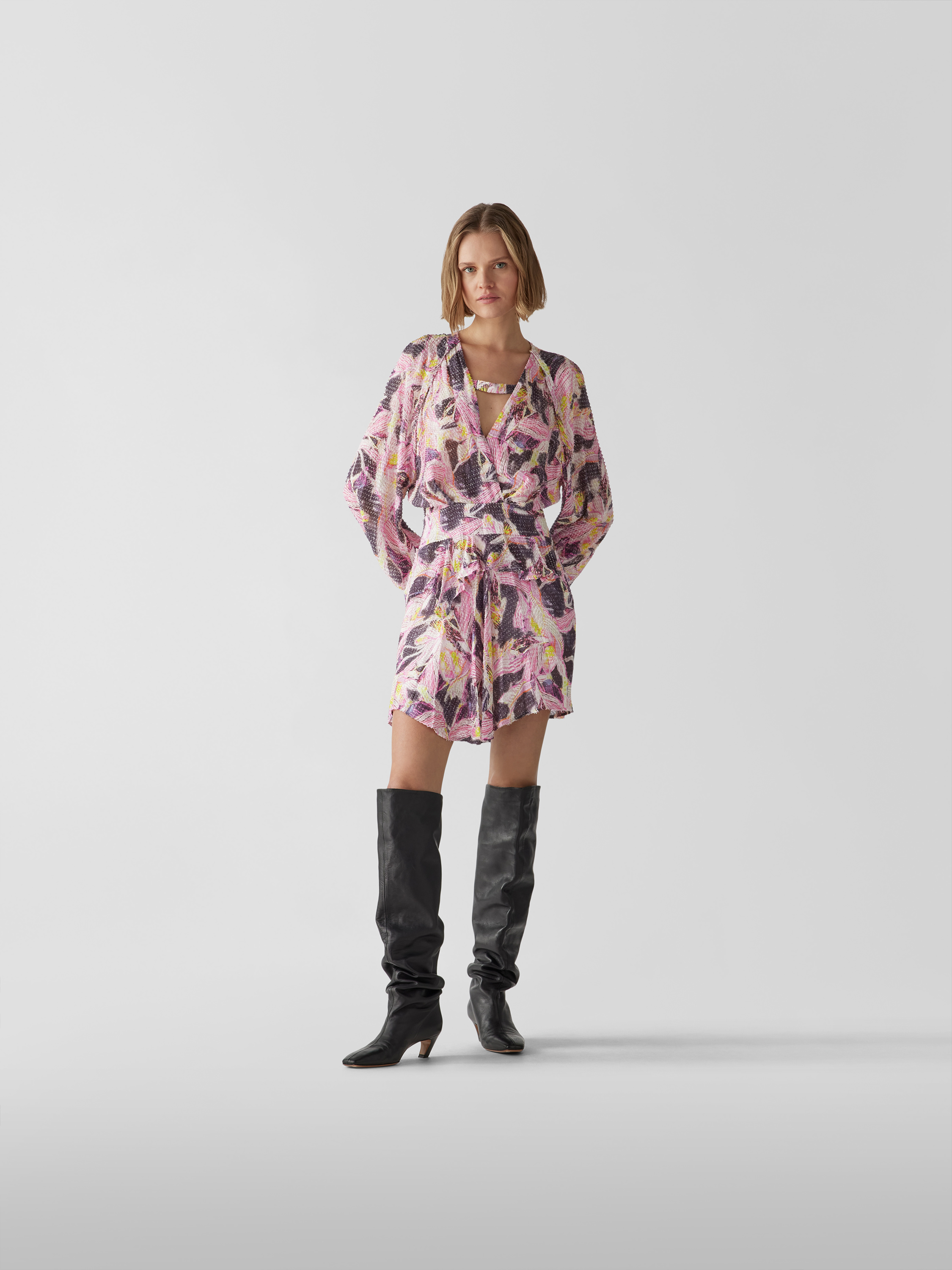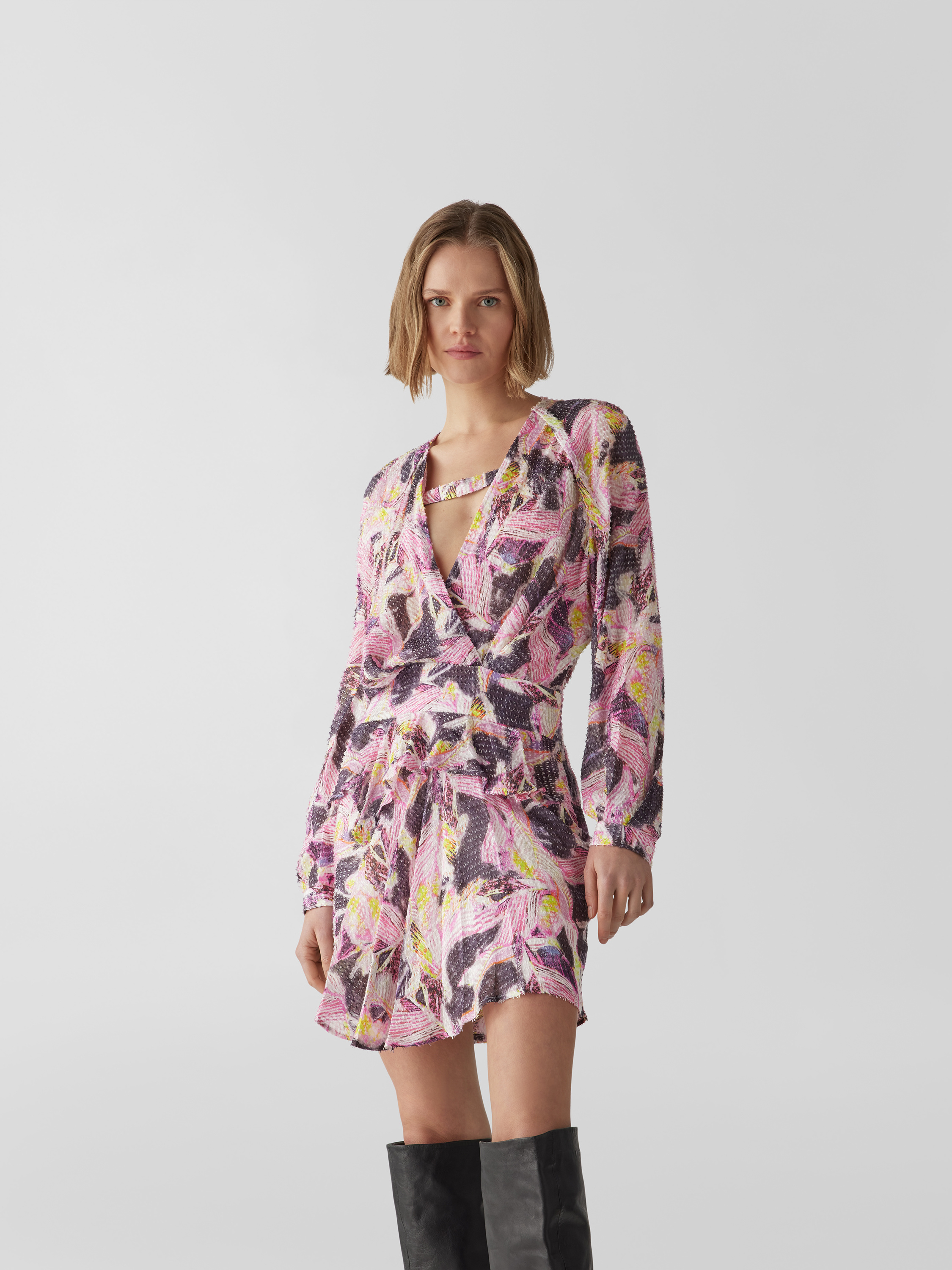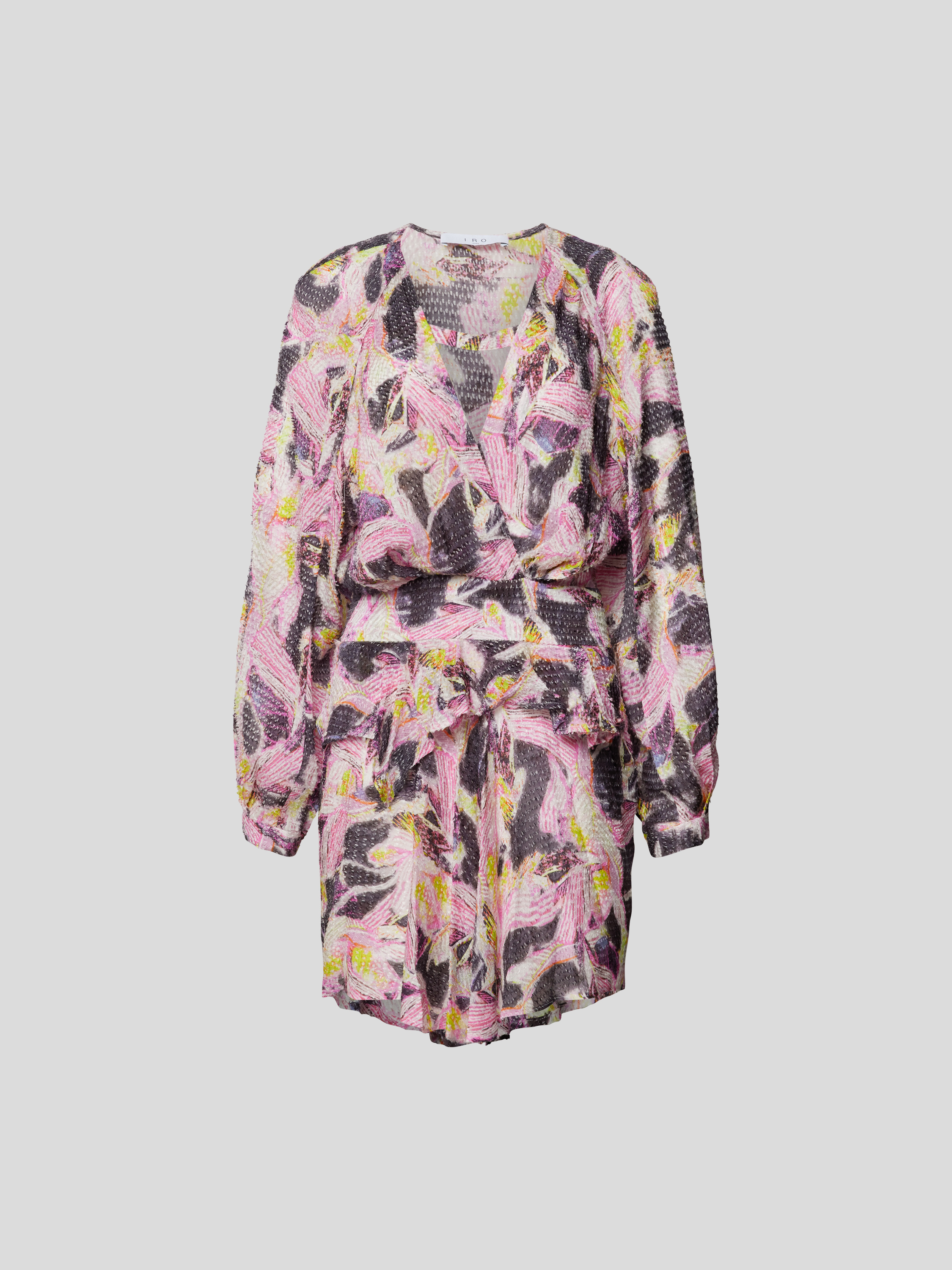 Das Minikleid mit V-Ausschnitt von IRO liegt mit seinem körpernahen Schnitt angenehm an und unterstreicht die feminine Silhouette. Das fließende Material aus reiner Viskose bringt Leichtigkeit in den Alltag, während das strukturierte Allover-Muster und die Wickel-Optik Abwechslung schaffen. Langärmelige Gestaltung ergänzt den modernen Look.