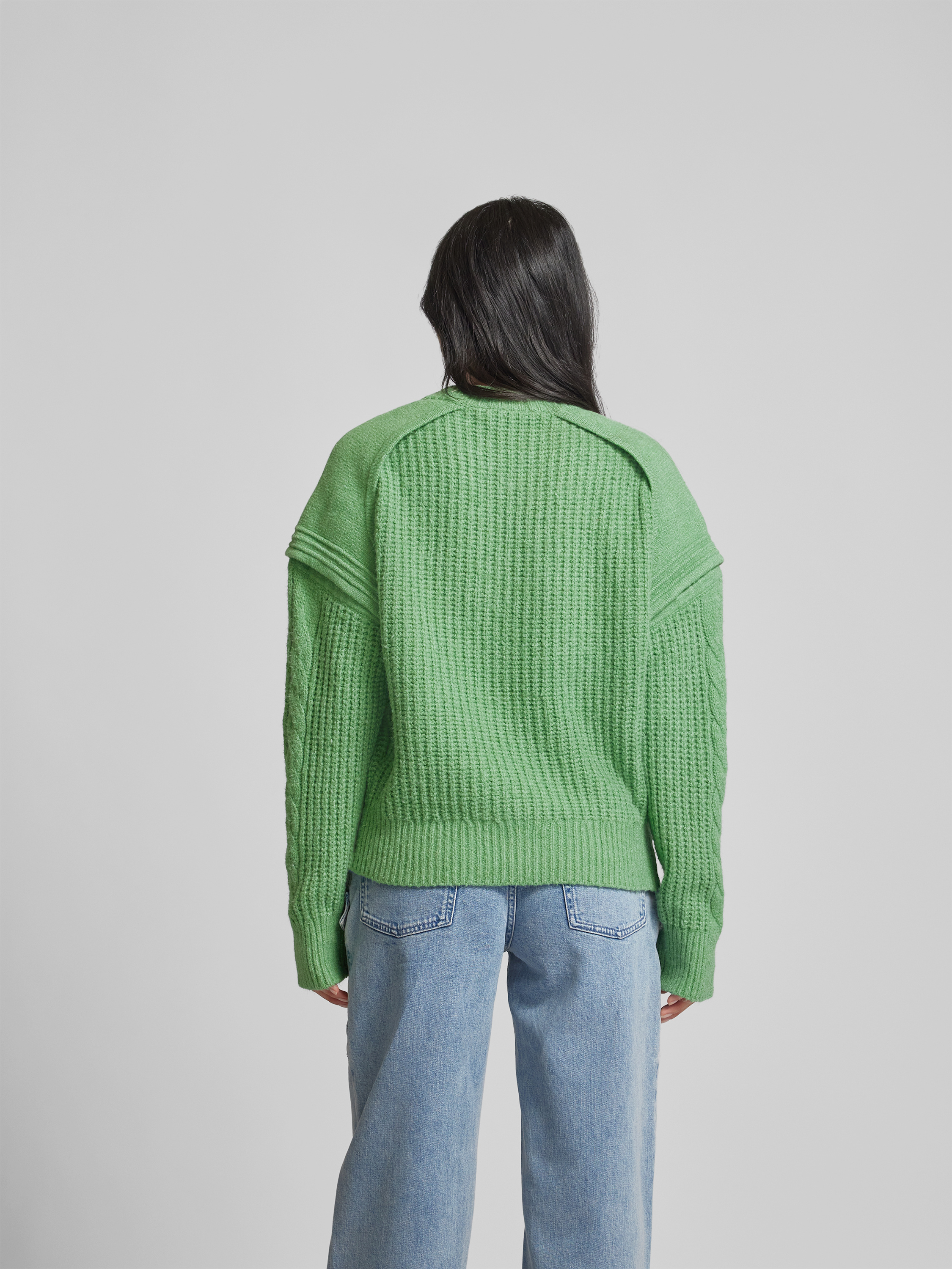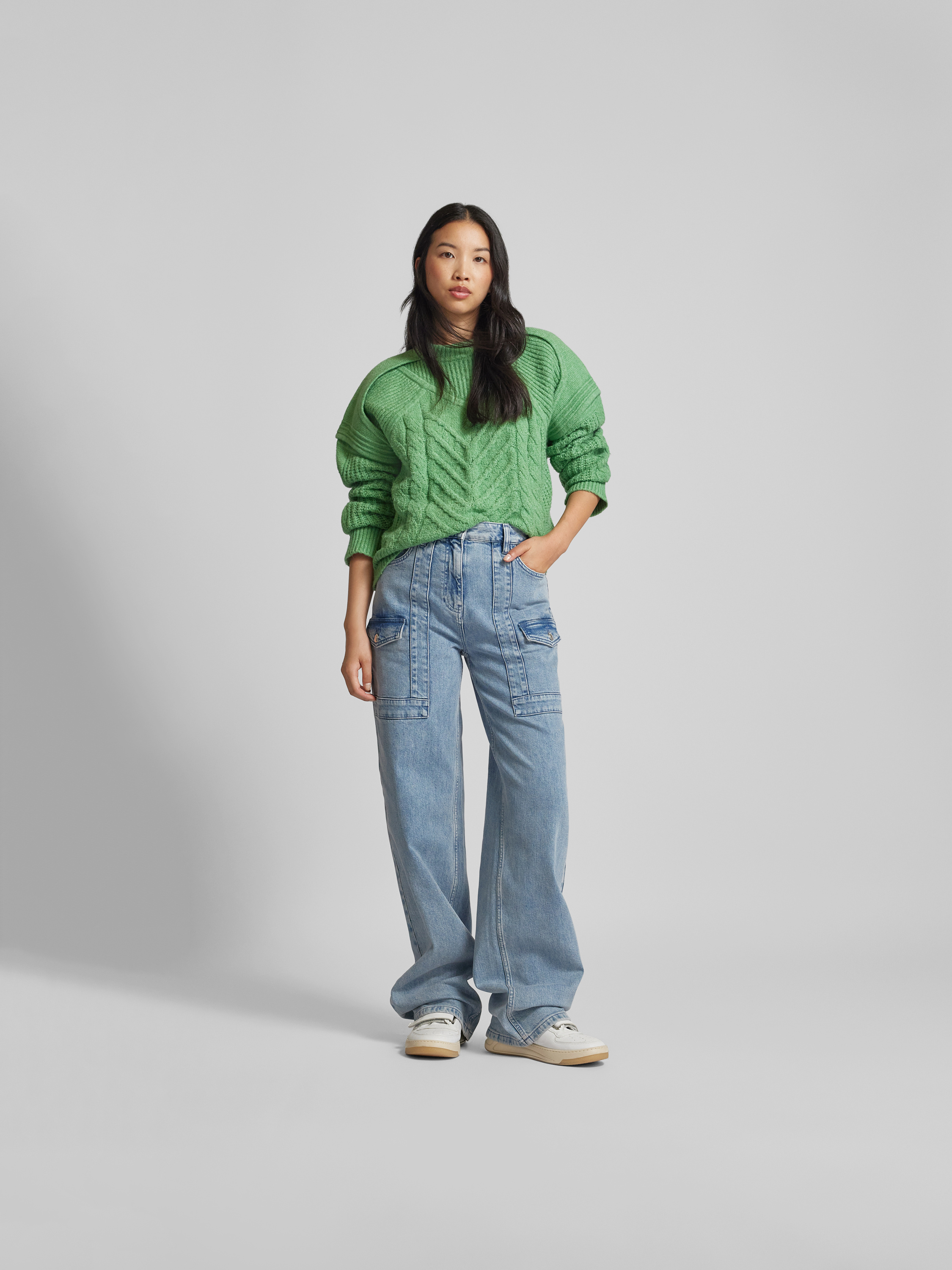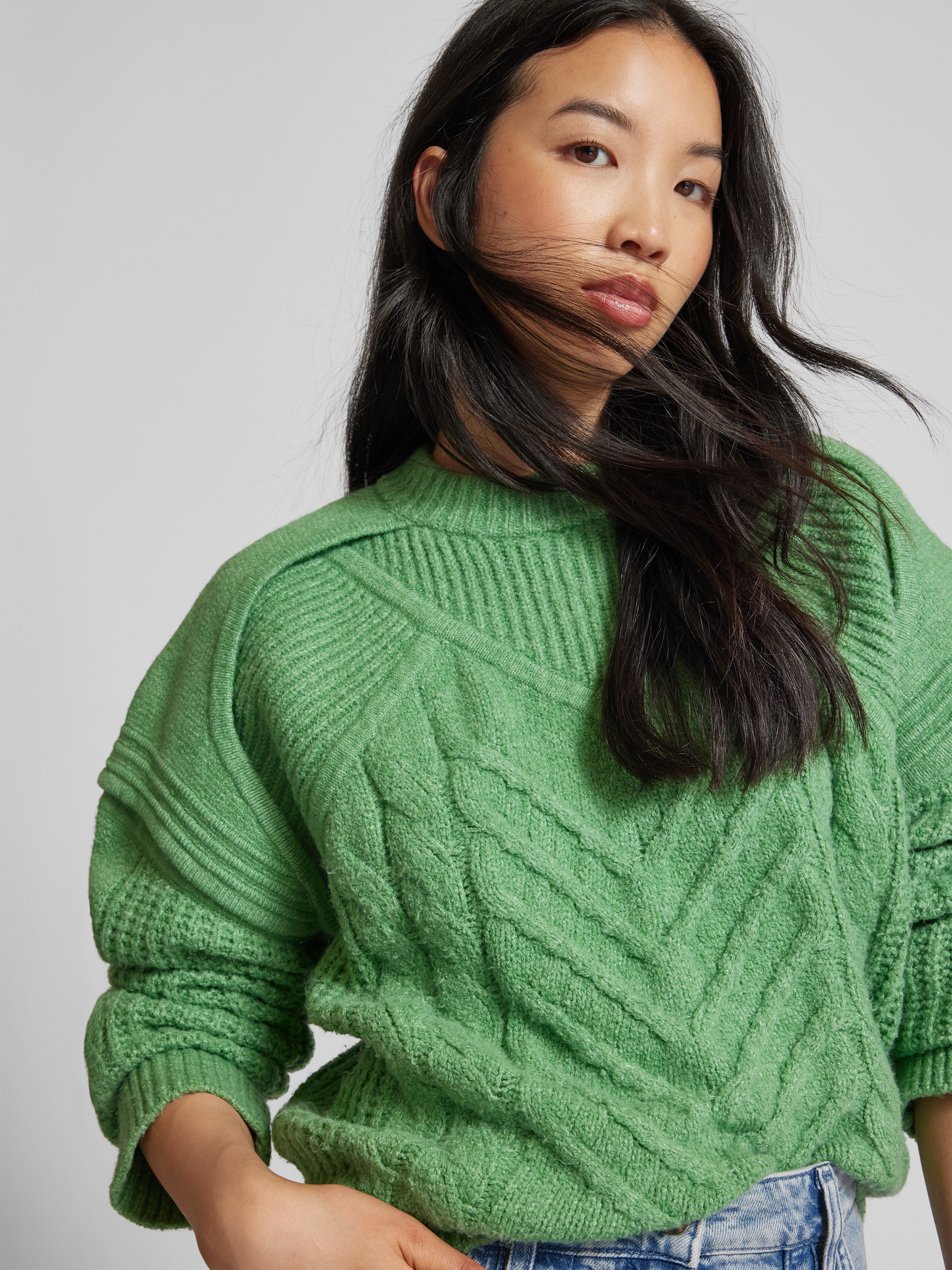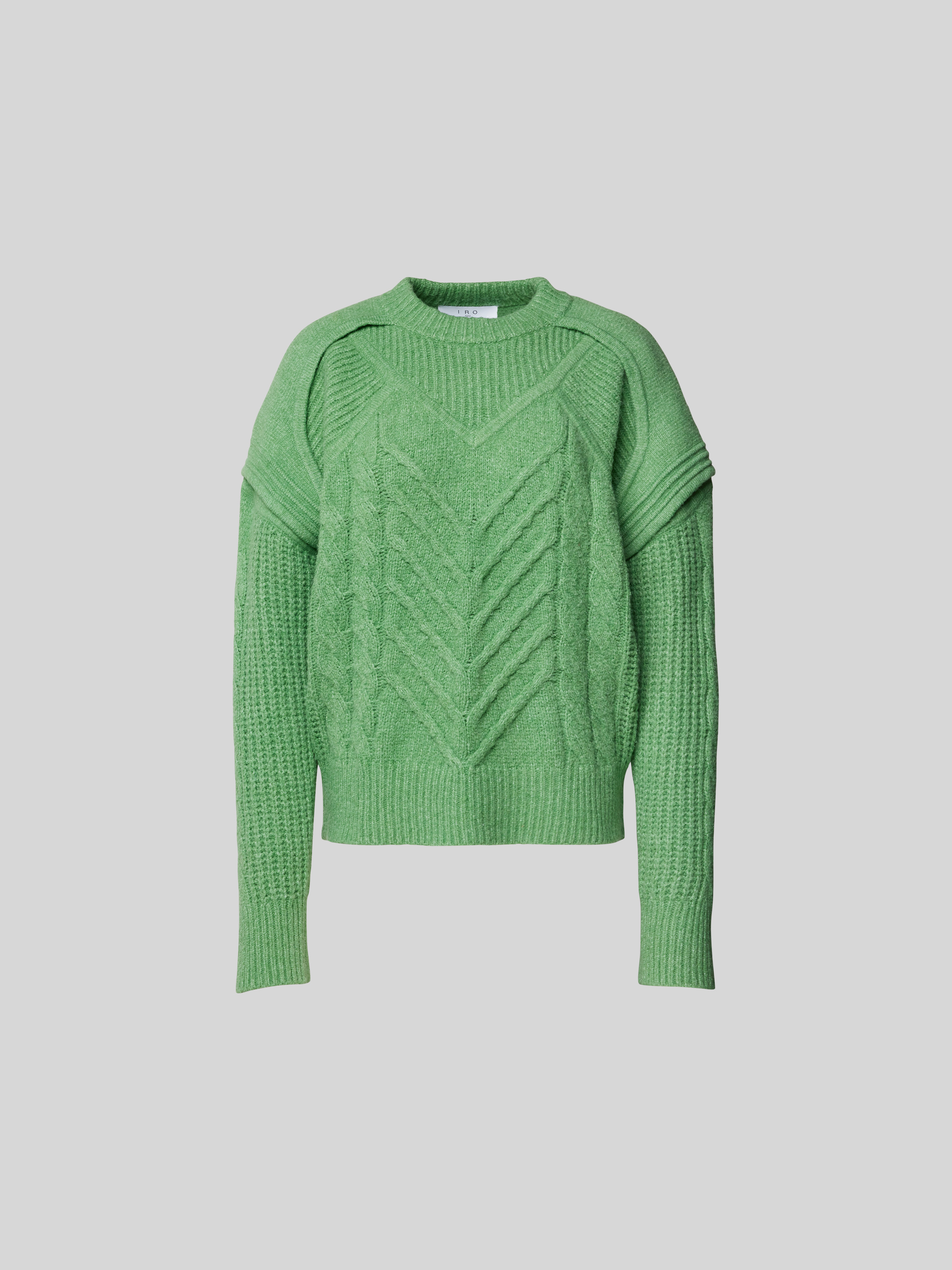 Der Damenpullover von IRO fällt durch seine lockere Passform und die markante Strick-Optik auf, wodurch ein angenehmes Tragegefühl entsteht. Dank des Baumwoll-Elasthan-Mixes bleibt der Stoff geschmeidig und formstabil. Ein Stehkragen sowie gerippte Abschlüsse runden das Gesamtbild stimmig ab.