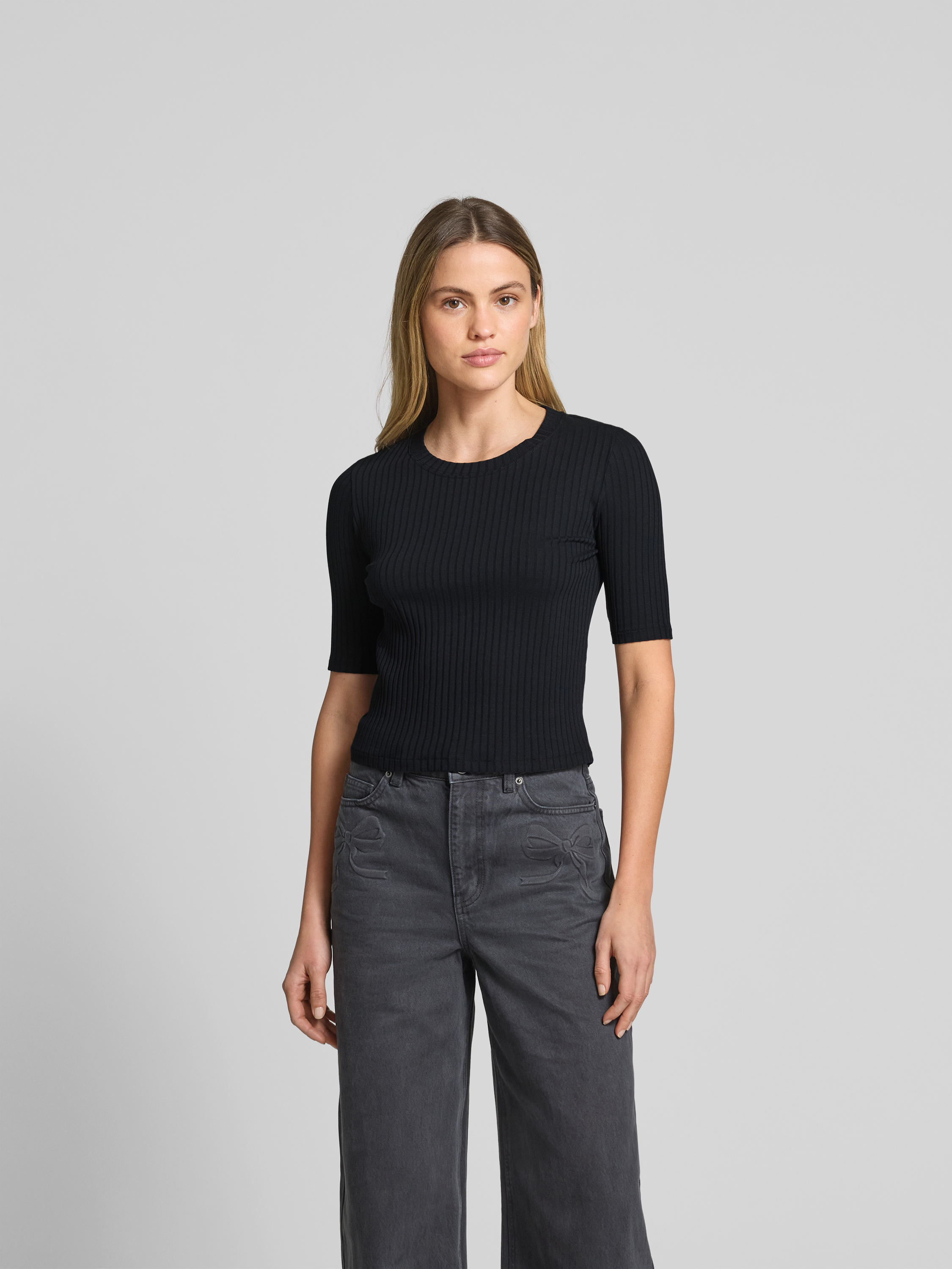 Das Damen T-Shirt von IRO zeichnet sich durch seine körpernahe Passform und den klassischen Rundhalsausschnitt aus. Der Baumwoll-Elasthan-Mix sorgt für ein angenehmes Tragegefühl, während der Halbarm eine vielseitige Kombinierbarkeit ermöglicht. In dezenter Ripp-Optik gehalten, wirkt es zeitlos und stilvoll.