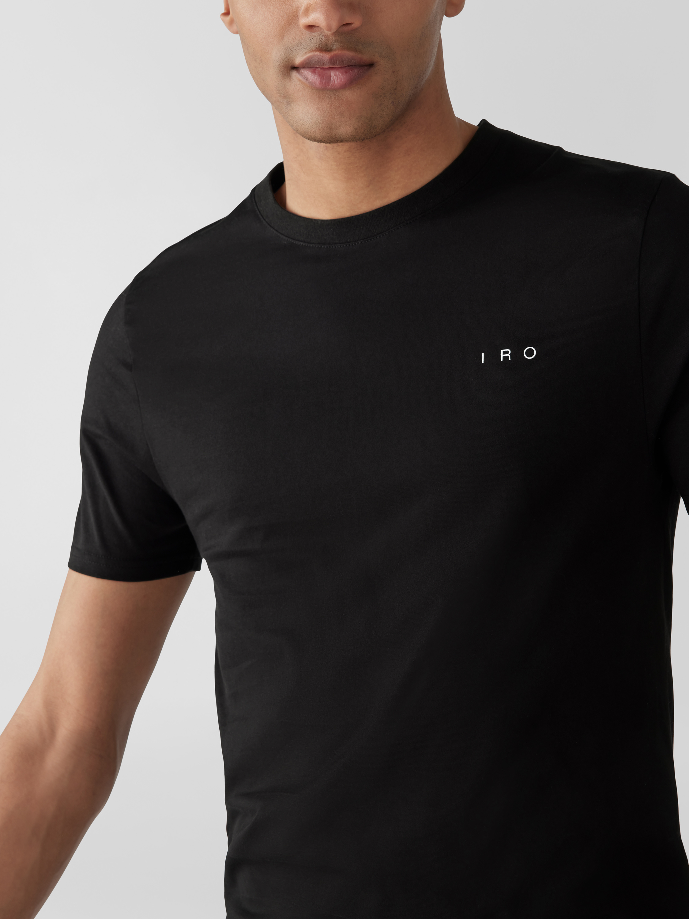 Das Herren T-Shirt von IRO aus reiner Baumwolle sitzt angenehm und locker auf der Haut, wodurch es sich vielseitig kombinieren lässt. Ein gerippter Rundhalsausschnitt sorgt für ein klassisches Detail, während dezente Label-Prints dem unifarbenen Design eine individuelle Note verleihen.