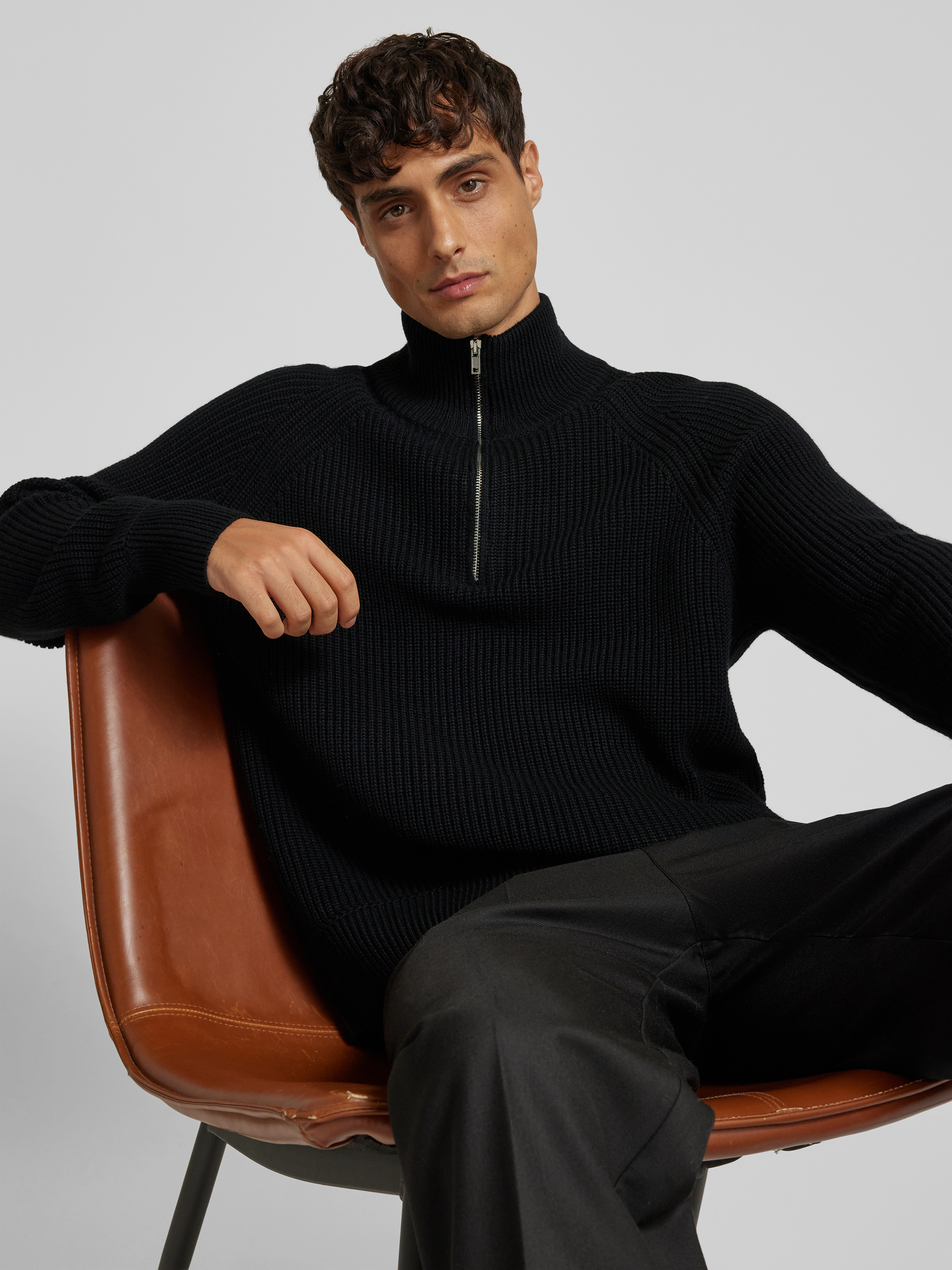 Der Herren Pullover mit Stehkragen von ISNURH aus reiner Wolle zeichnet sich durch eine angenehm wärmende Haptik aus. Durch den Regular Fit und die gerippten Abschlüsse fällt das Modell lässig und bleibt formstabil. Dank des kurzen Stehkragens entsteht ein dezenter, moderner Akzent.