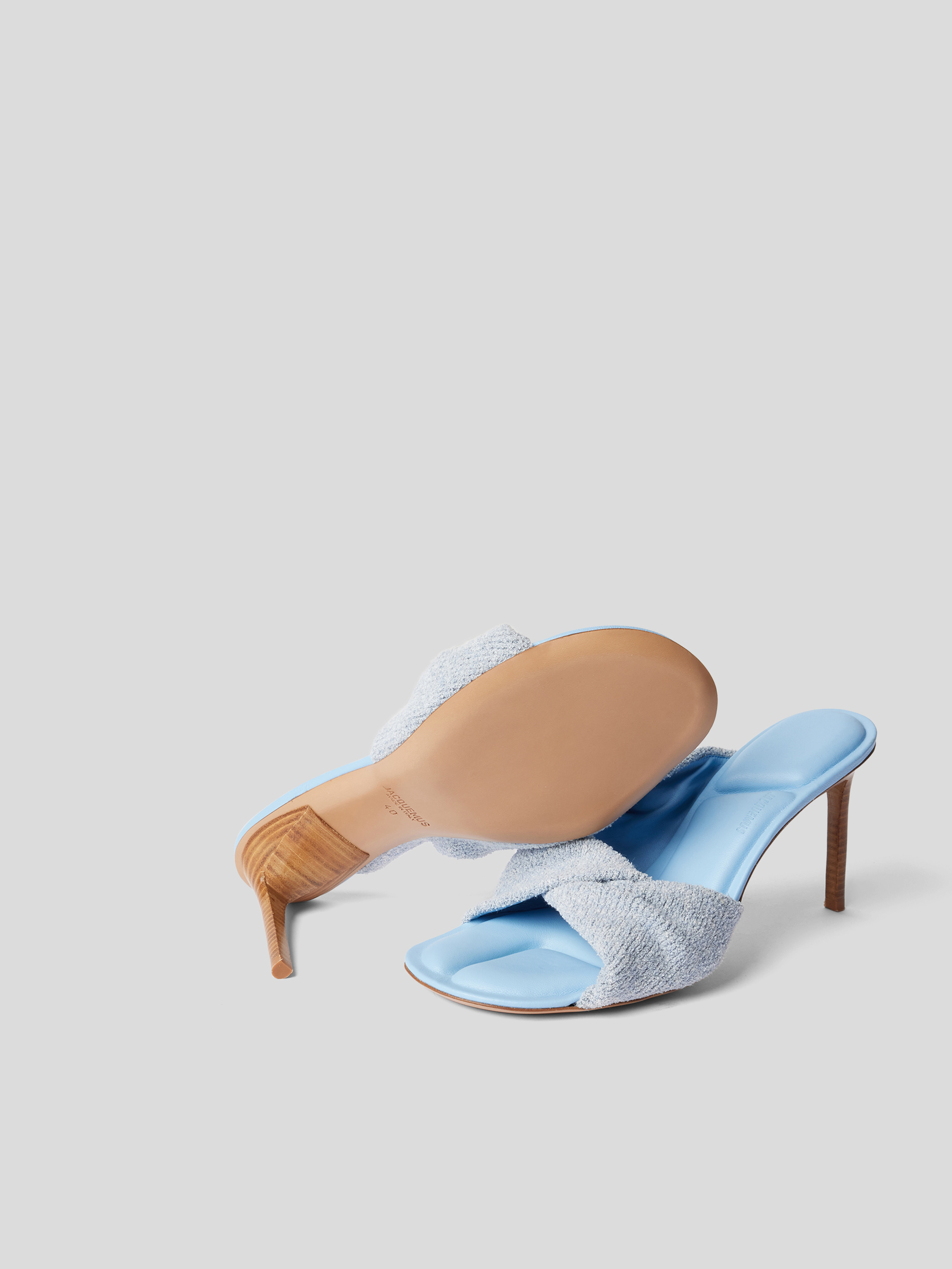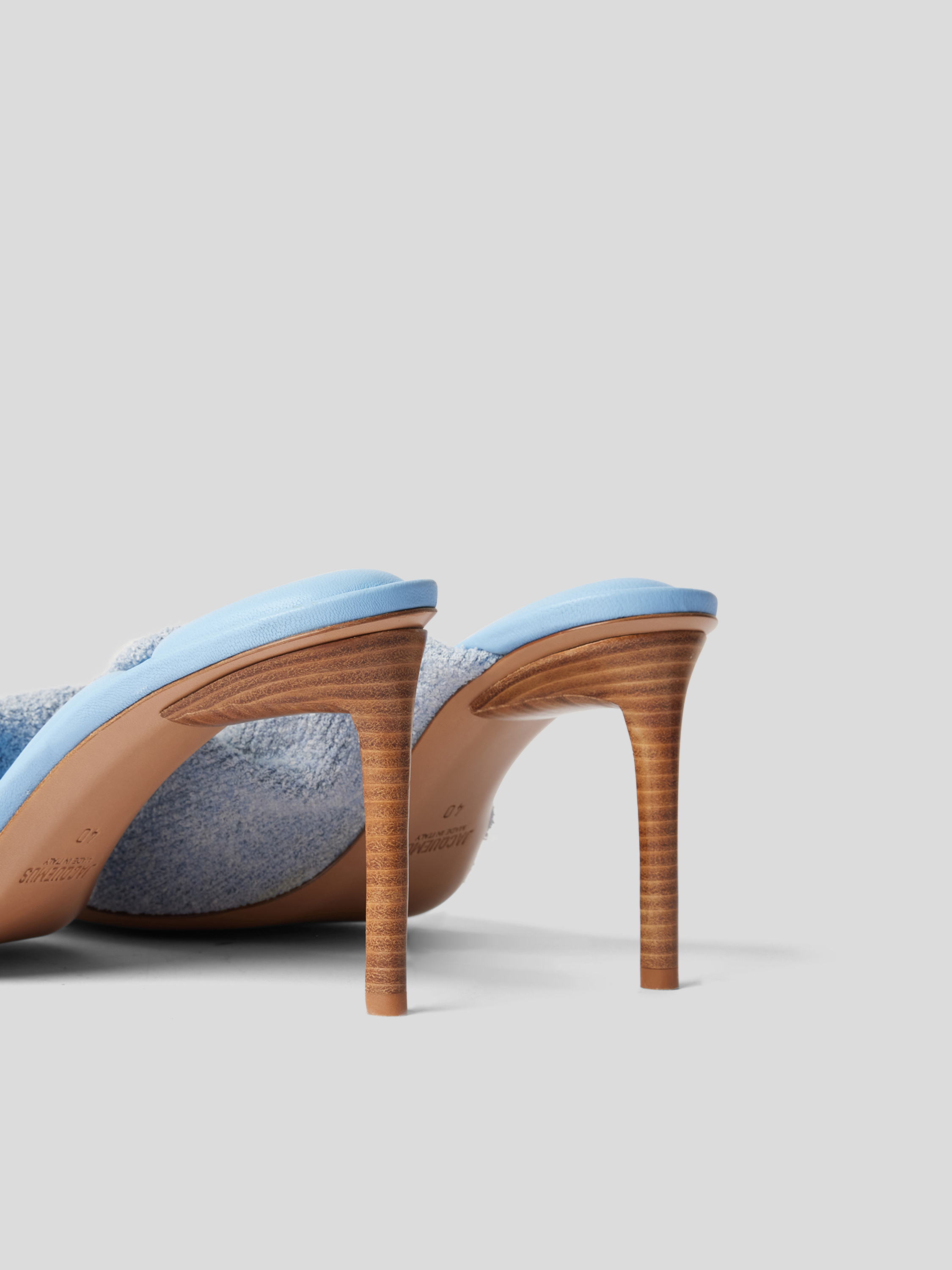Die Pantoletten mit Pfennigabsatz von Jacquemus kombinieren ein strapazierfähiges Obermaterial mit einer abgerundeten Spitze, wodurch sie vielseitig einsetzbar sind. Durch den markanten Blockabsatz entsteht ein angenehmes Laufgefühl, während feine Riemen in Stick-Optik dem Design eine besondere Note verleihen. Die dezenten Brand-Details runden das Gesamtbild ab.