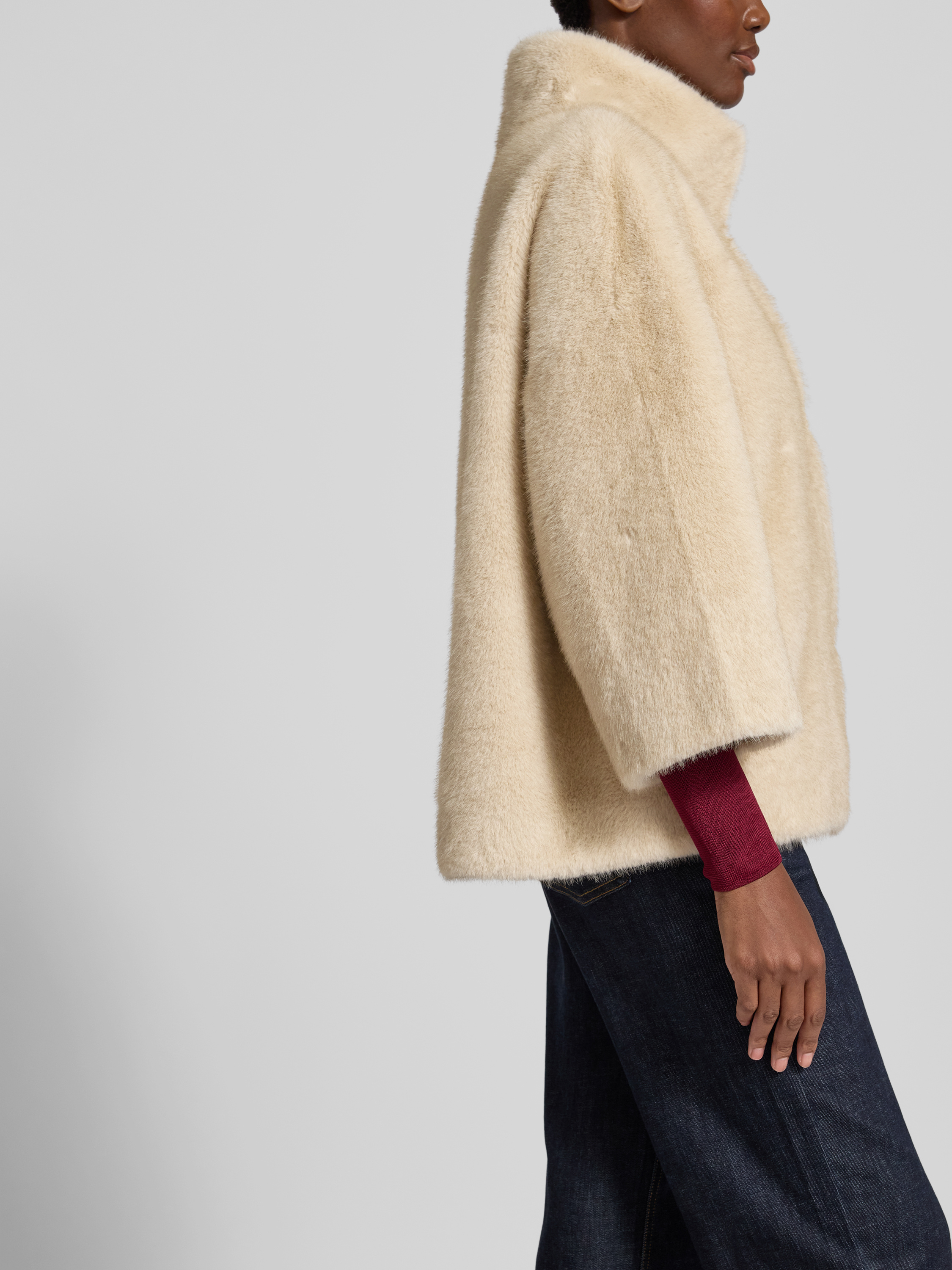 Die Damenjacke von Juvia fällt durch ihren entspannten Wide Fit auf und sorgt mit dem weichen Kunstfellbesatz für ein angenehmes Tragegefühl. Der Stehkragen und die 3/4-Ärmel bringen eine moderne Note in den Alltag. So eignet sich das Modell für vielseitige Kombinationen.