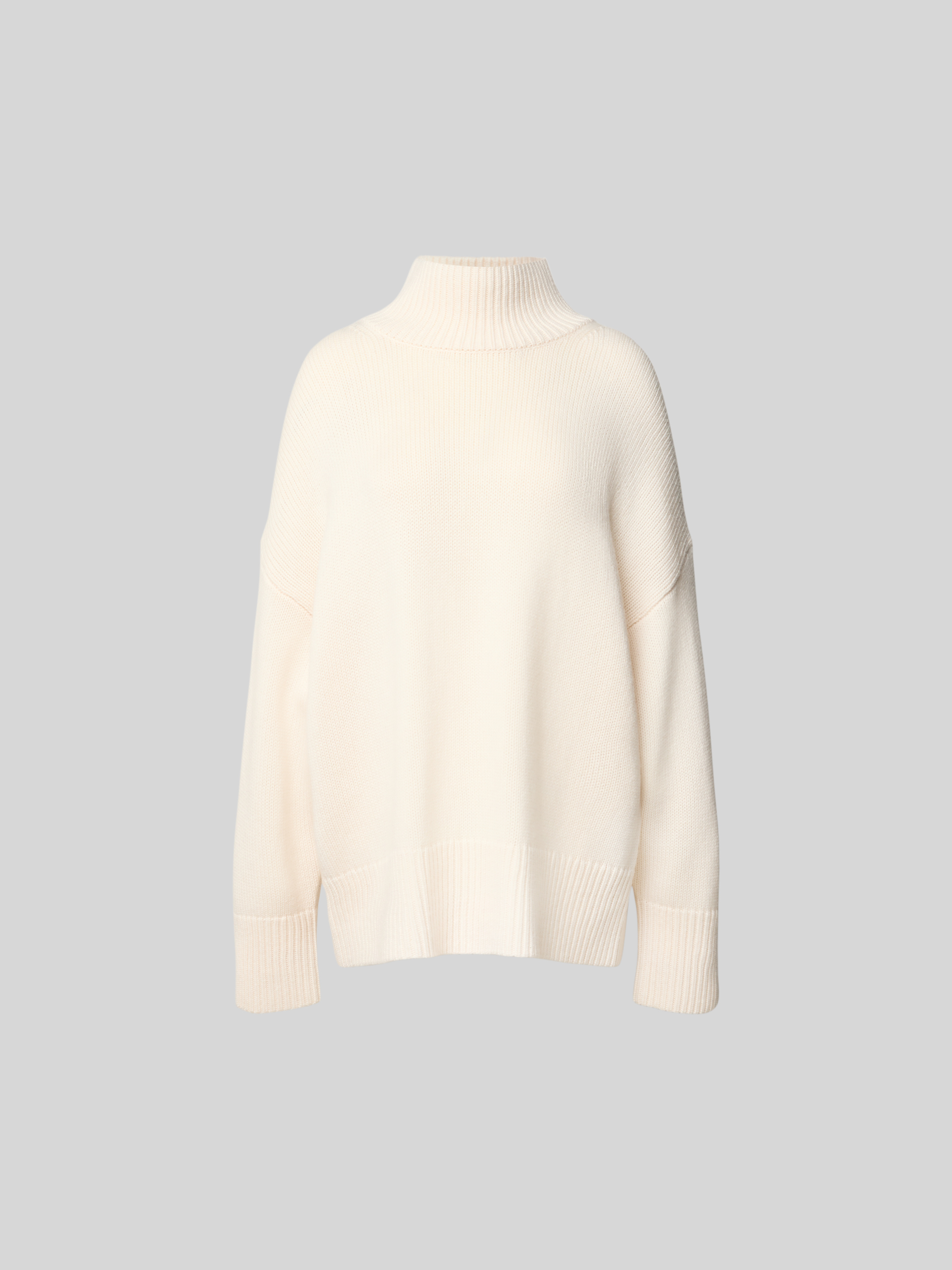 Der Damen Pullover von Juvia kombiniert einen Woll-Mix mit Kaschmir-Anteil und sorgt so für ein besonders angenehmes Tragegefühl. Durch den Oversized-Fit und die markanten Abschlüsse entsteht ein lässiger Look, der Bewegungsfreiheit lässt. Die Strick-Optik und der Stehkragen runden das Design dezent ab.