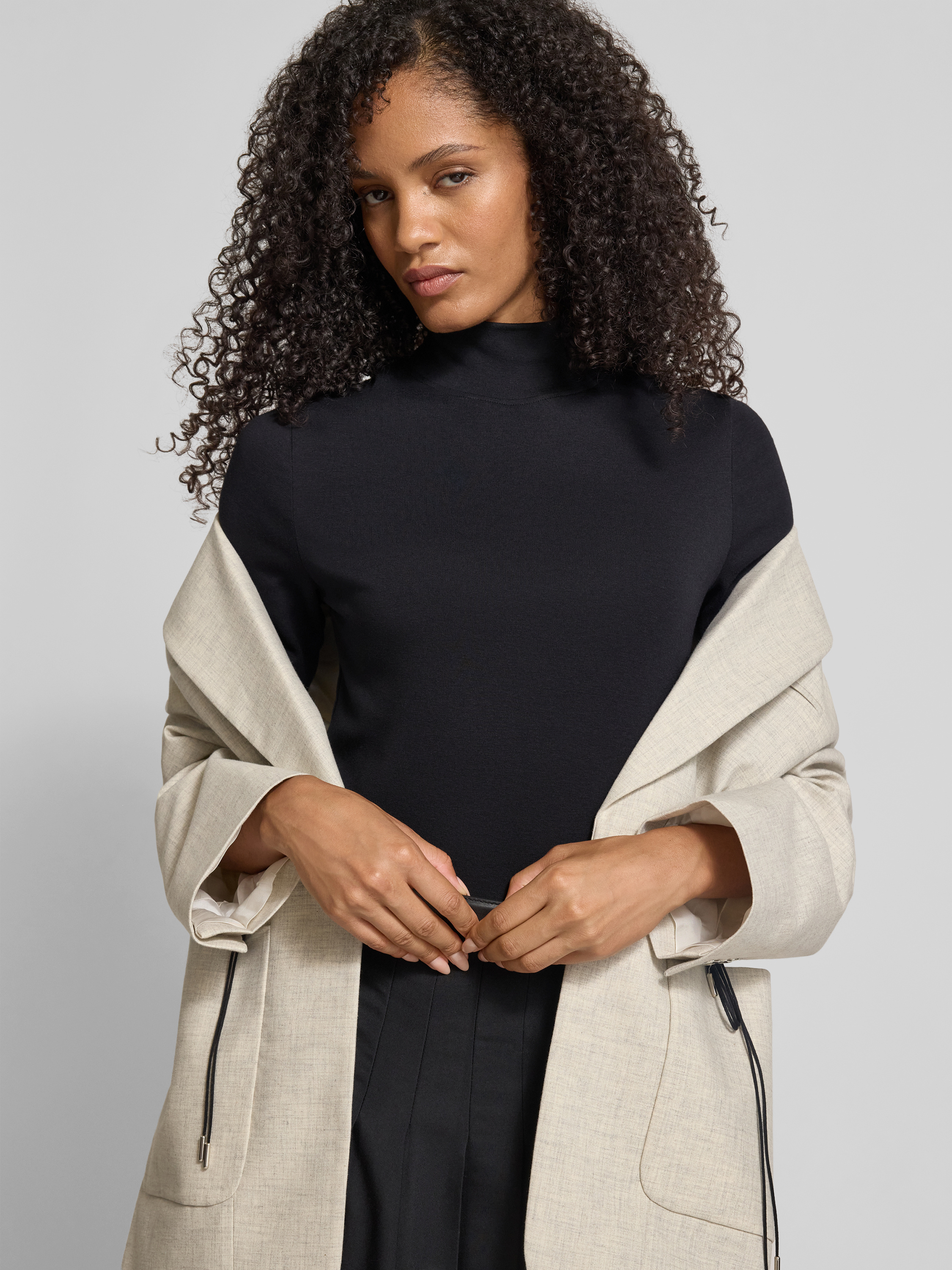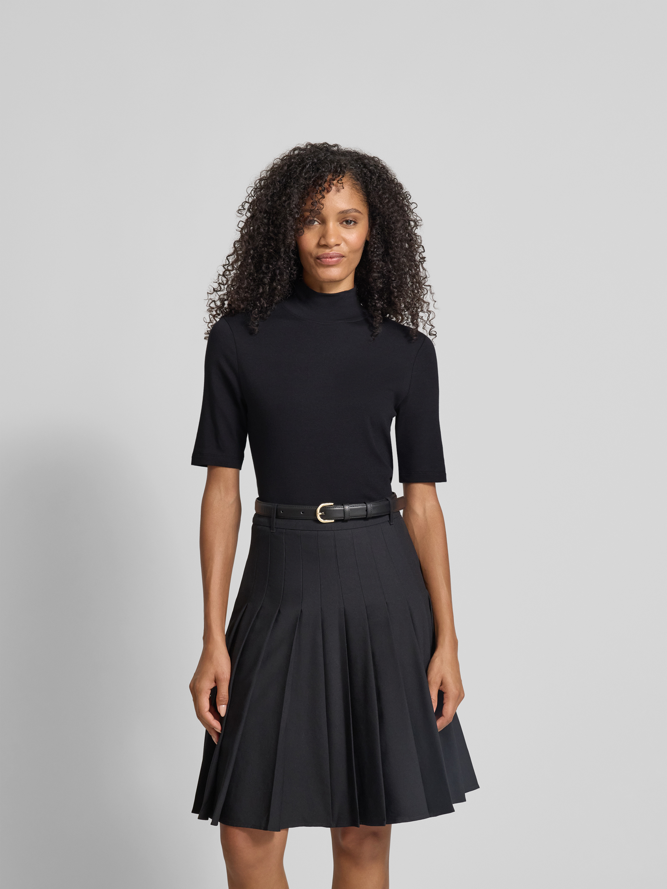 Das Damen Slim Fit T-Shirt mit Rollkragen von Juvia schmiegt sich durch seinen elastischen Baumwoll-Modal-Mix angenehm an die Silhouette. Mit Halbarm und körpernaher Passform entsteht ein moderner Look, der sich vielseitig kombinieren lässt. So eignet es sich sowohl für entspannte als auch für gepflegte Outfits.