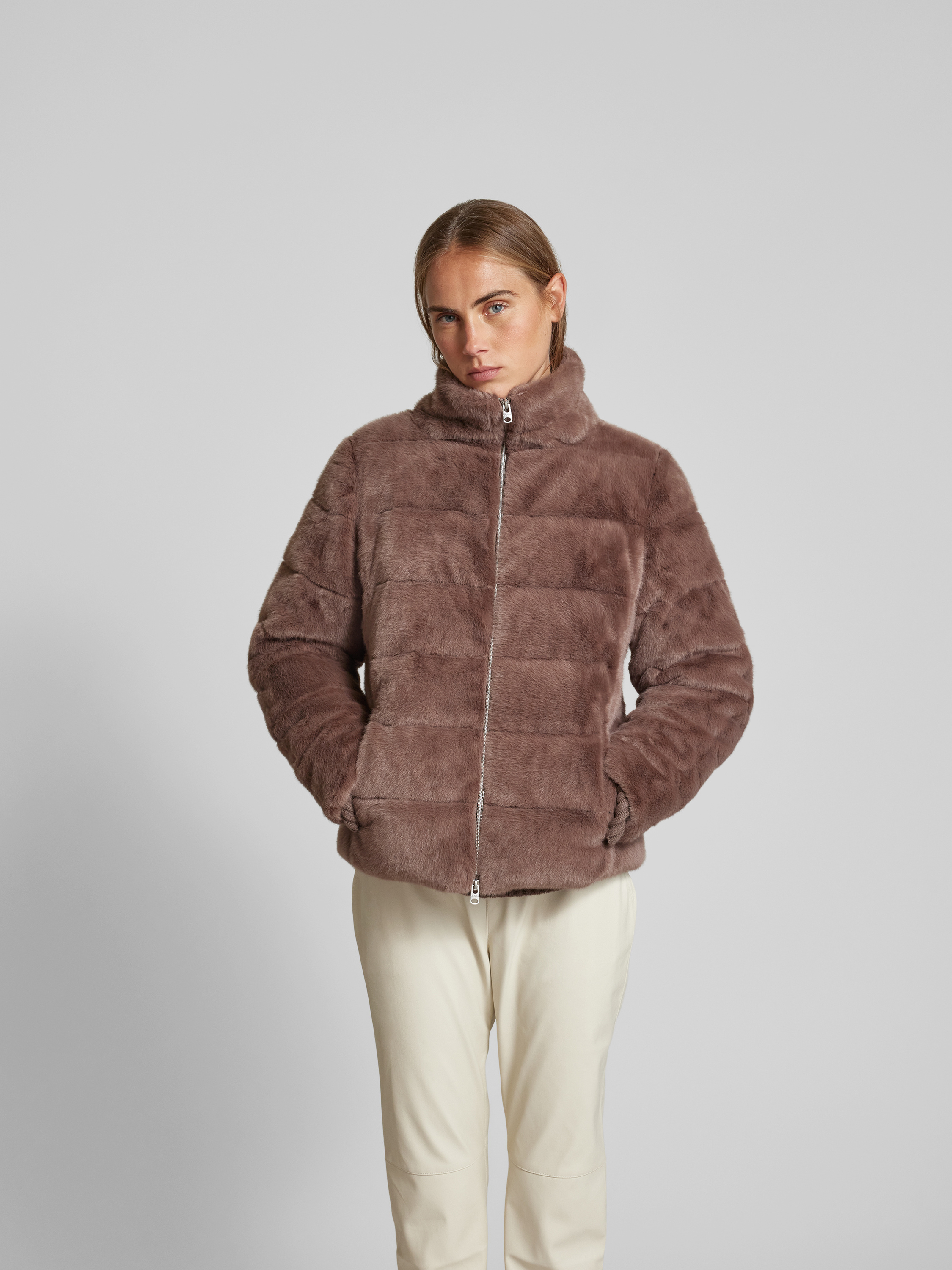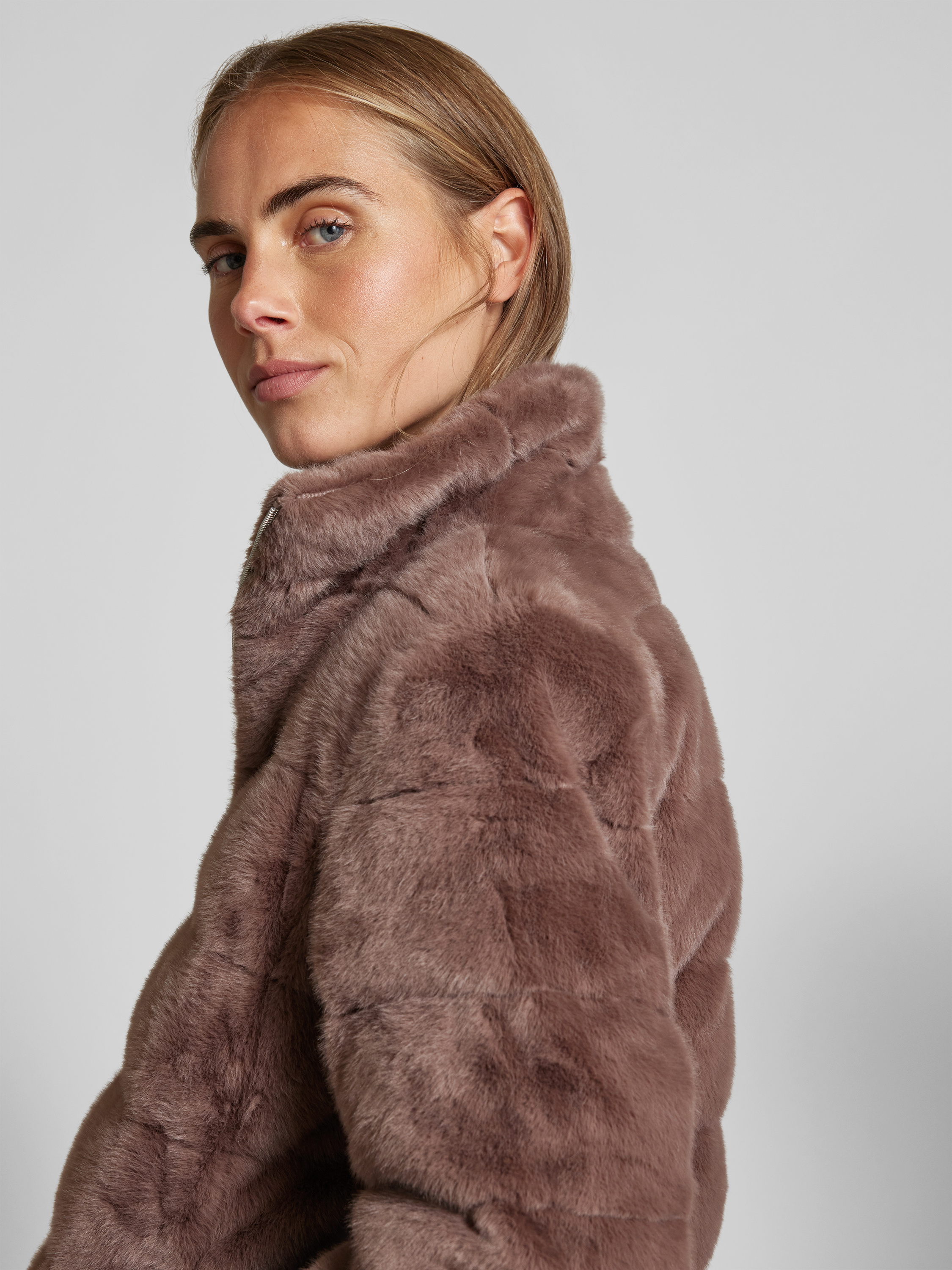 JuviaSteppjacke aus Kunstfell in mittelbraun