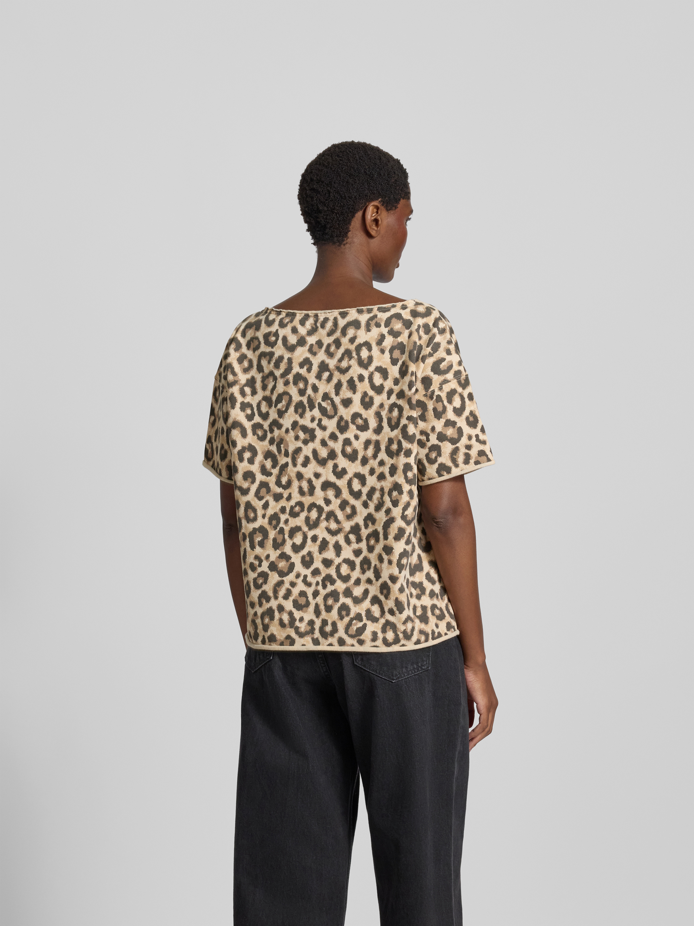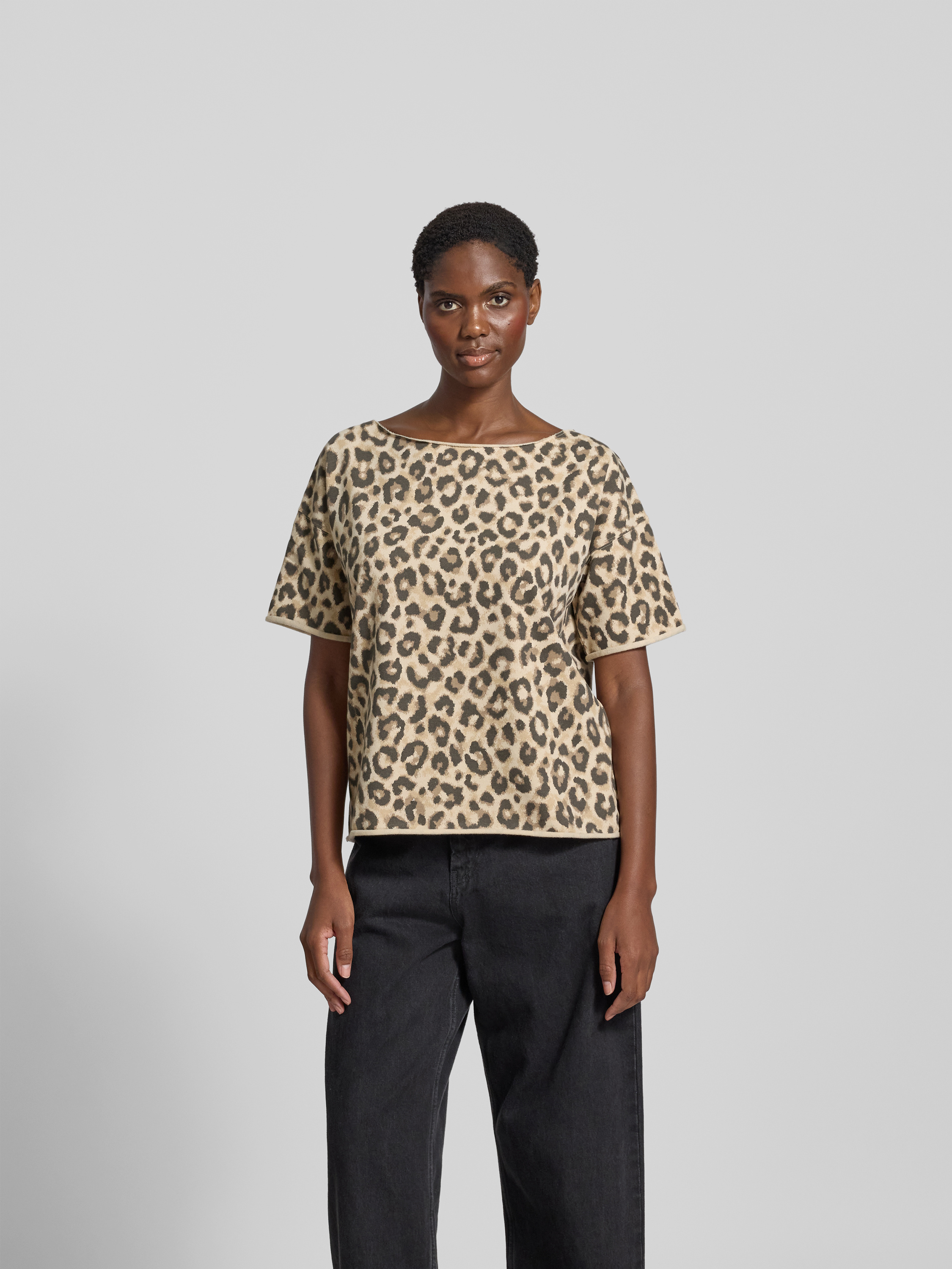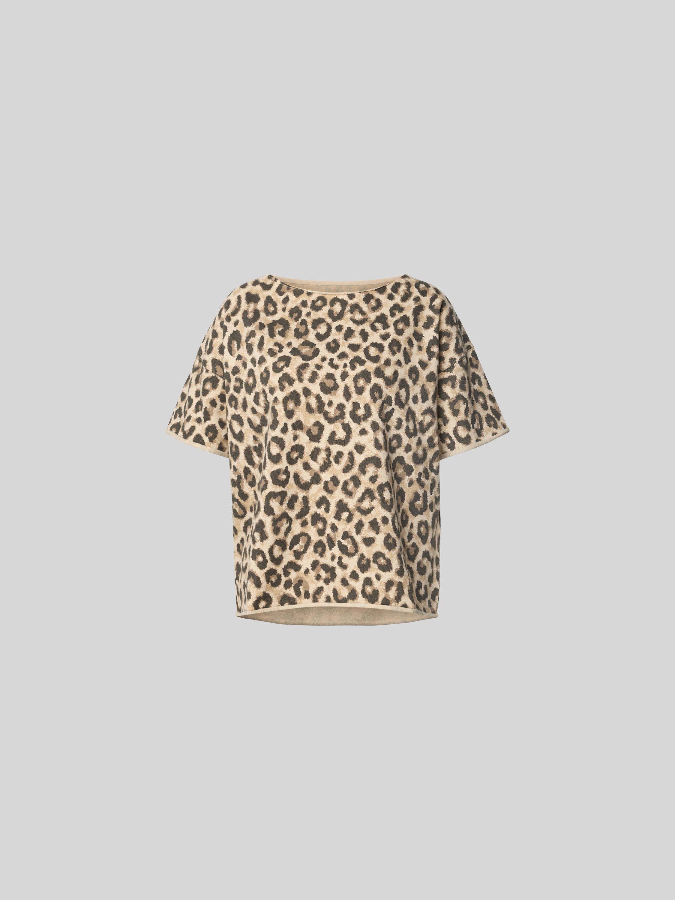 Das Damen T-Shirt von Juvia vereint Komfort und Stil durch seinen entspannten Schnitt und den Baumwoll-Mix. Der Allover-Animal-Print sorgt für einen lebendigen Akzent, während die überschnittenen Schultern und der Rollsaum eine lockere Passform unterstützen, die vielseitig einsetzbar ist.