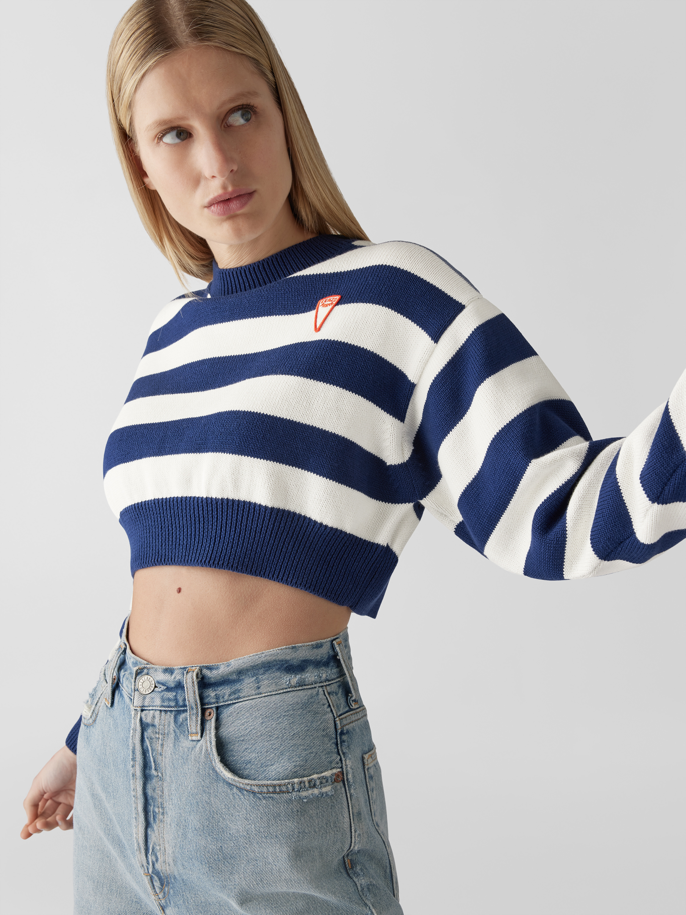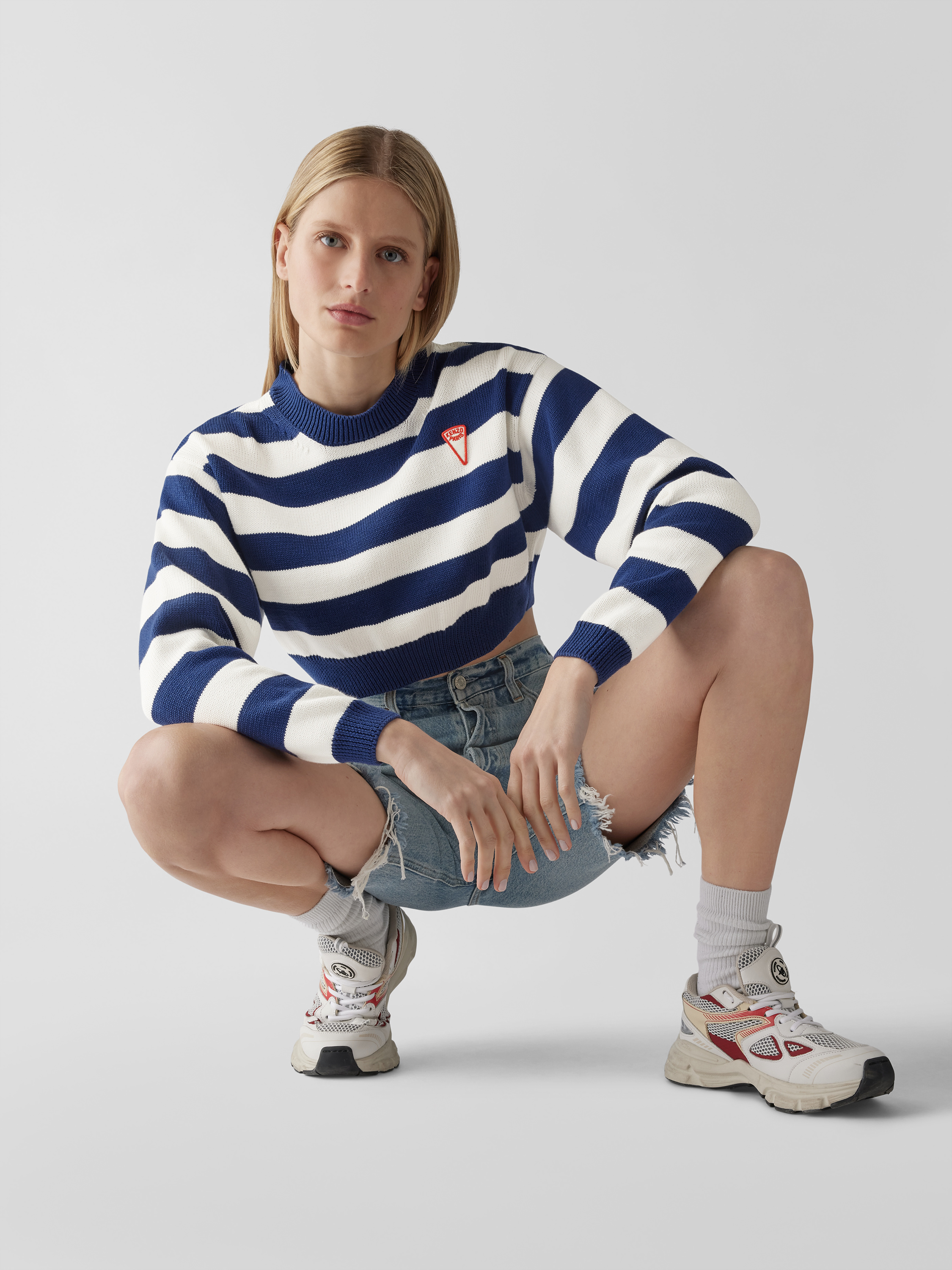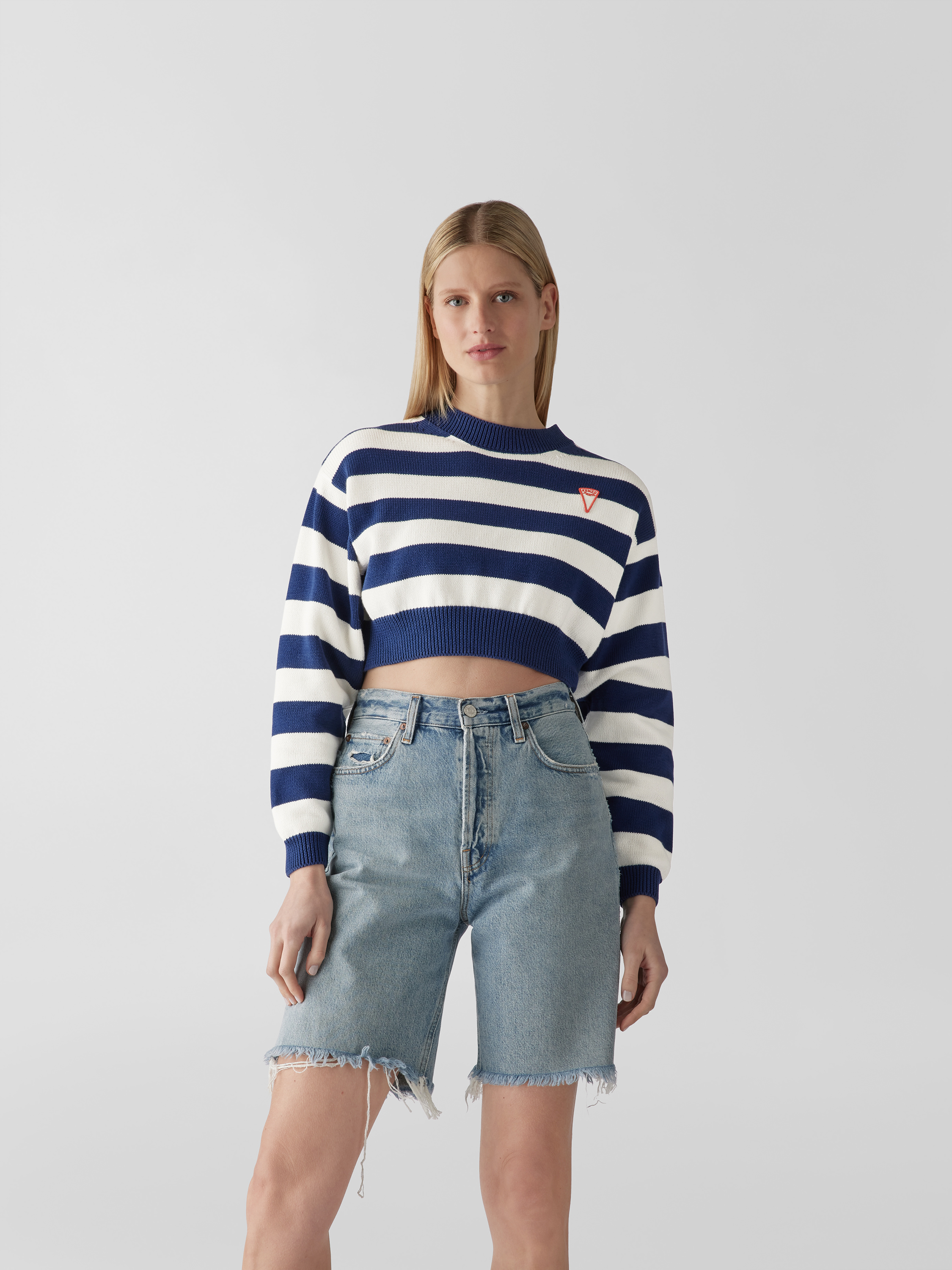 Der Damen Cropped Pullover von KENZO fällt durch sein lockeres Design angenehm auf und lässt sich vielseitig kombinieren. Reine Baumwolle sorgt für ein komfortables Tragegefühl, während das Streifenmuster in Strick-Optik jedem Outfit eine moderne Note verleiht. Durch die verkürzte Form entsteht ein lässiger, unkomplizierter Stil.