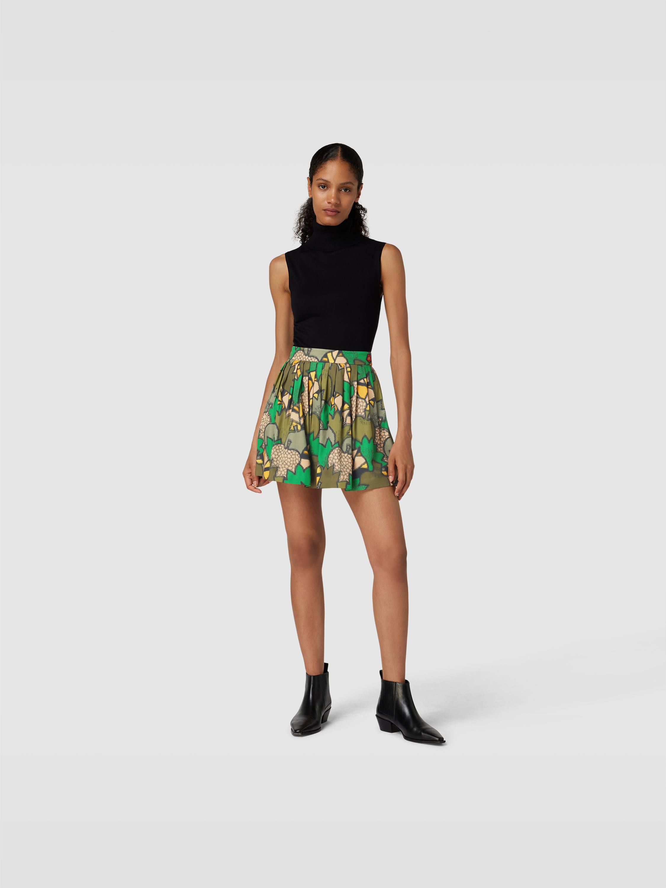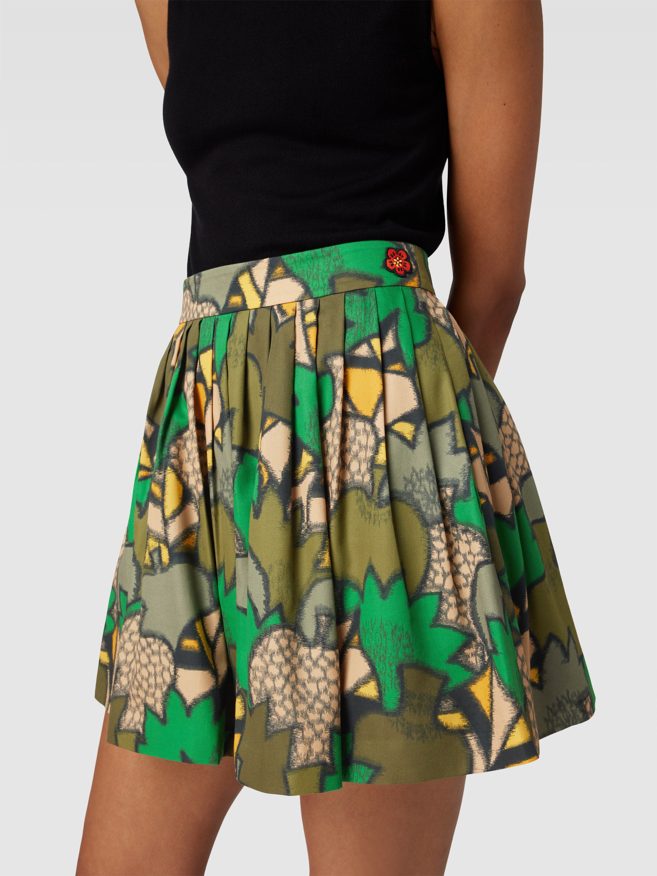 Der Faltenrock in Minilänge von KENZO kombiniert einen Lyocell-Baumwoll-Mix mit einer A-Linienform, wodurch ein angenehmes Tragegefühl entsteht. Durch das grafische Allover-Muster erhält das Modell eine frische Note, während gelegte Falten für eine schwungvolle Silhouette sorgen. Besonders an wärmeren Tagen eignet sich der Schnitt für vielseitige Outfits.