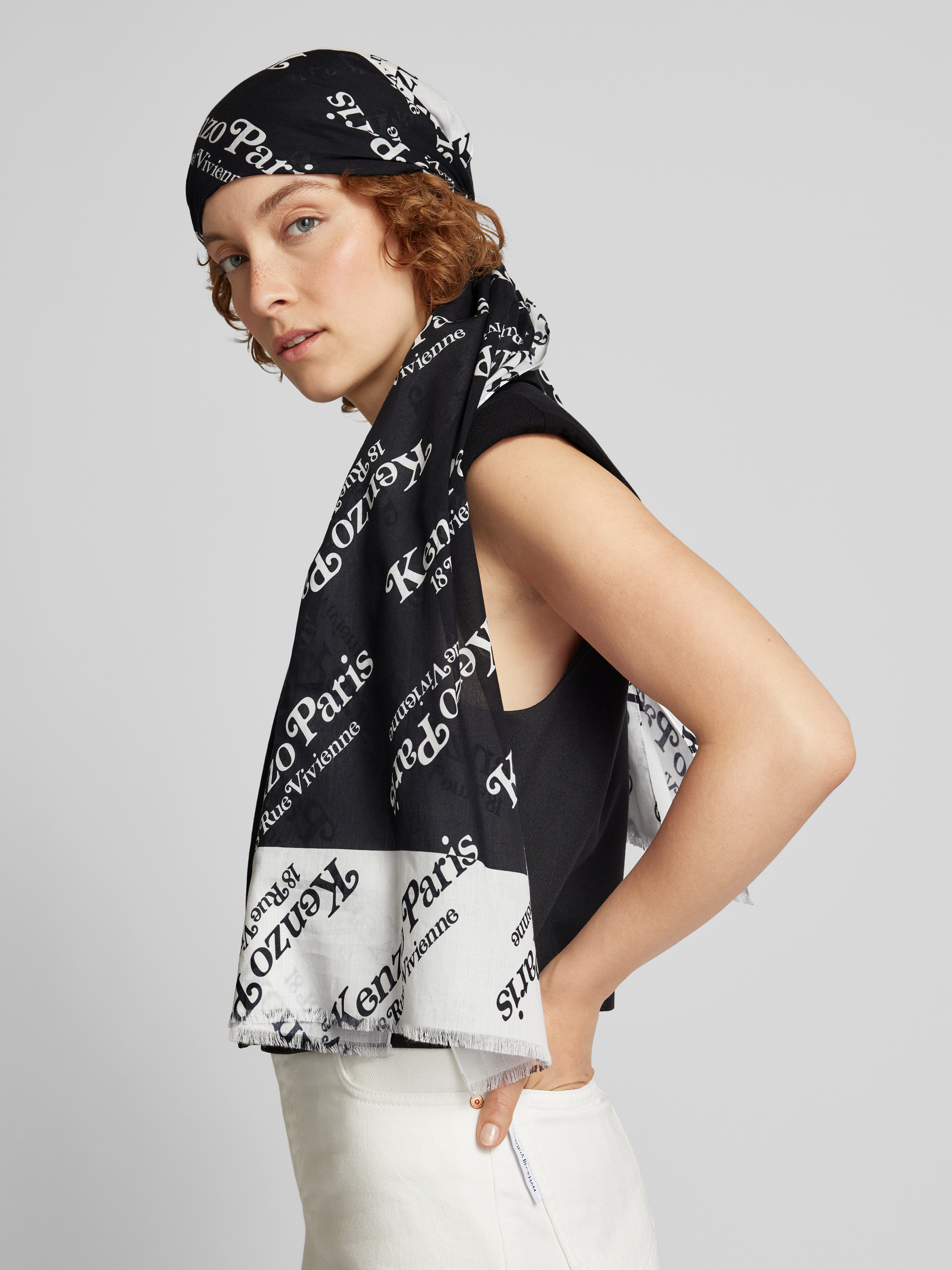 Der Herren Schal von KENZO zeigt sich in rechteckiger Form und fällt durch seinen ausdrucksstarken Allover-Label-Print auf. Die Two-Tone-Machart und ausgefranste Abschlüsse sorgen für einen abwechslungsreichen Look. Reine Baumwolle verleiht dem Schal mit Allover-Label-Print ein angenehmes Tragegefühl.