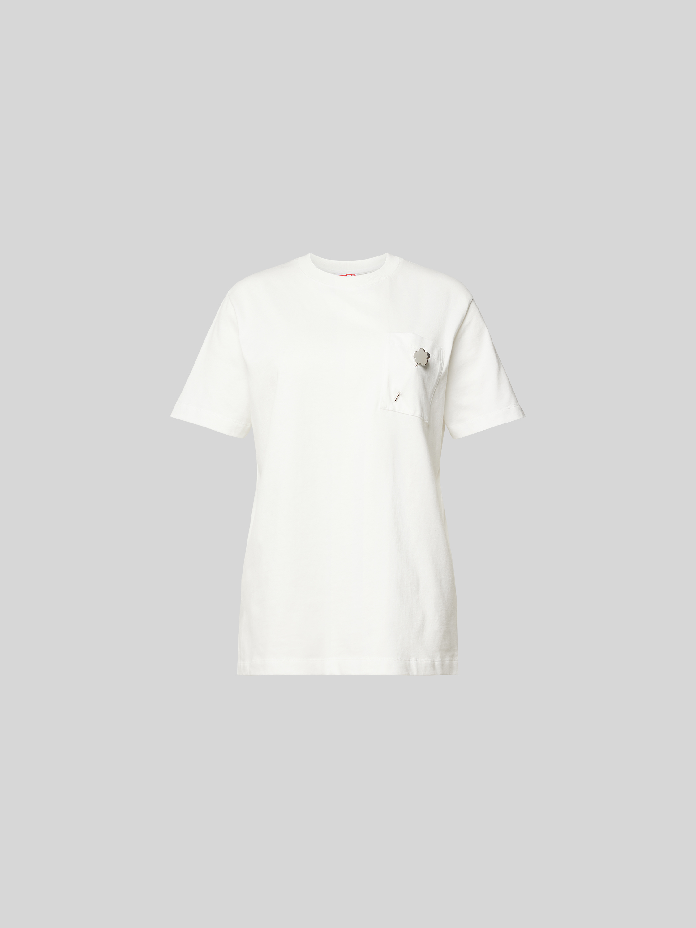 Das Damen T-Shirt von KENZO fällt durch seine gerade Passform und den angenehmen Sitz aus reiner Baumwolle auf. Eine kleine Brusttasche mit metallicfarbener Applikation setzt einen dezenten Akzent, während der klassische Rundhalsausschnitt vielseitige Kombinationsmöglichkeiten eröffnet. So lässt sich das T-Shirt mit Brusttasche unkompliziert in den Alltag integrieren.