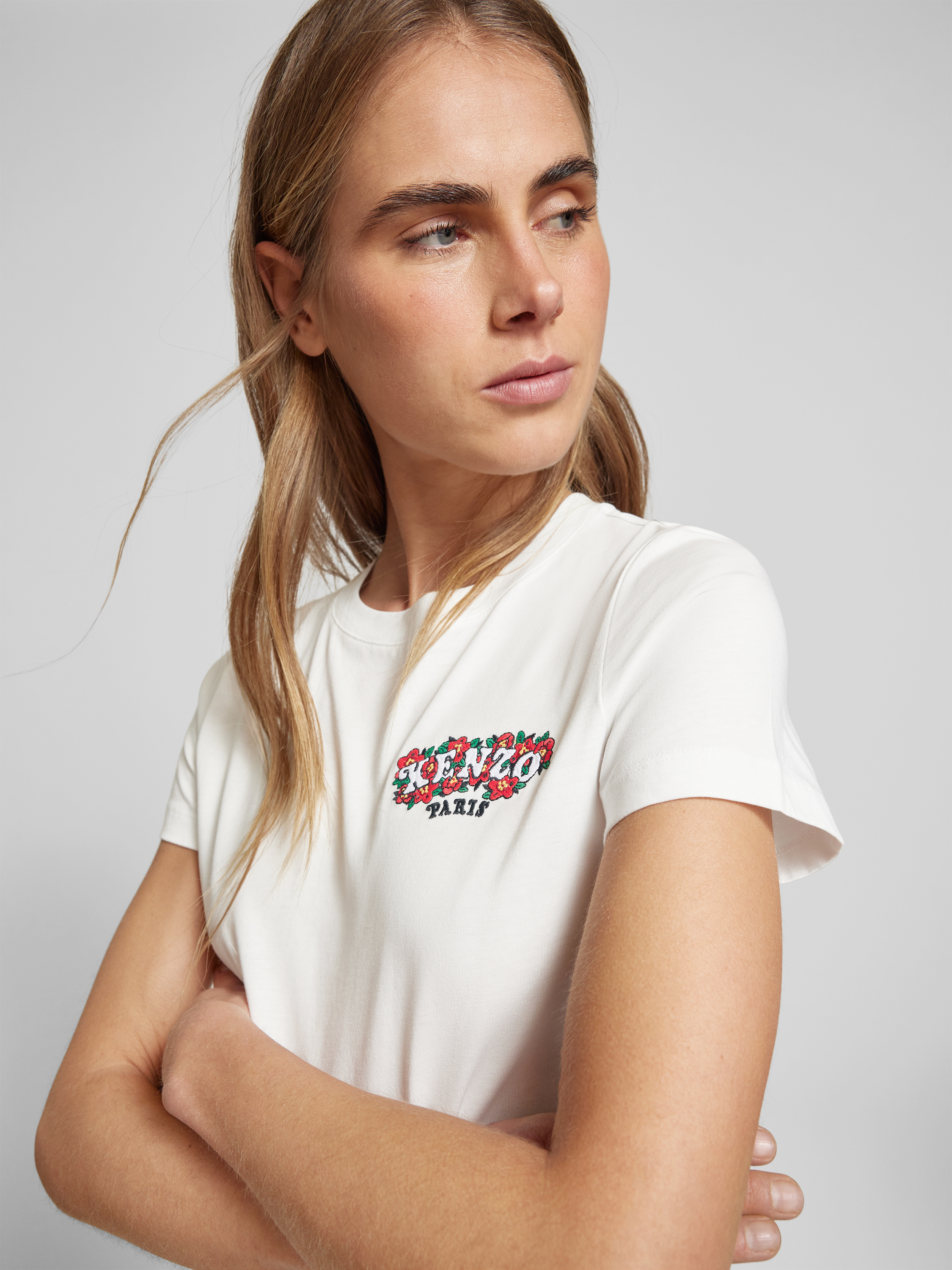 KenzoT-Shirt mit floralem Label-Stitching in offwhite