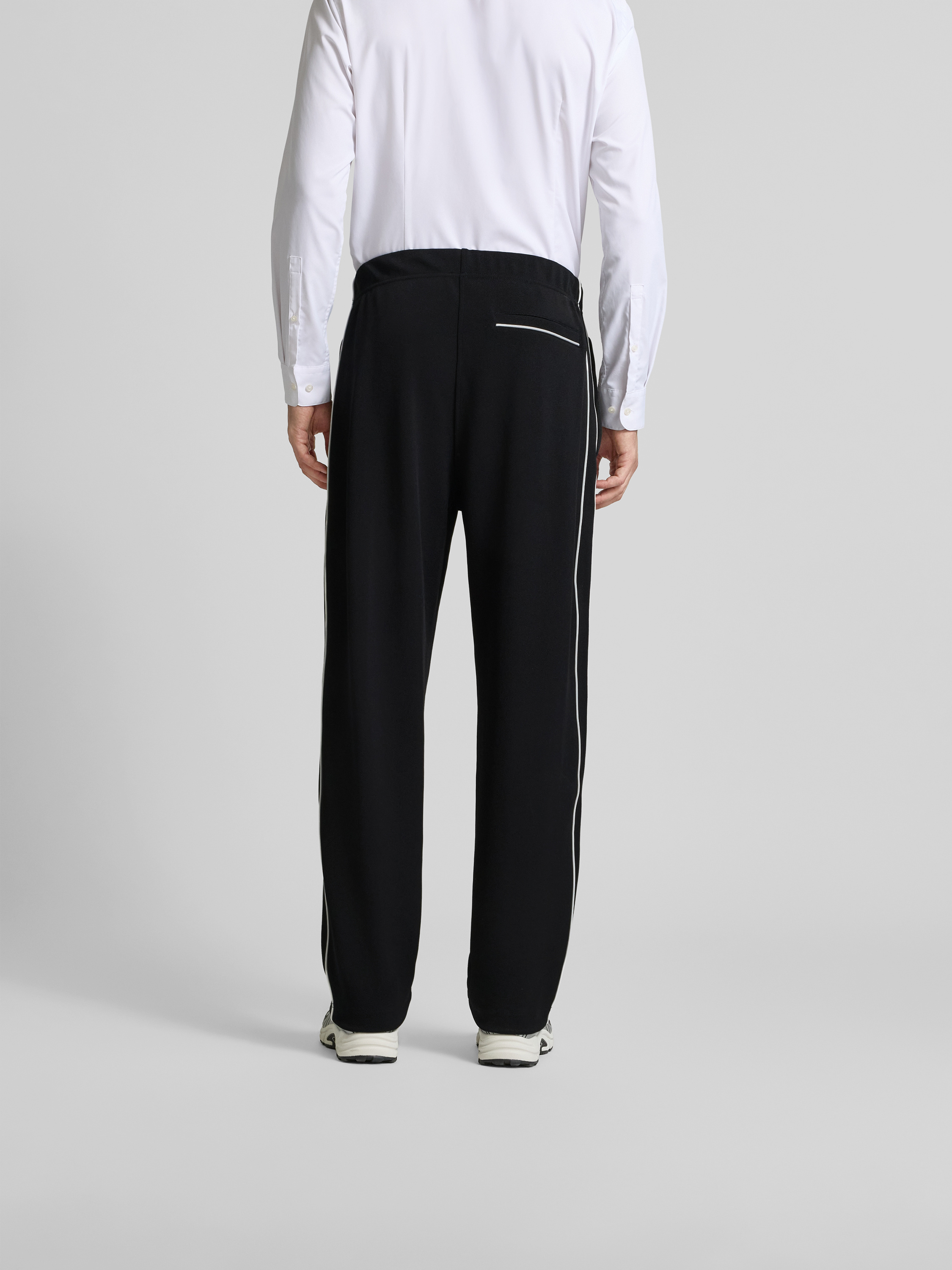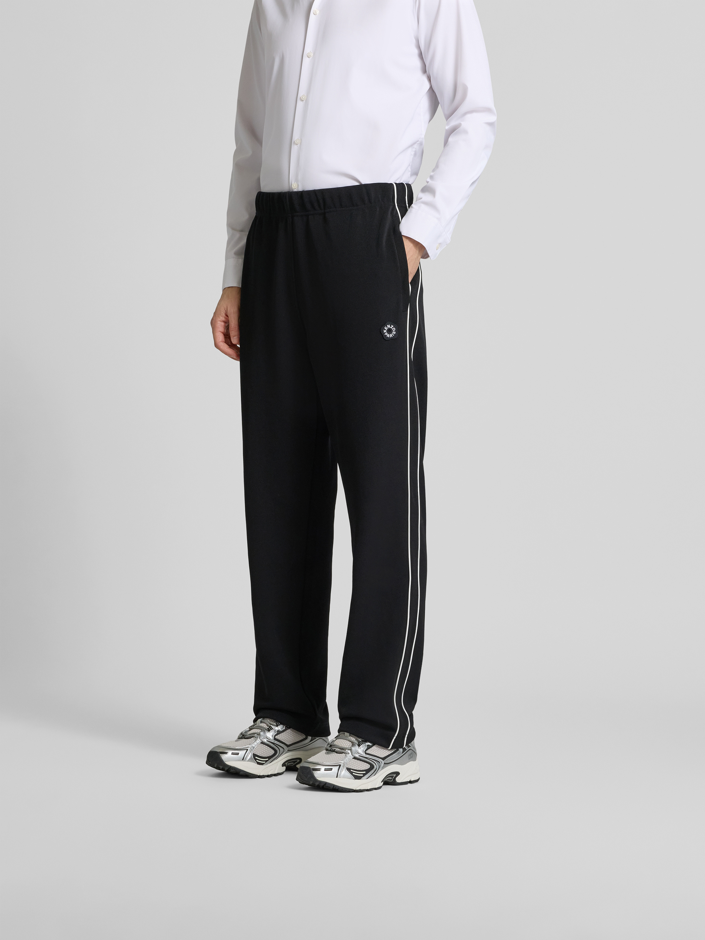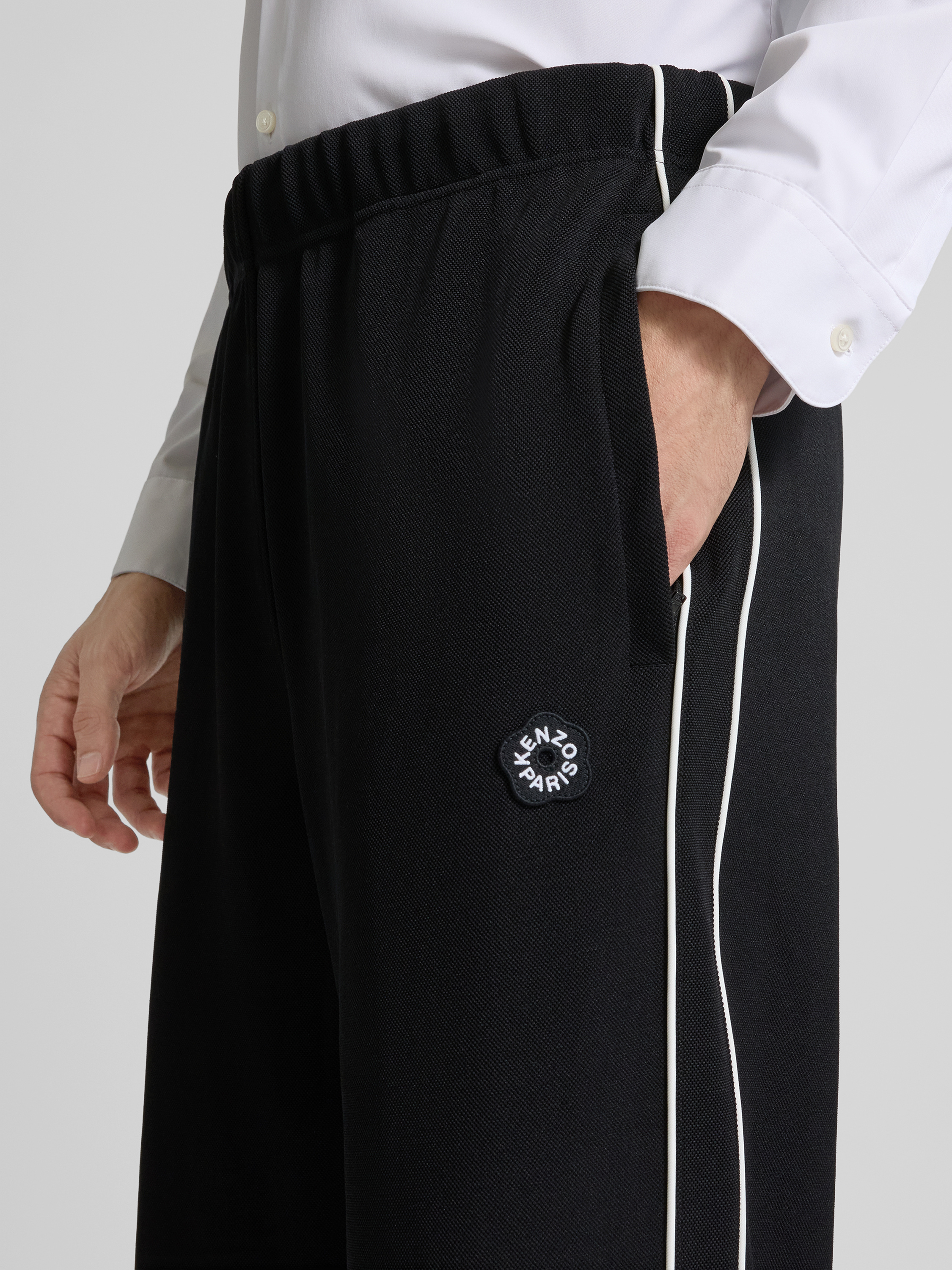 Die Herren Hose von Kenzo zeigt sich im Regular Fit und sitzt durch den elastischen Material-Mix angenehm flexibel. Ein Label-Patch setzt einen dezenten Akzent, während die Gesäßtasche praktische Details ergänzt. Dank elastischem Bund lässt sich die Hose unkompliziert kombinieren.