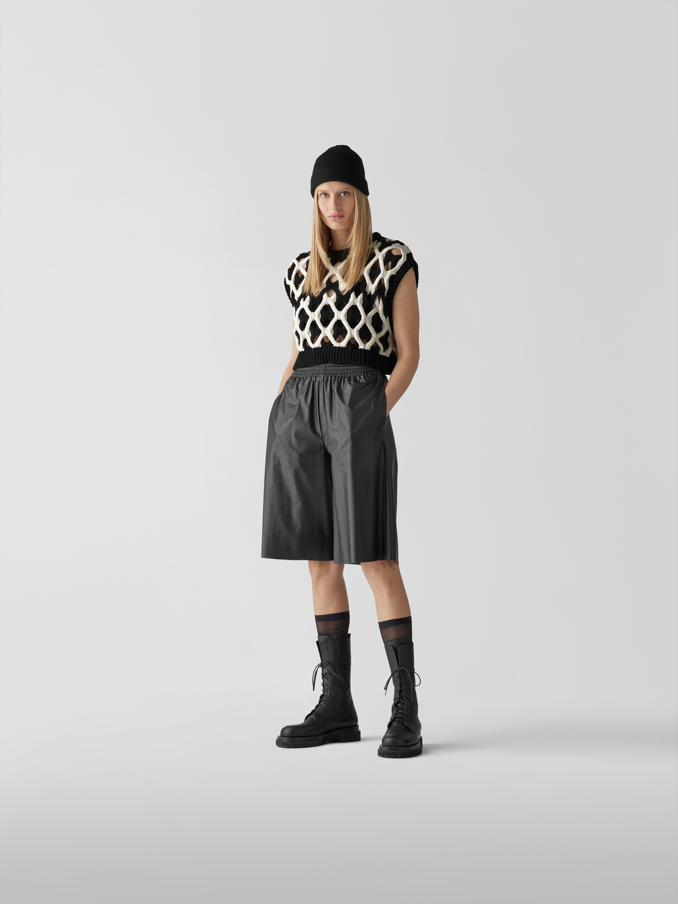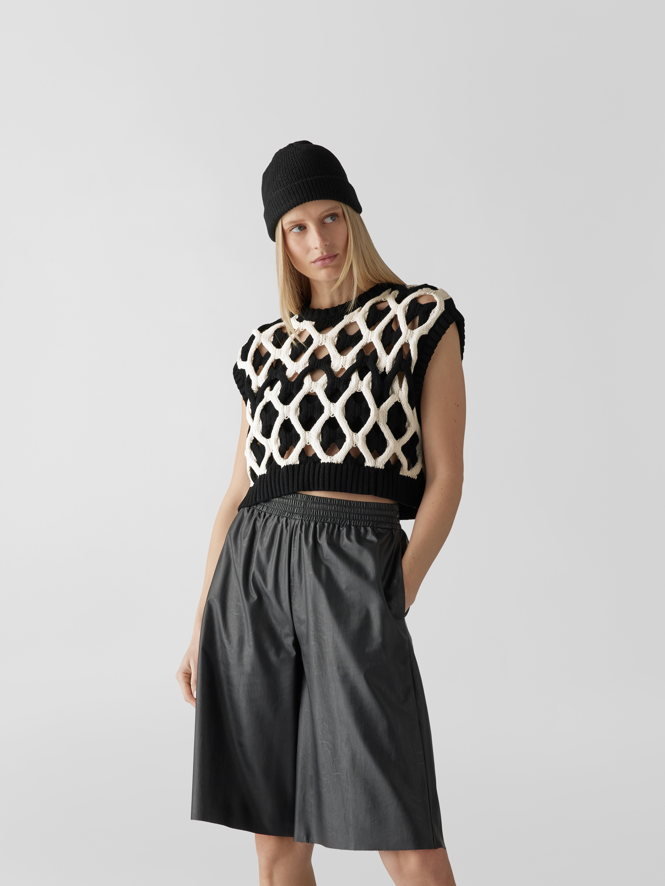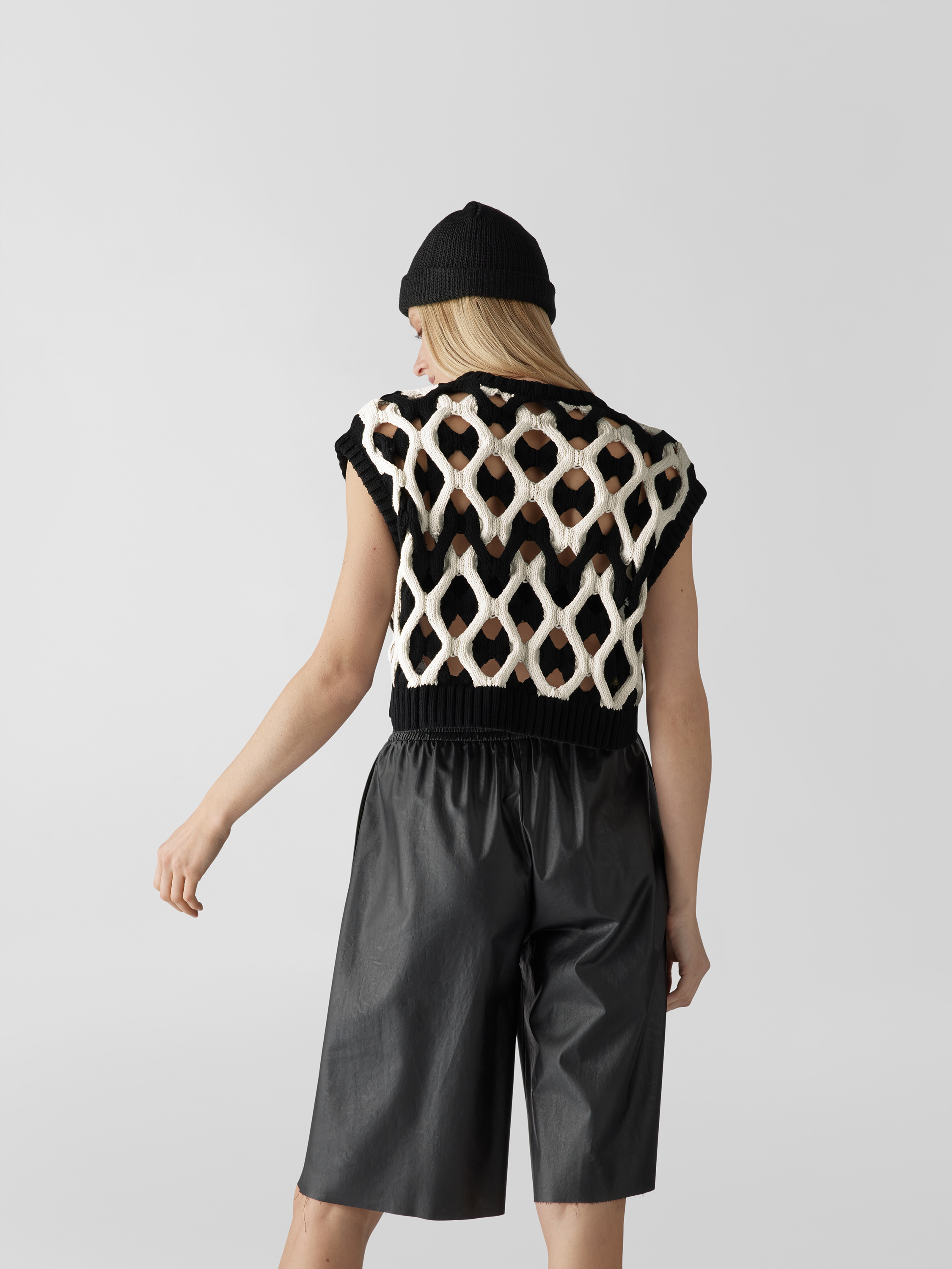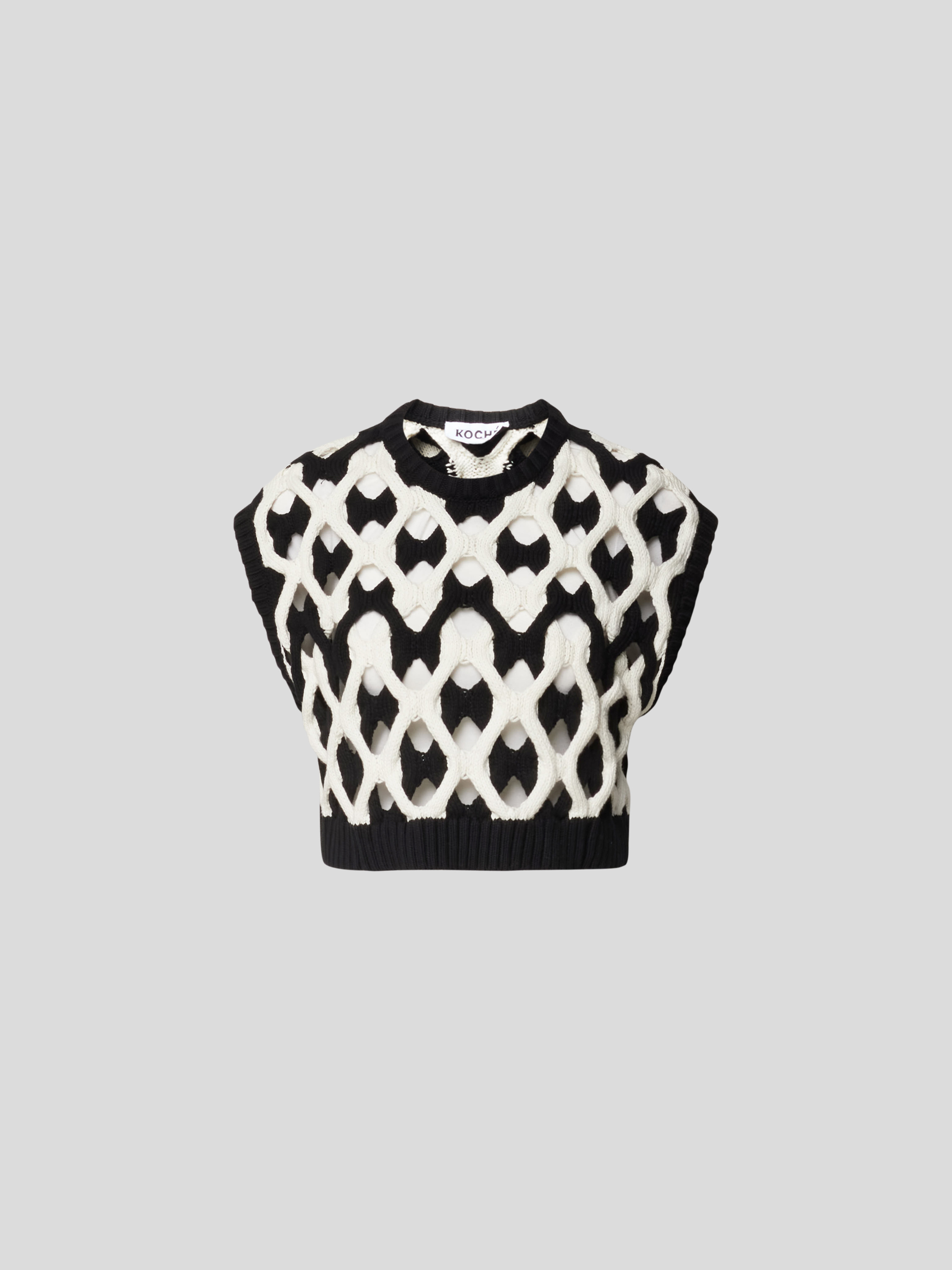 Der Damen Pullunder von Kochè aus reiner Baumwolle fällt durch das moderne, verkürzte Design und das markante Lochmuster auf. Durch die lockere Passform entsteht eine angenehme Bewegungsfreiheit, wodurch sich das Modell vielseitig kombinieren lässt. In Strick-Optik gehalten, wirkt das Kleidungsstück angenehm leicht.