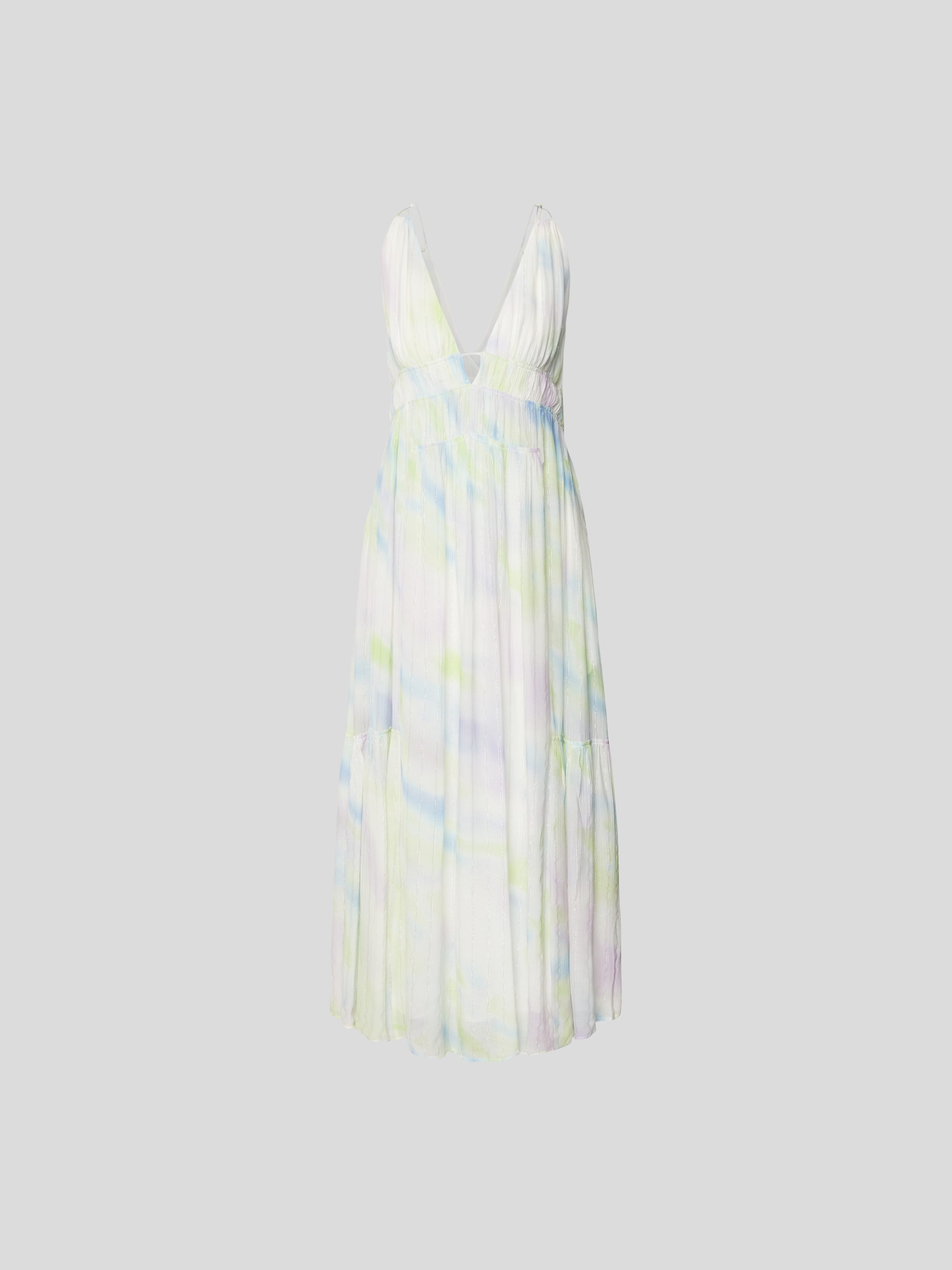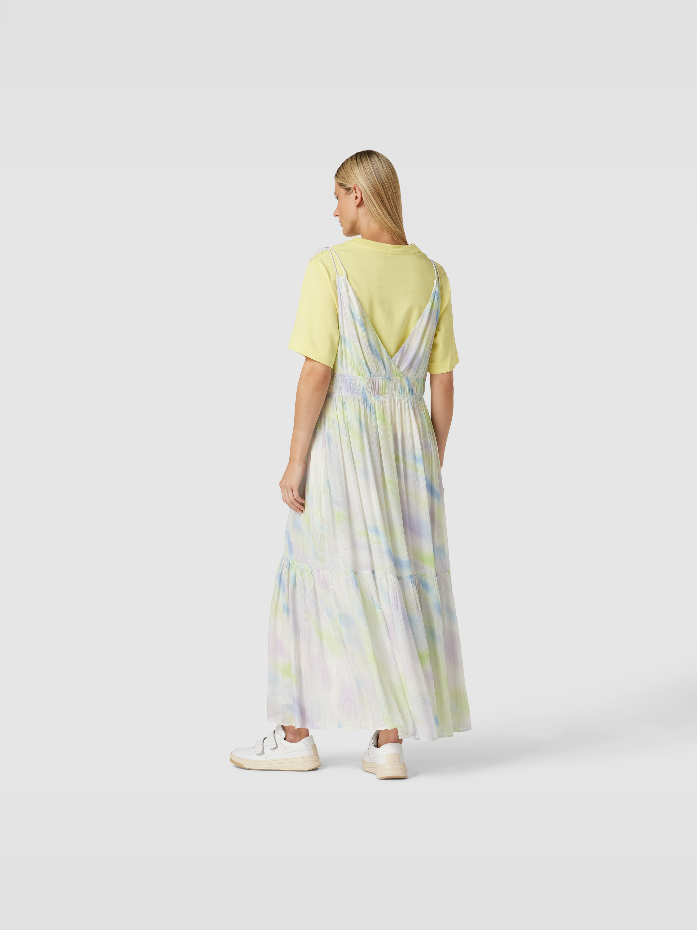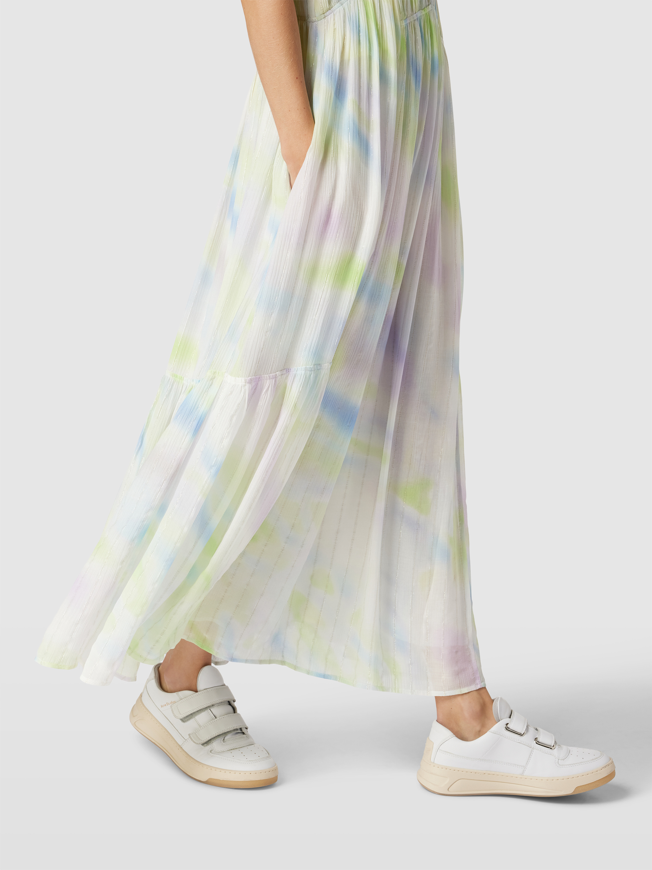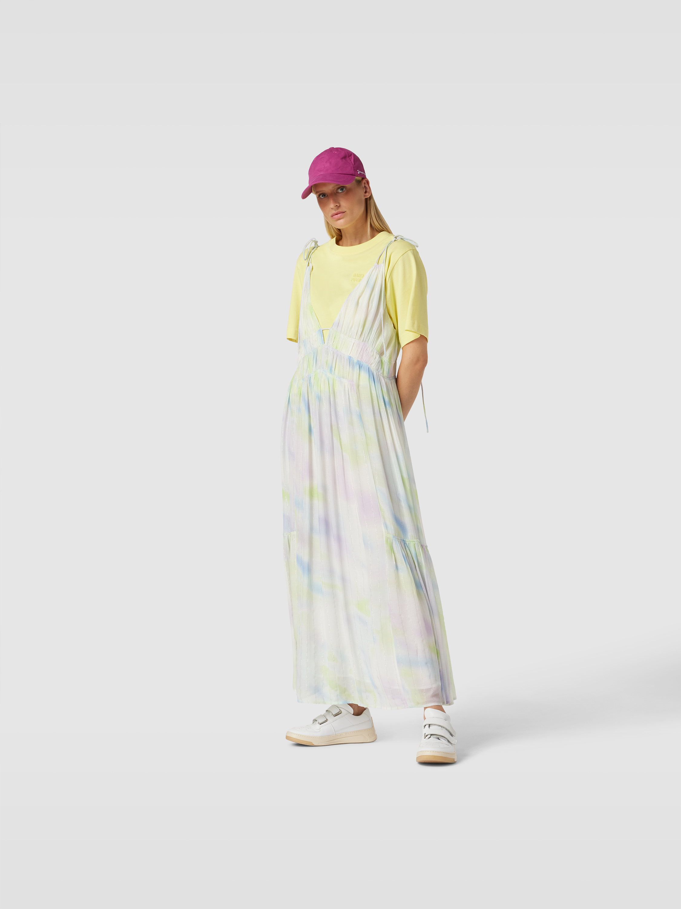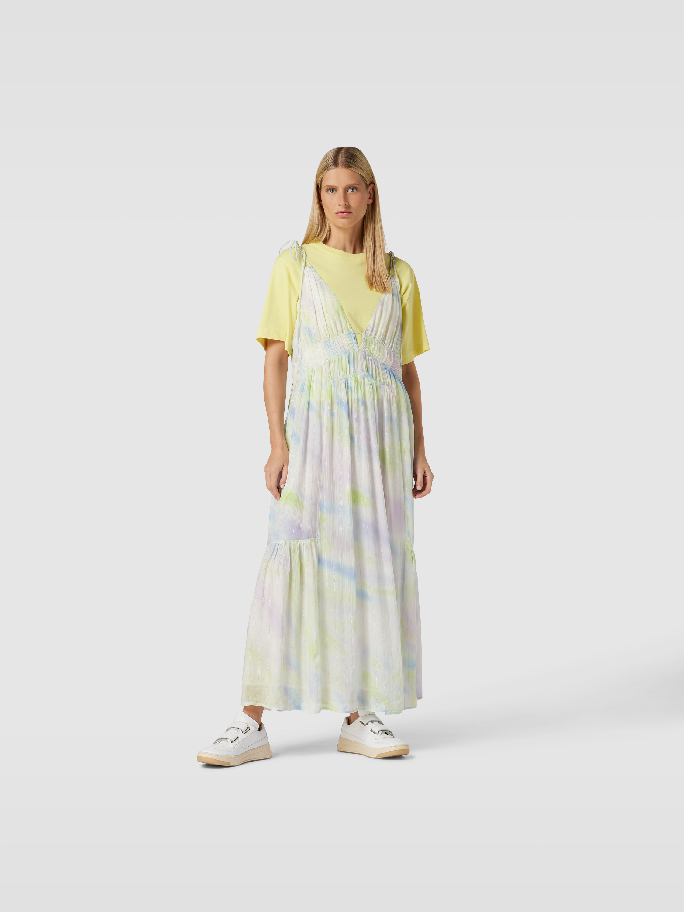 Das Damen Maxikleid von lala Berlin verbindet einen fließenden Viskose-Mix mit Seide-Anteil und sorgt so für ein angenehm leichtes Tragegefühl. Durch die lockere Passform und das ärmellose Design eignet sich das Maxikleid mit Allover-Muster besonders für warme Tage. Der V-Ausschnitt unterstreicht den femininen Look, während das Muster dem Outfit eine individuelle Note verleiht.