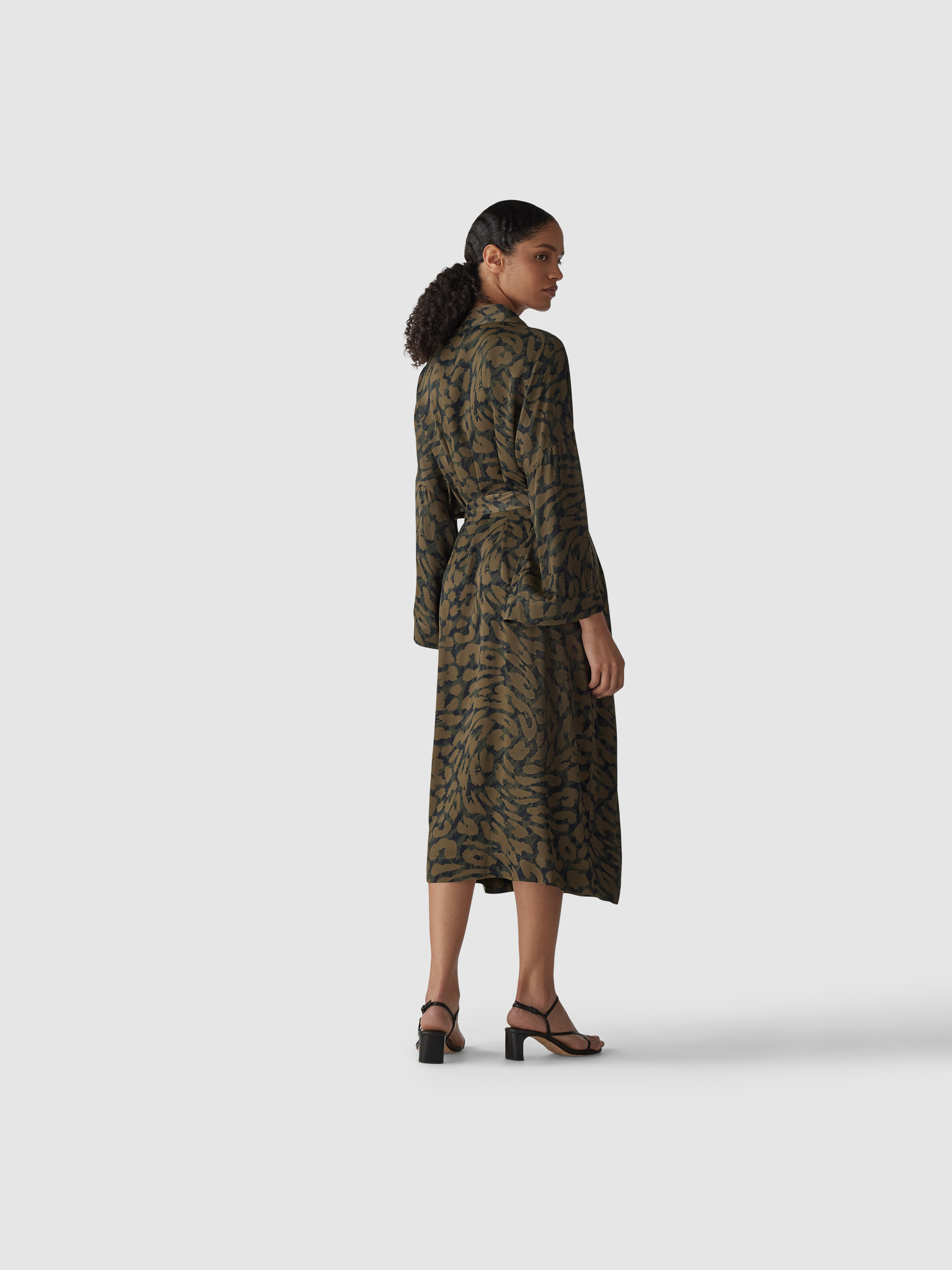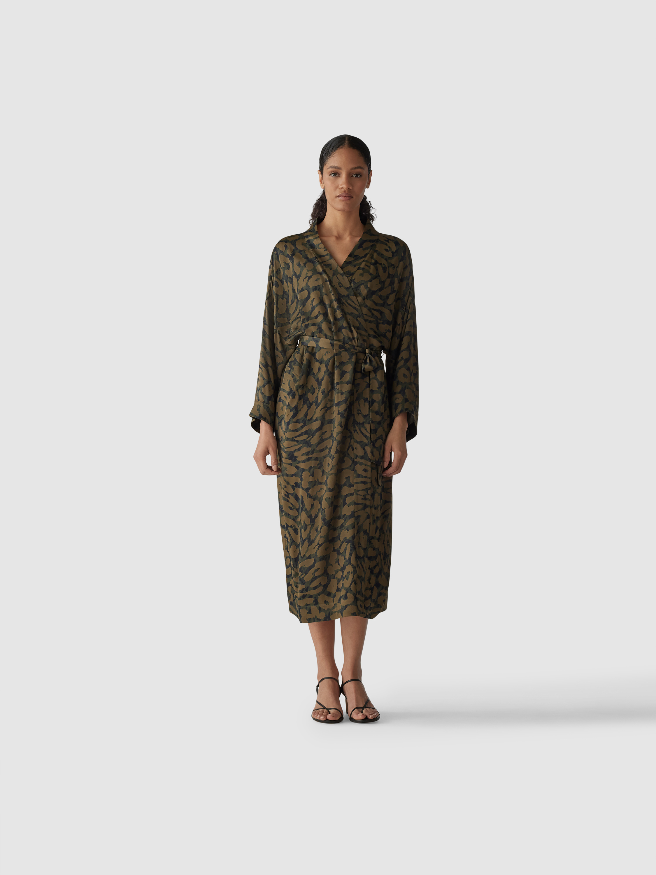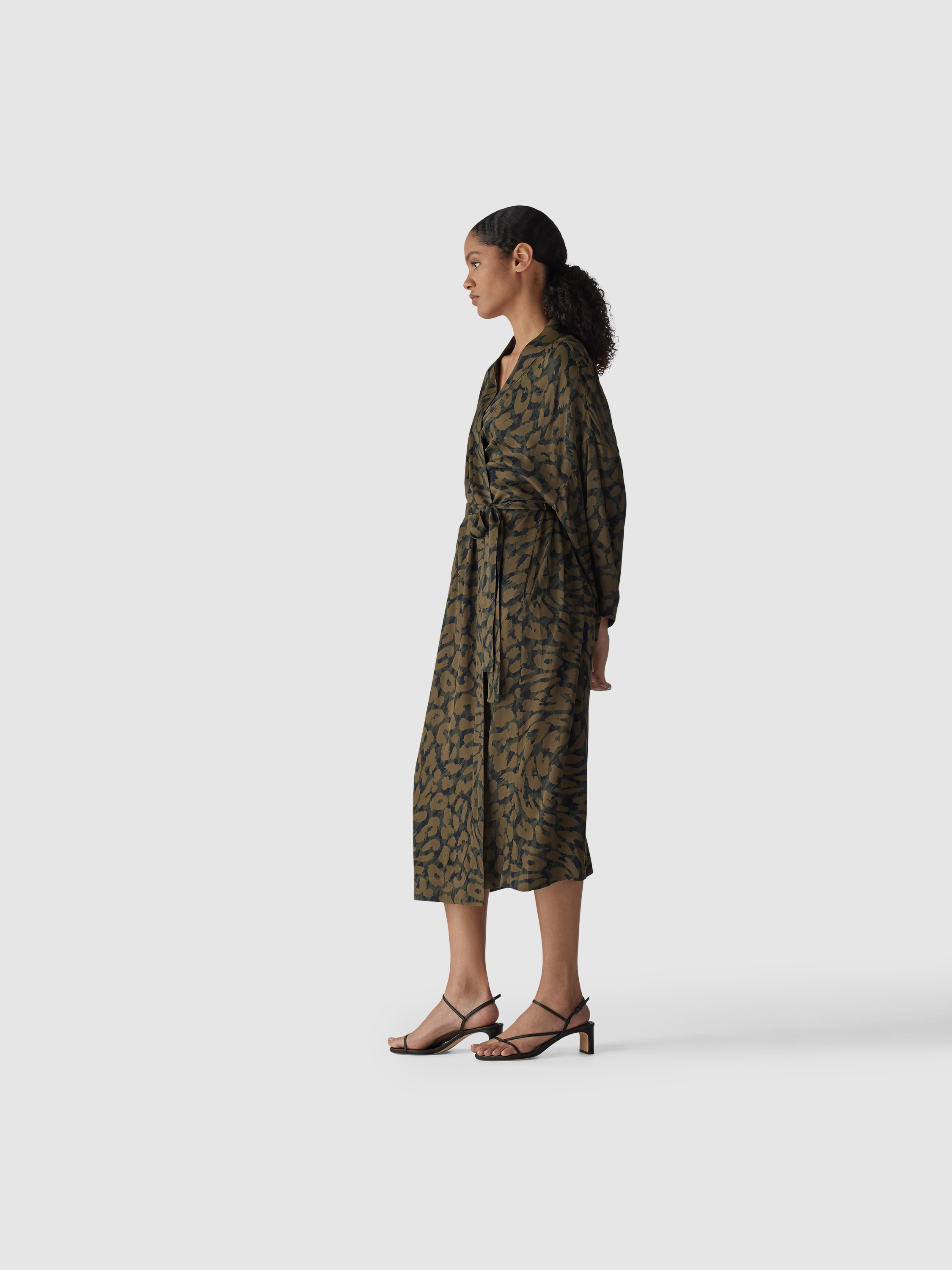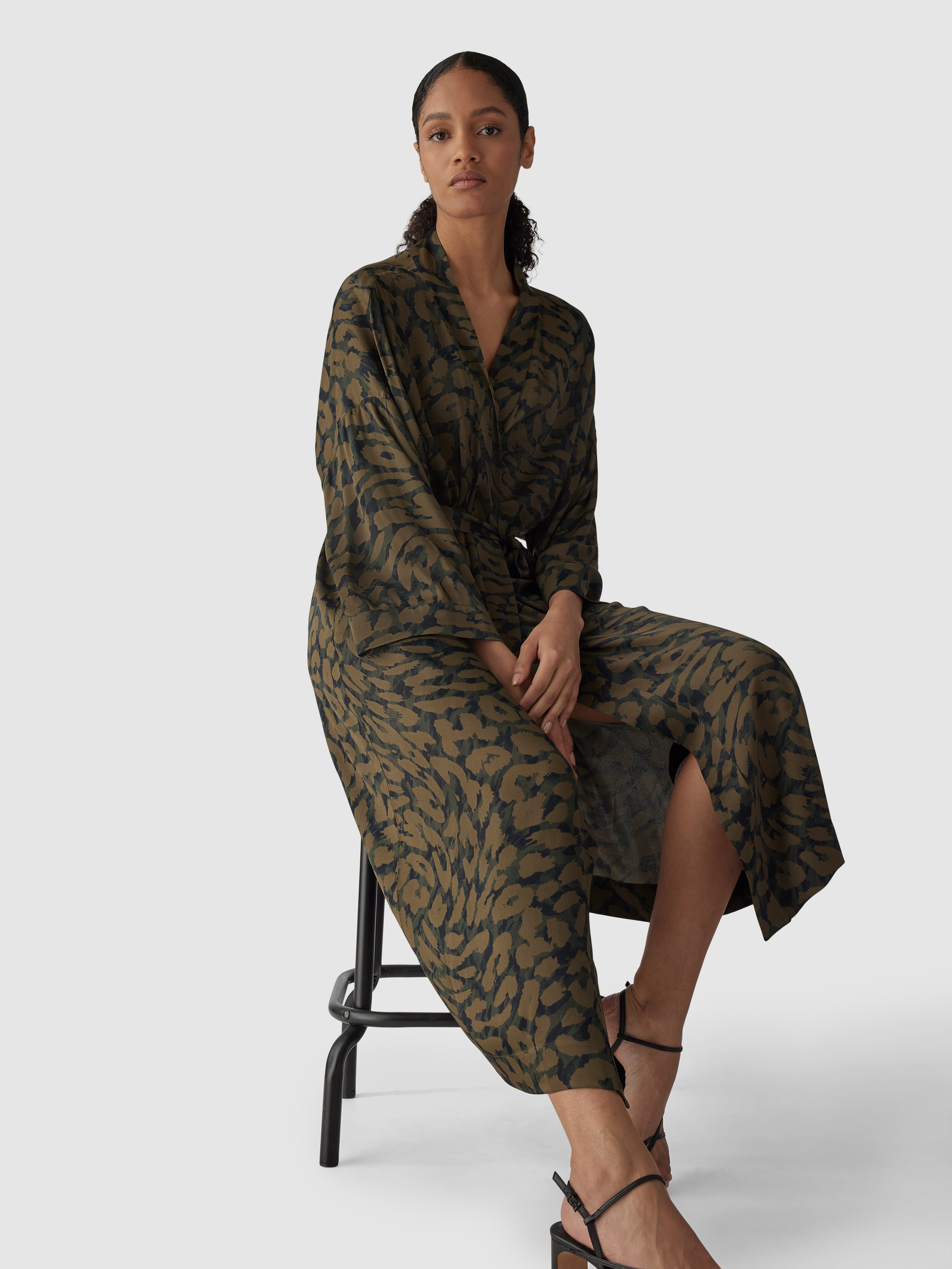 Das Damen Wickelkleid von lala Berlin zeigt sich in Midilänge mit taillierter Silhouette und langem Arm. Die leichte Viskose sorgt für ein angenehmes Tragegefühl, während der Bindegürtel Bewegungsfreiheit schafft. So lässt sich der Stil unkompliziert dem eigenen Alltag anpassen.
