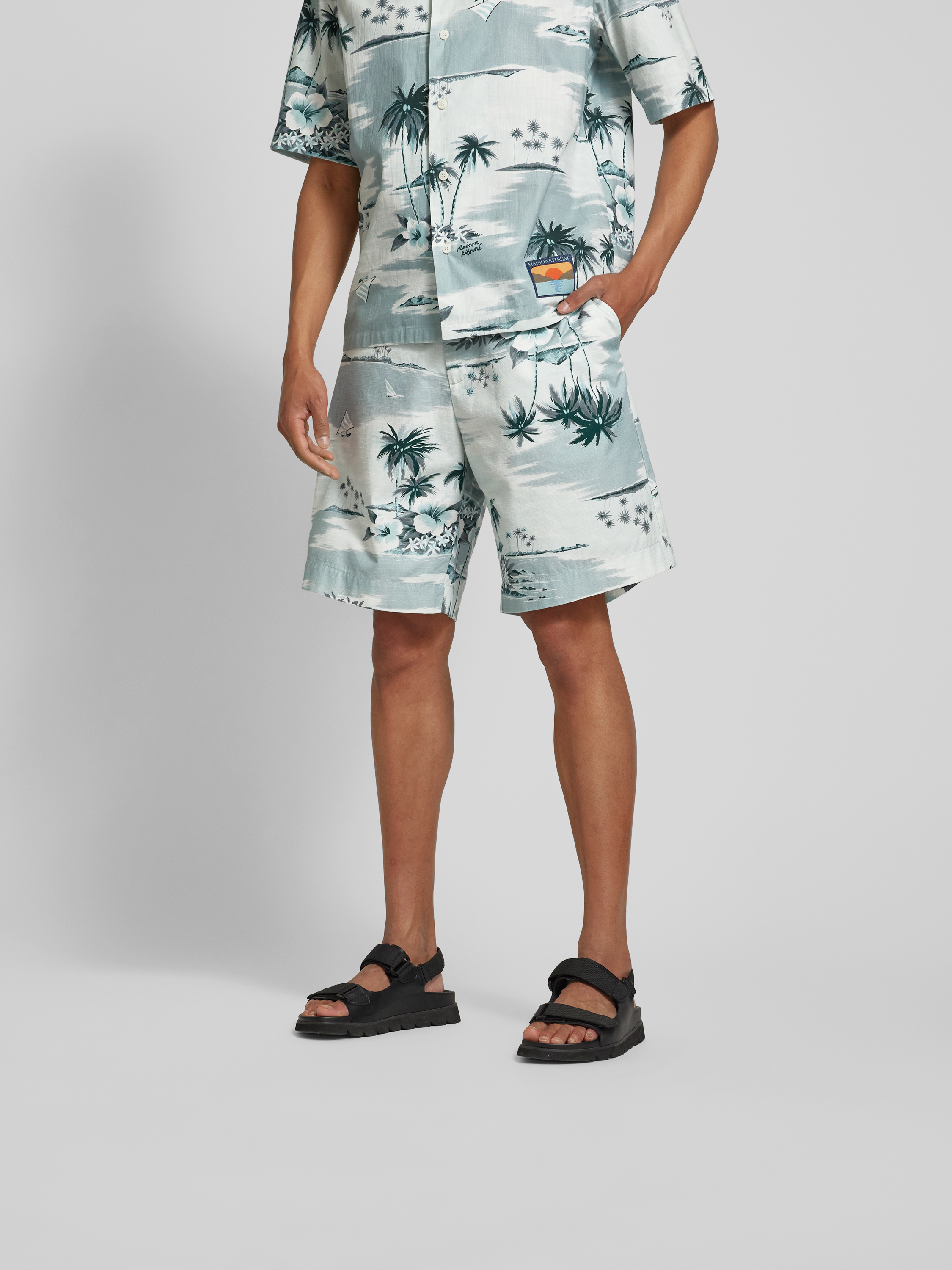 MAISON KITSUNÉShorts mit Allover-Print in hellgrau
