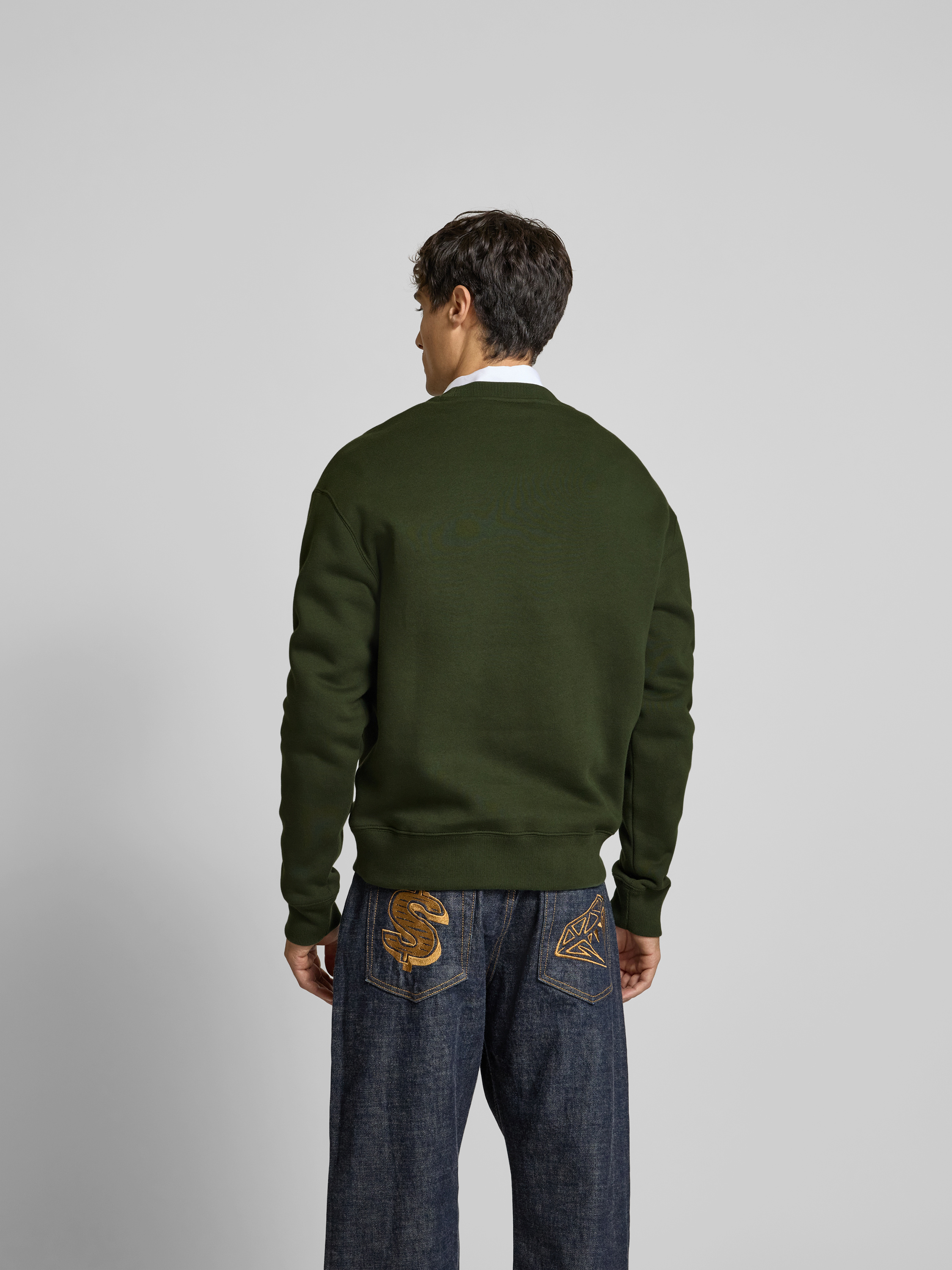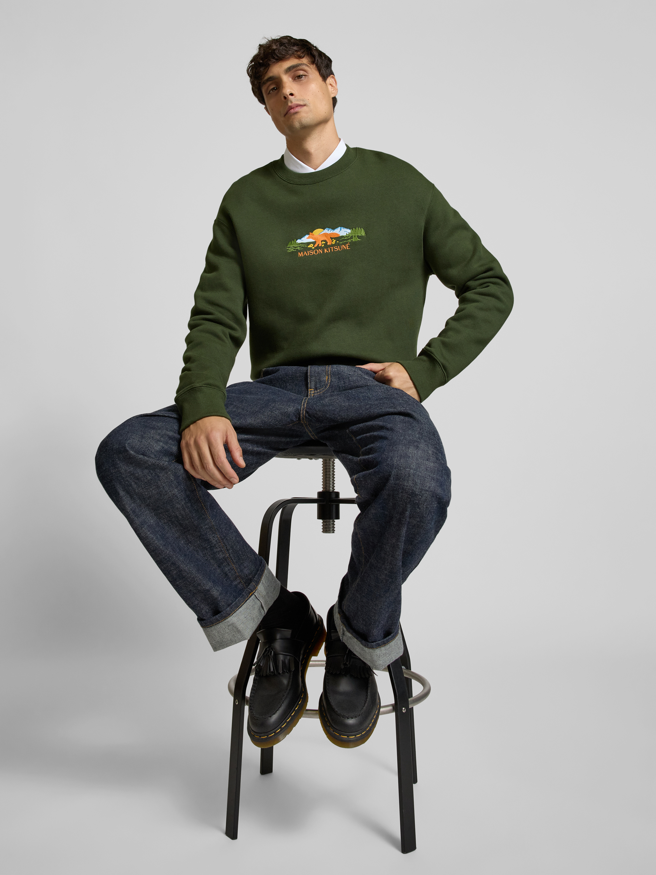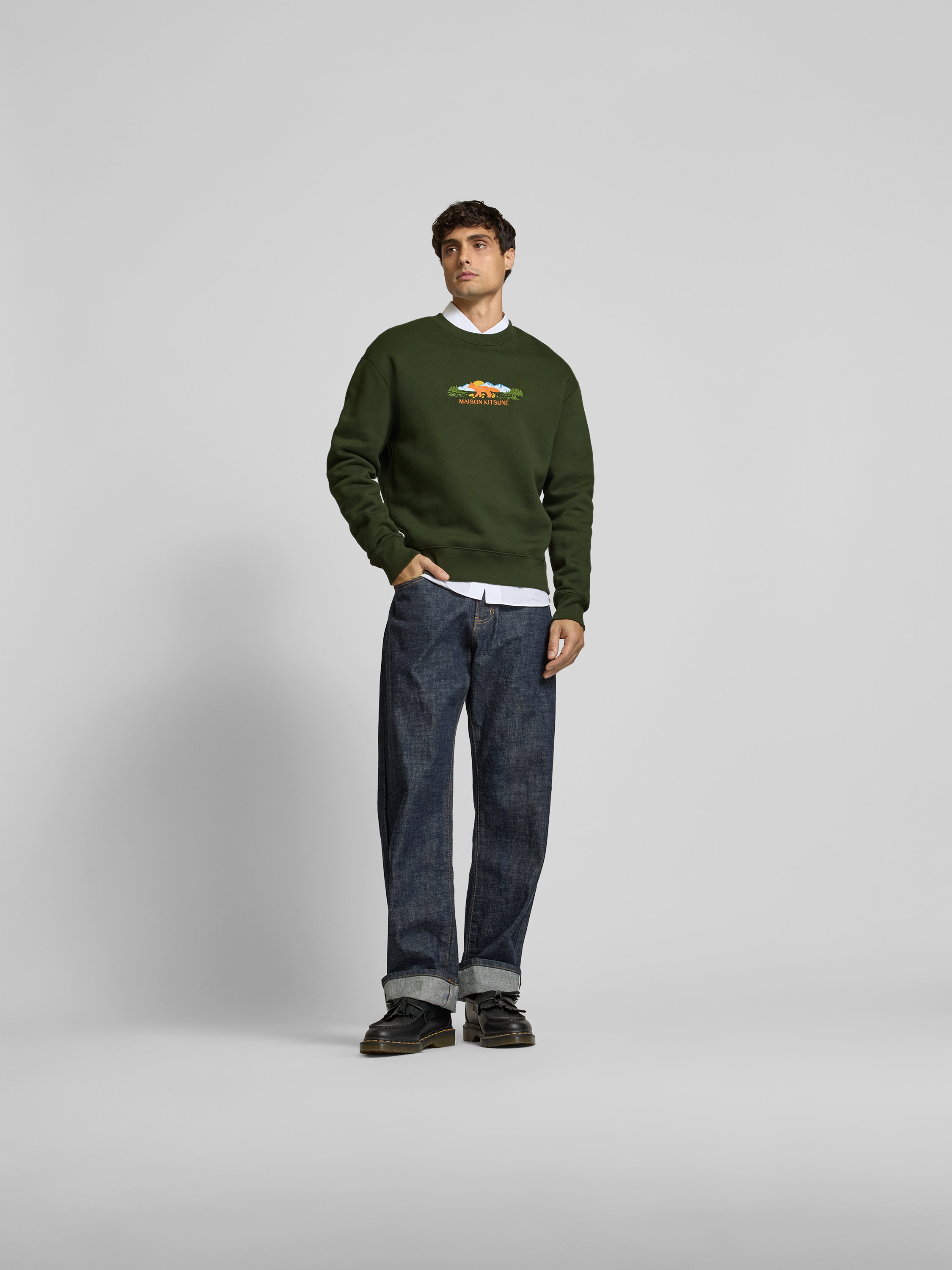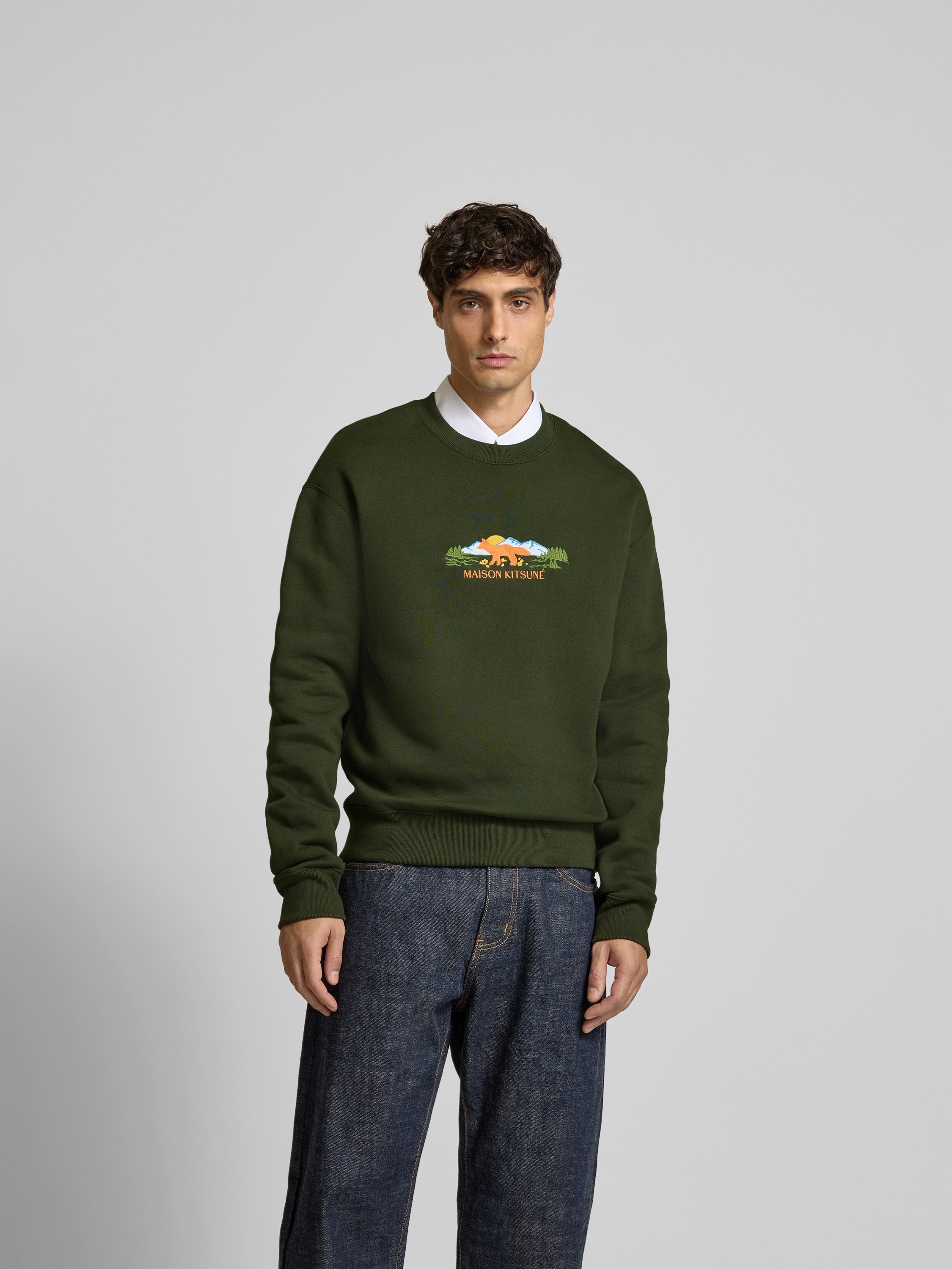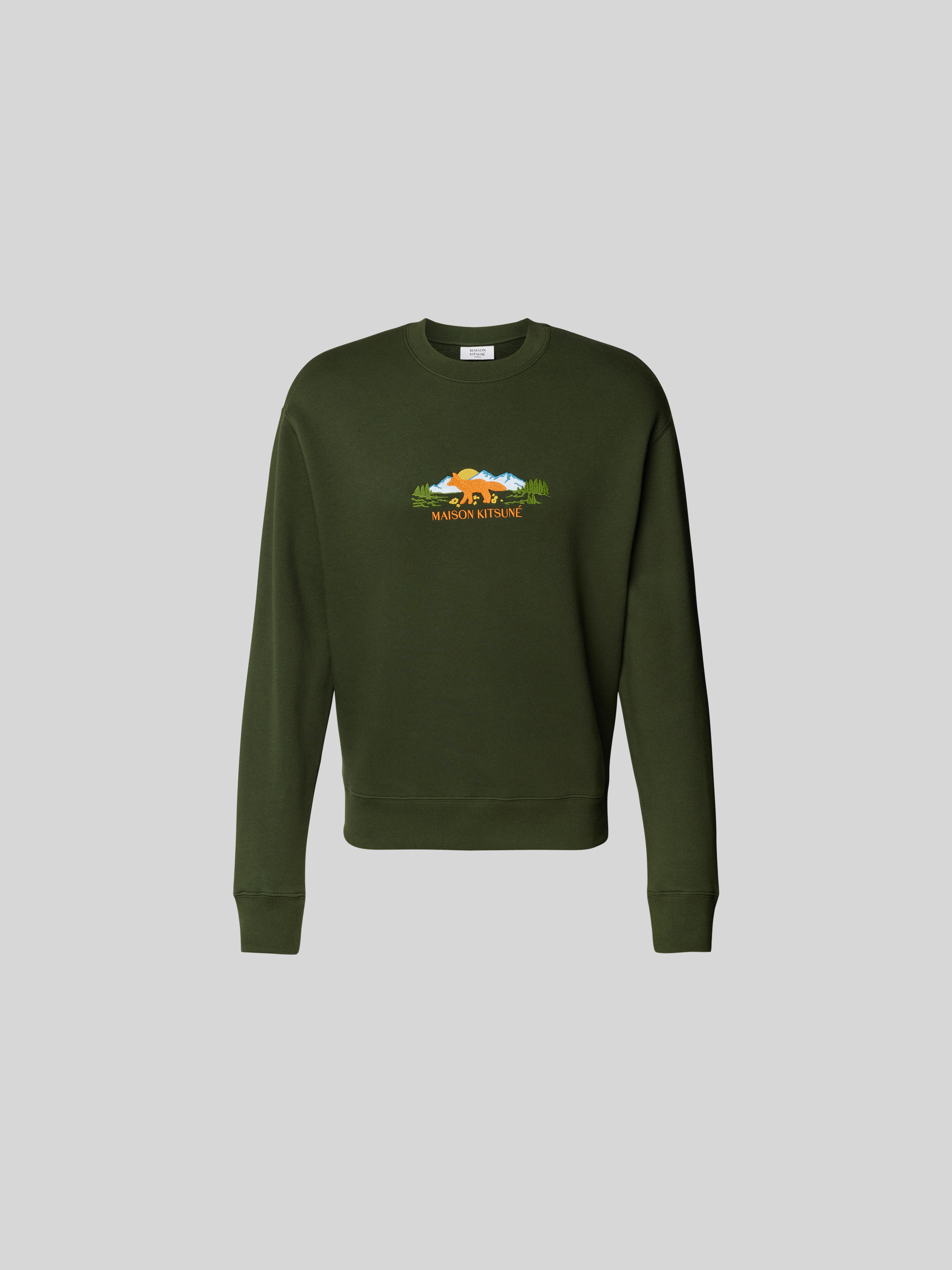 MAISON KITSUNÉT-Shirt mit Label-Stitching in dunkelgruen