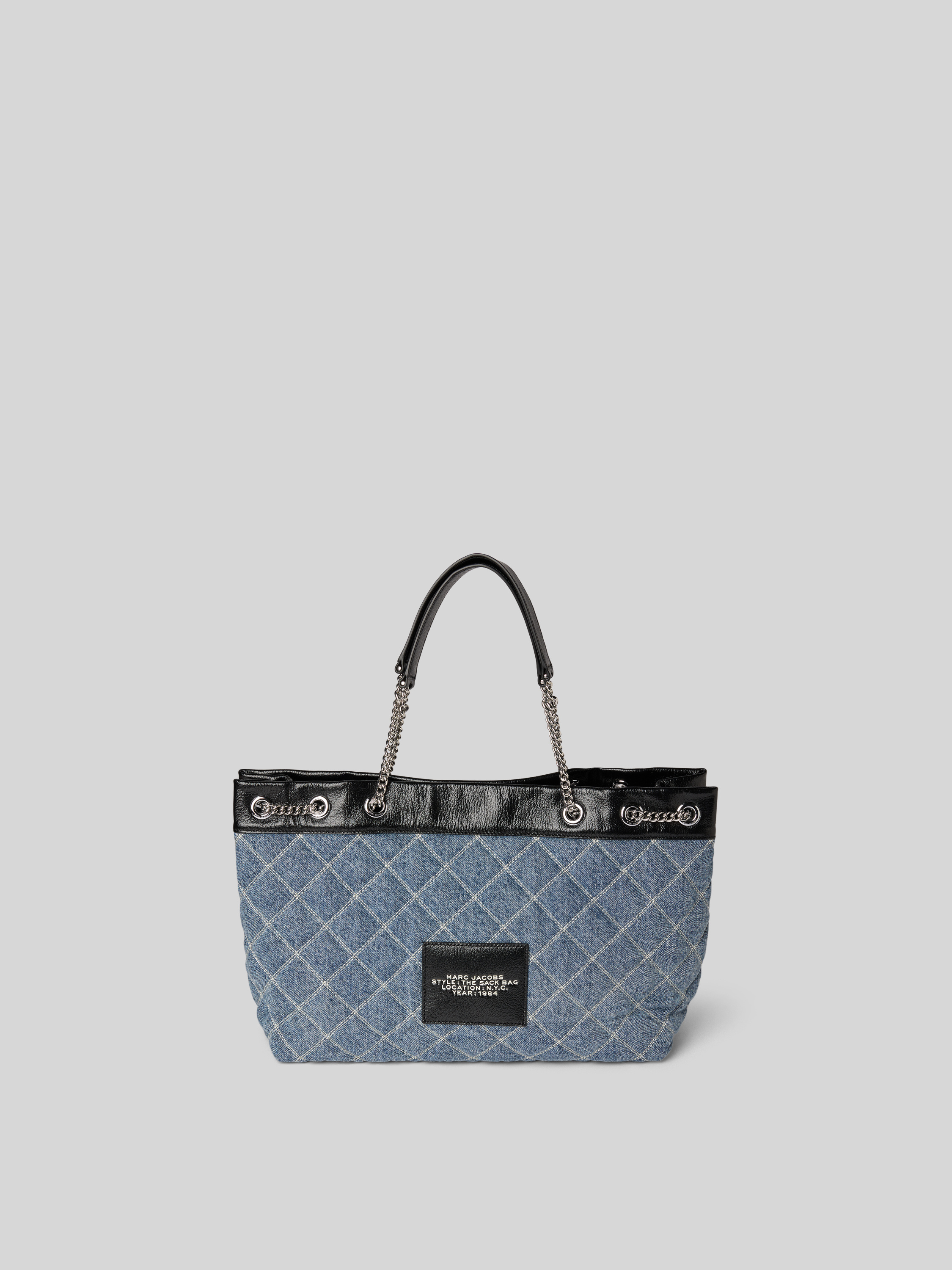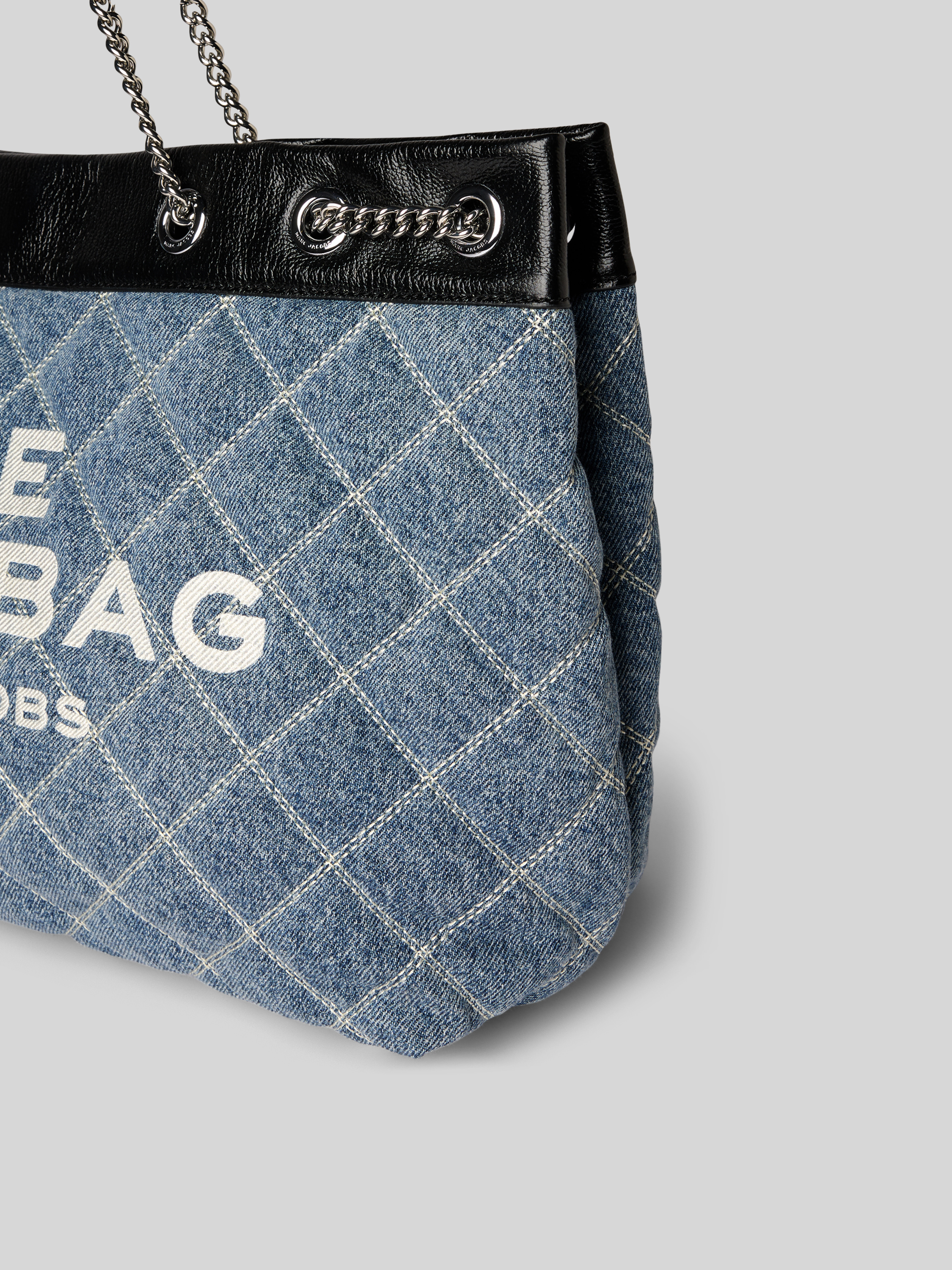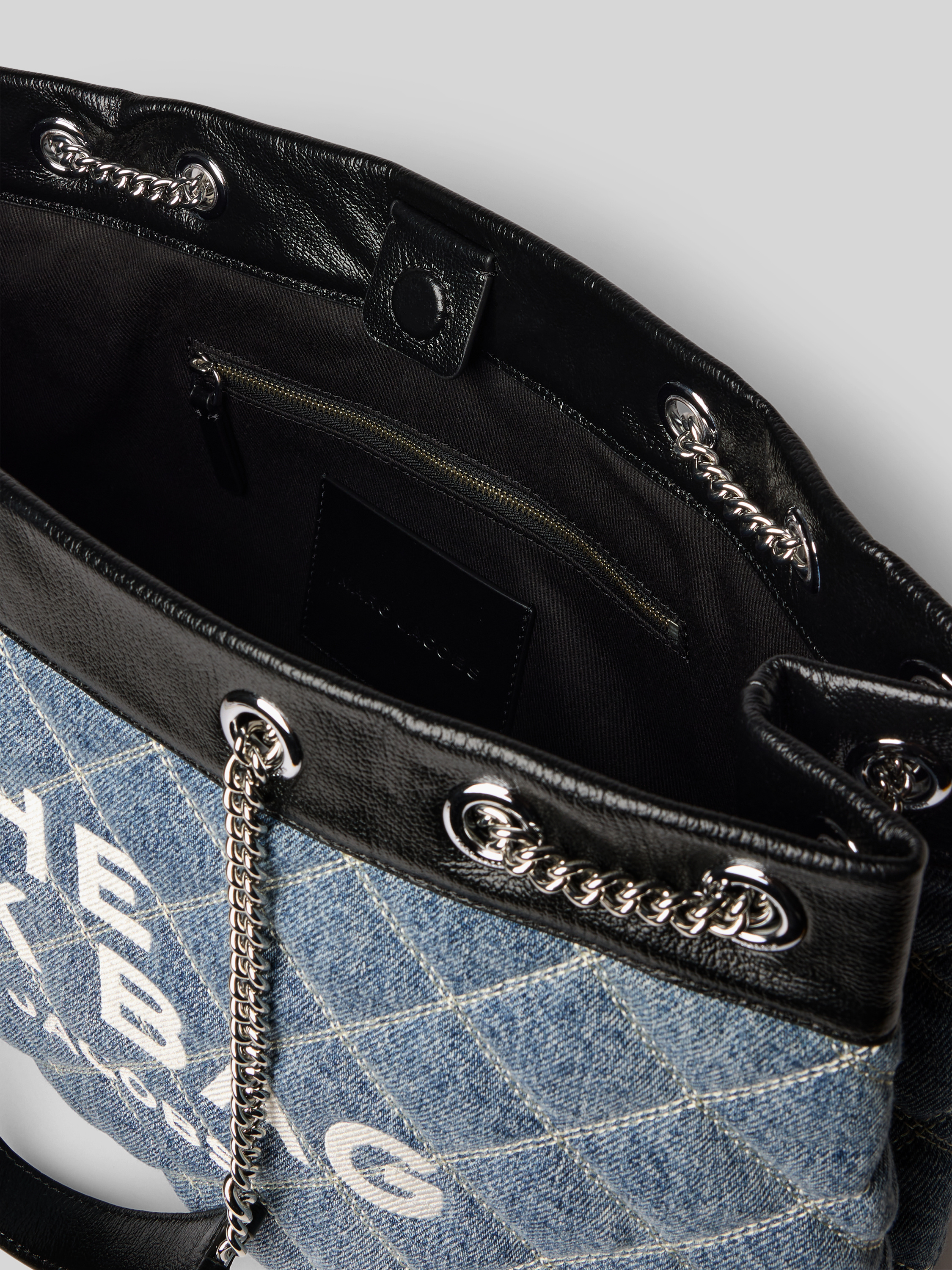 Der Marc Jacobs Shopper in Denim-Optik vereint stilvolle Funktionalität mit einem großzügigen Hauptfach, das durch einen praktischen Magnetverschluss ergänzt wird. Ein Schulterriemen mit Gliederketten sorgt für einen angenehmen Tragekomfort, während das Innenfach für zusätzliche Ordnungsmöglichkeiten sorgt. Ideal für den Alltagseinsatz.
