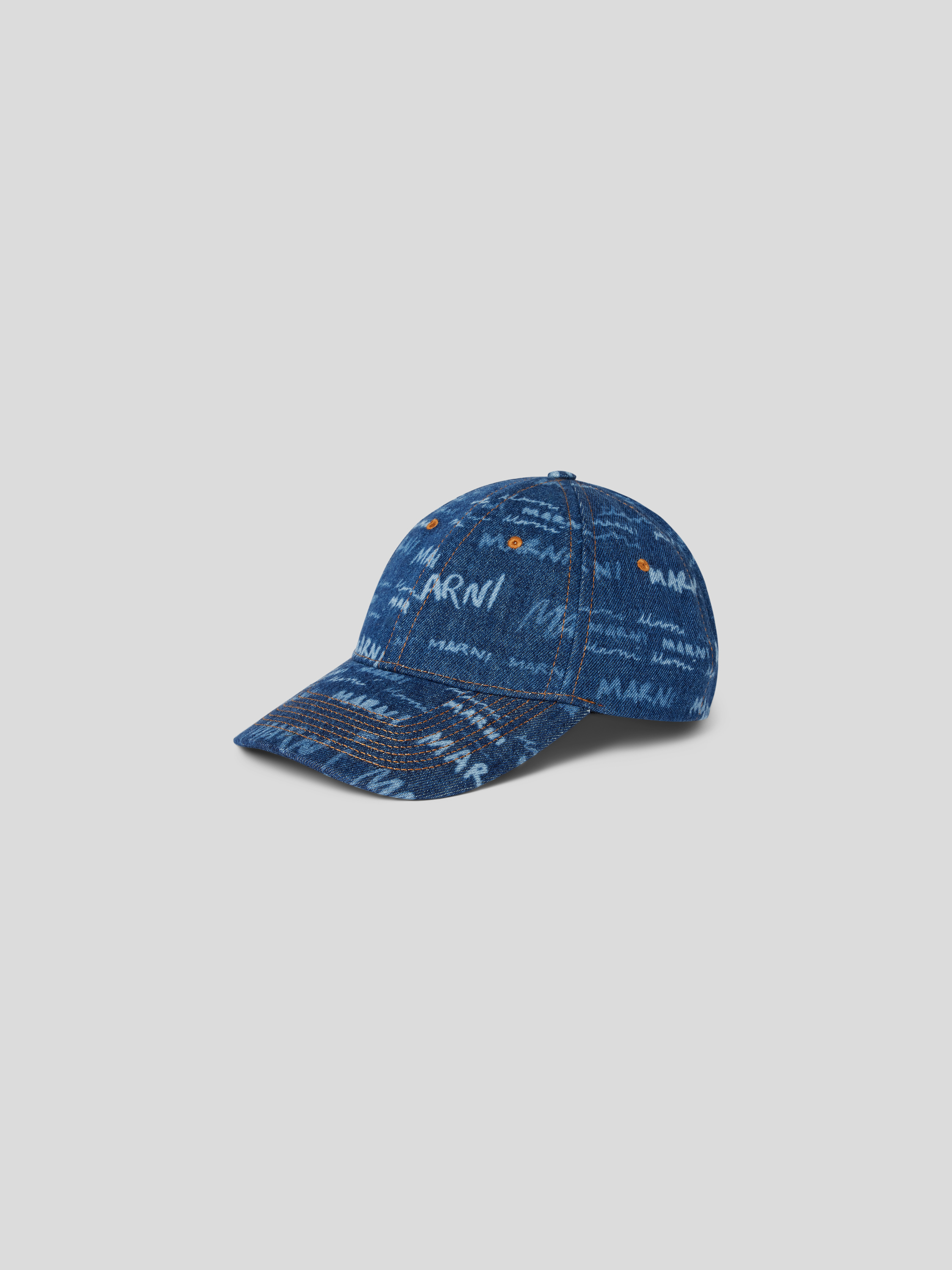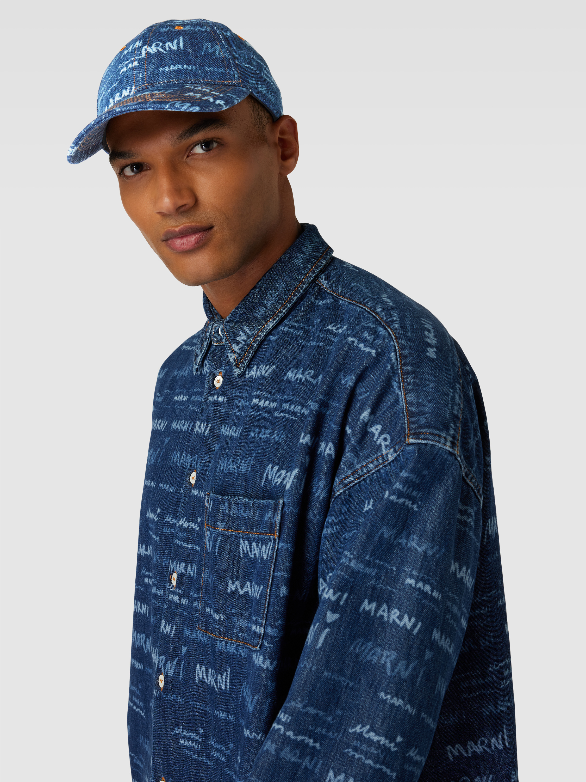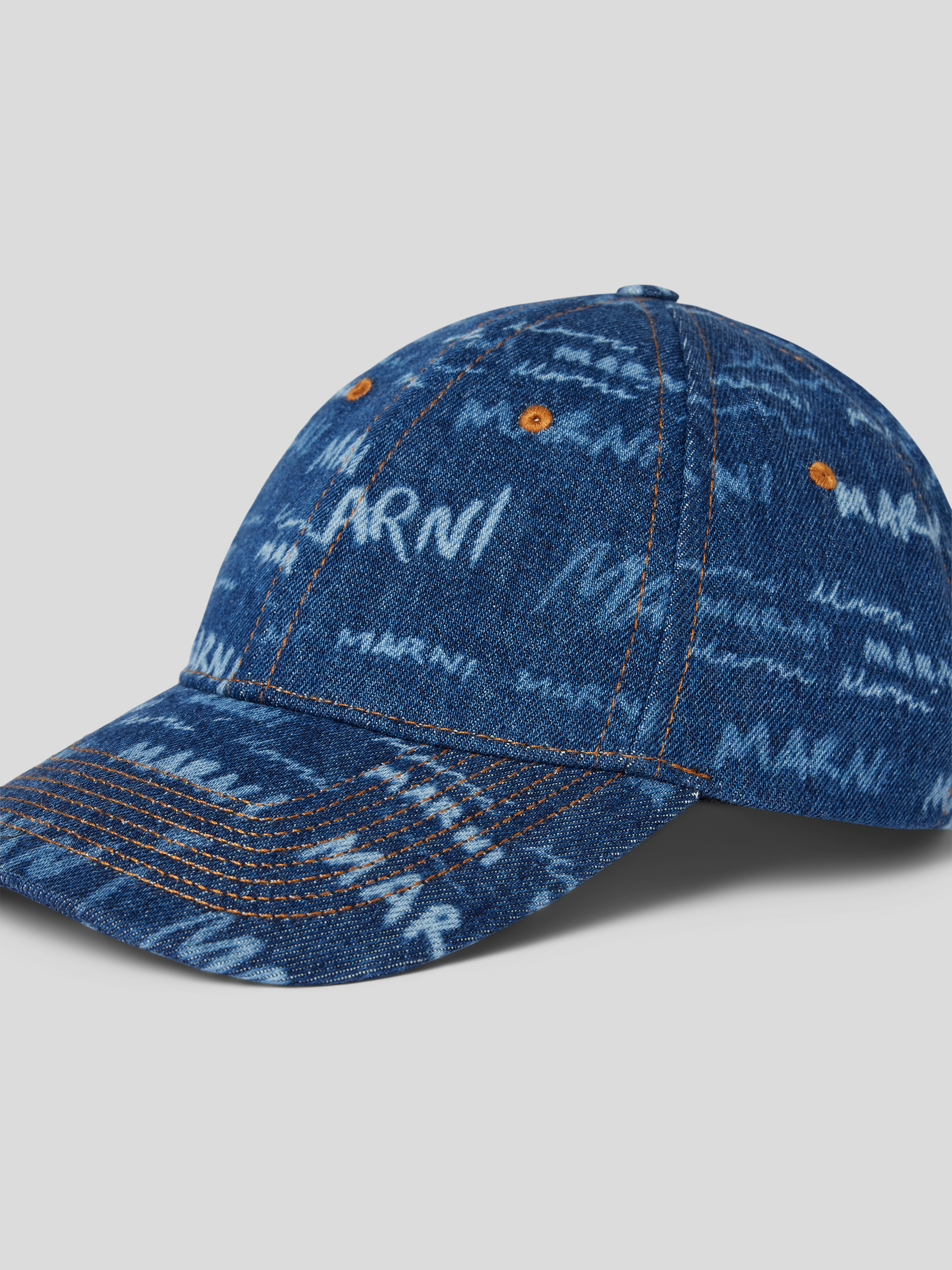 Die Herrencap von Marni zeigt sich im markanten Denim-Look und fällt durch ihren Allover-Logo-Print ins Auge. Dank reiner Baumwolle fühlt sie sich angenehm an und sorgt für ein leichtes Tragegefühl. Der verstärkte Schirm schützt zuverlässig, während der Riegel Anpassung ermöglicht.