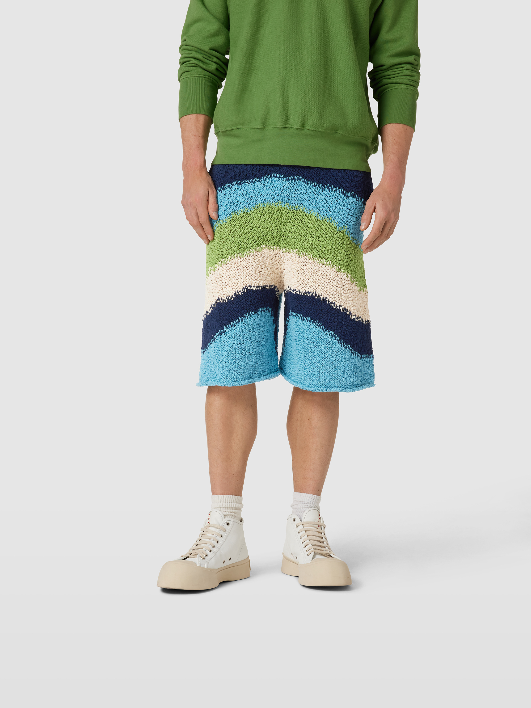 Die Herren Bermudas von Marni aus reiner Baumwolle zeichnen sich durch eine angenehm lockere Passform aus, die Bewegungsfreiheit ermöglicht. Das markante Streifenmuster in Strick-Optik sorgt für einen entspannten Look. Durch den flexiblen Bund sitzt die Shorts komfortabel und bleibt den ganzen Tag bequem.