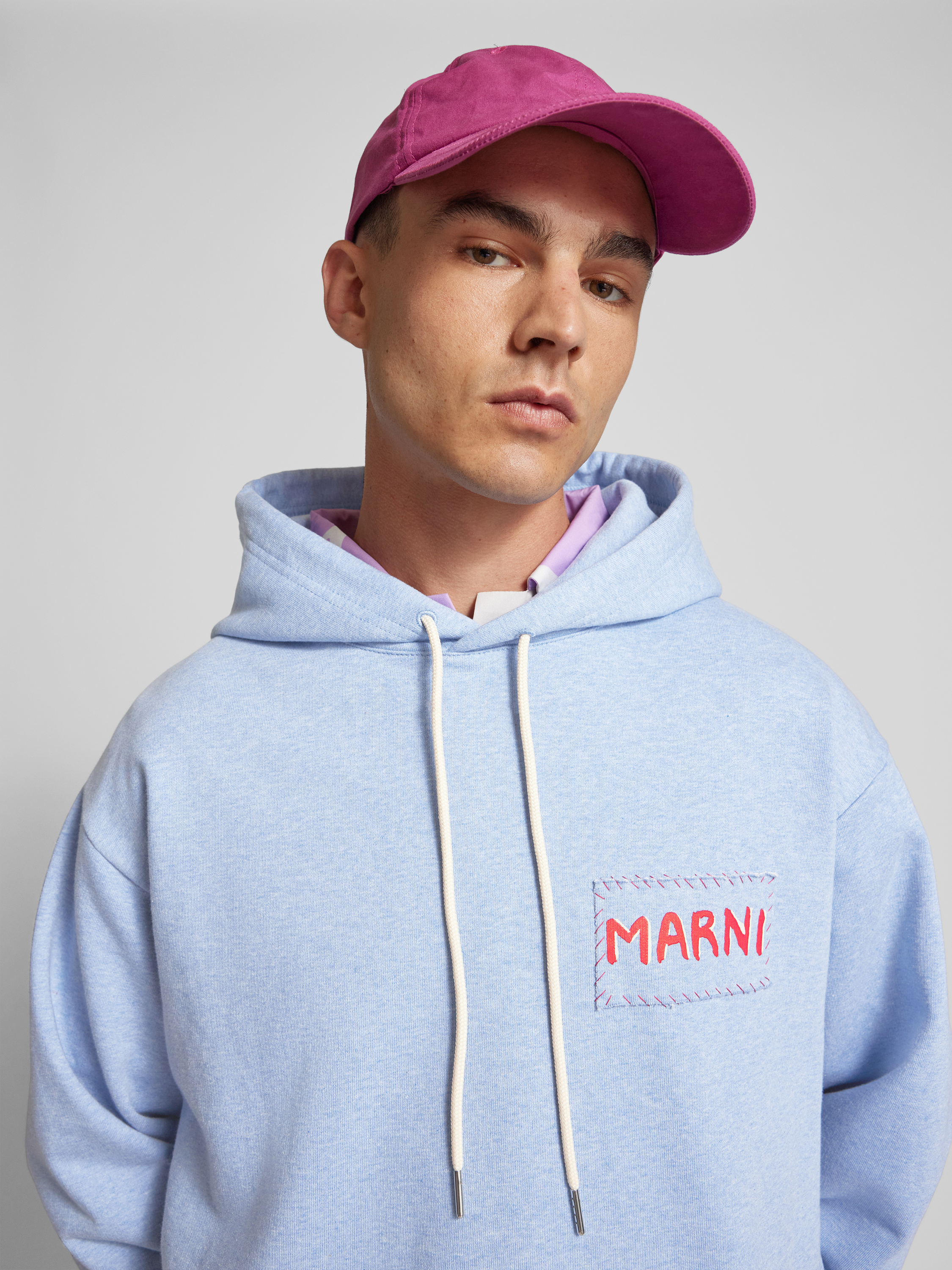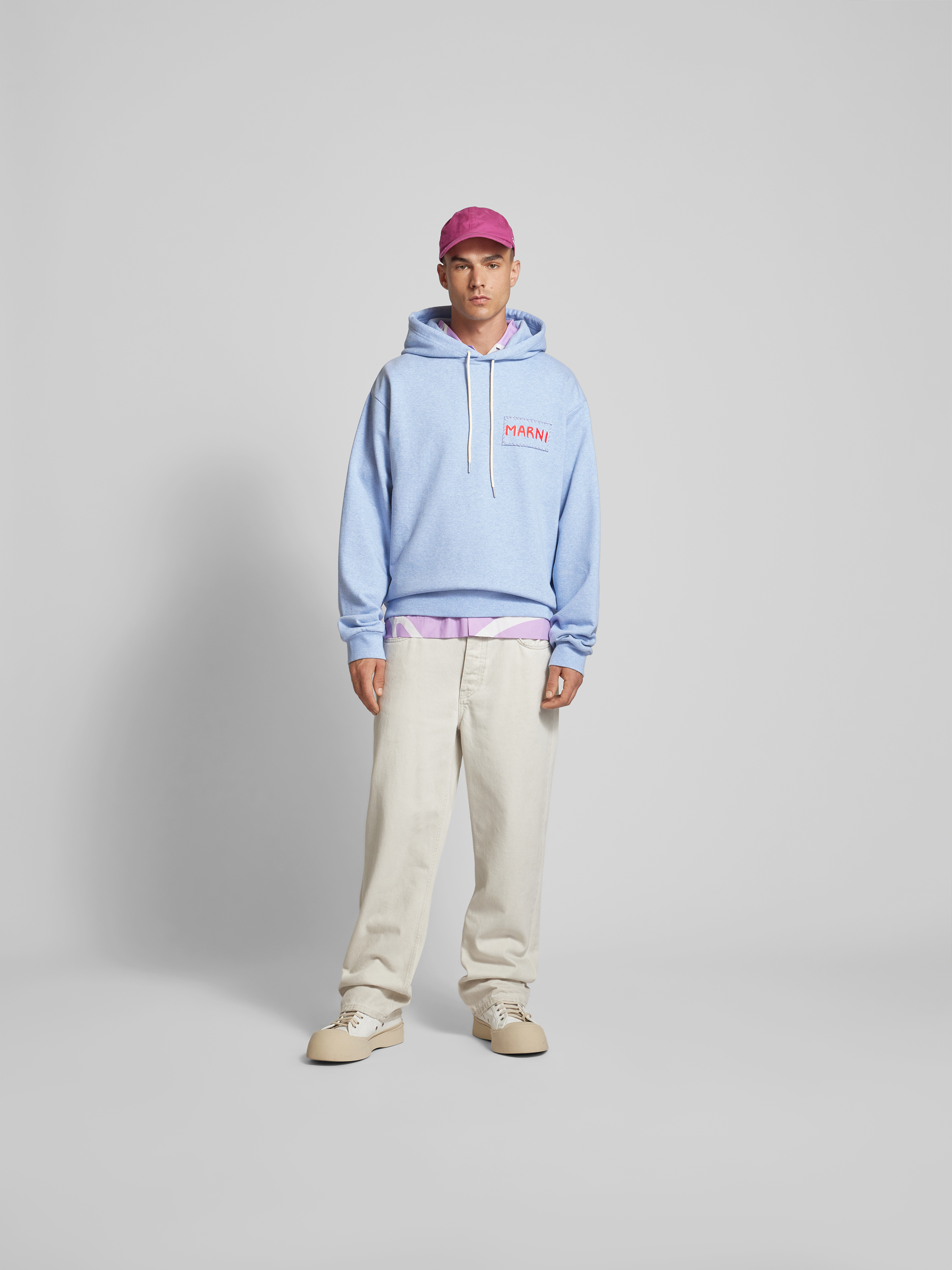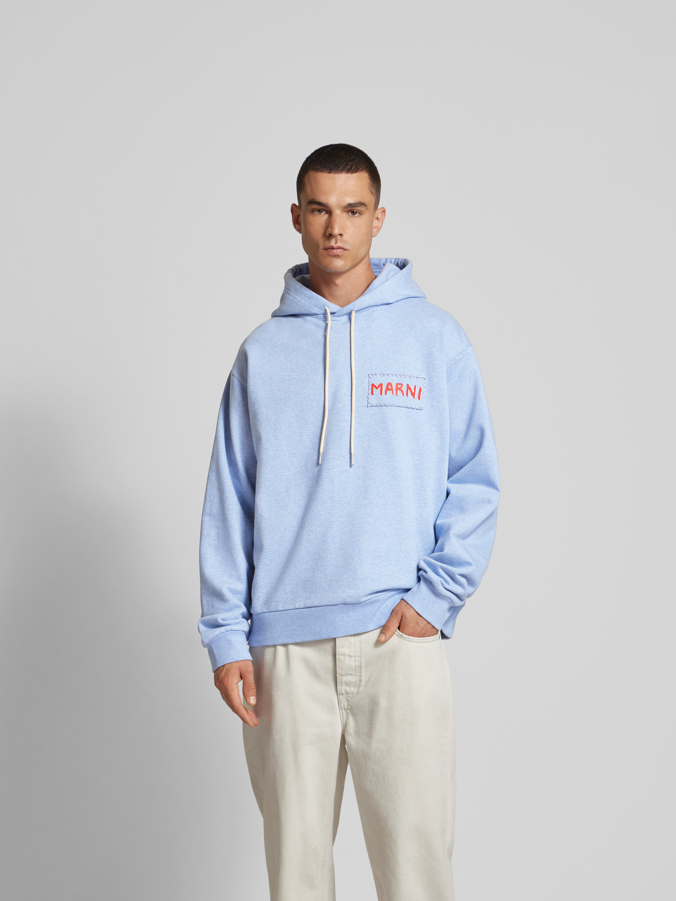 Der Herren Hoodie von Marni aus reiner Baumwolle fällt durch seinen lockeren Schnitt angenehm entspannt aus. Dank Kapuze und Tunnelzug eignet er sich ideal für vielseitige Kombinationen im Alltag. Das dezente Label-Detail rundet das Erscheinungsbild gekonnt ab.