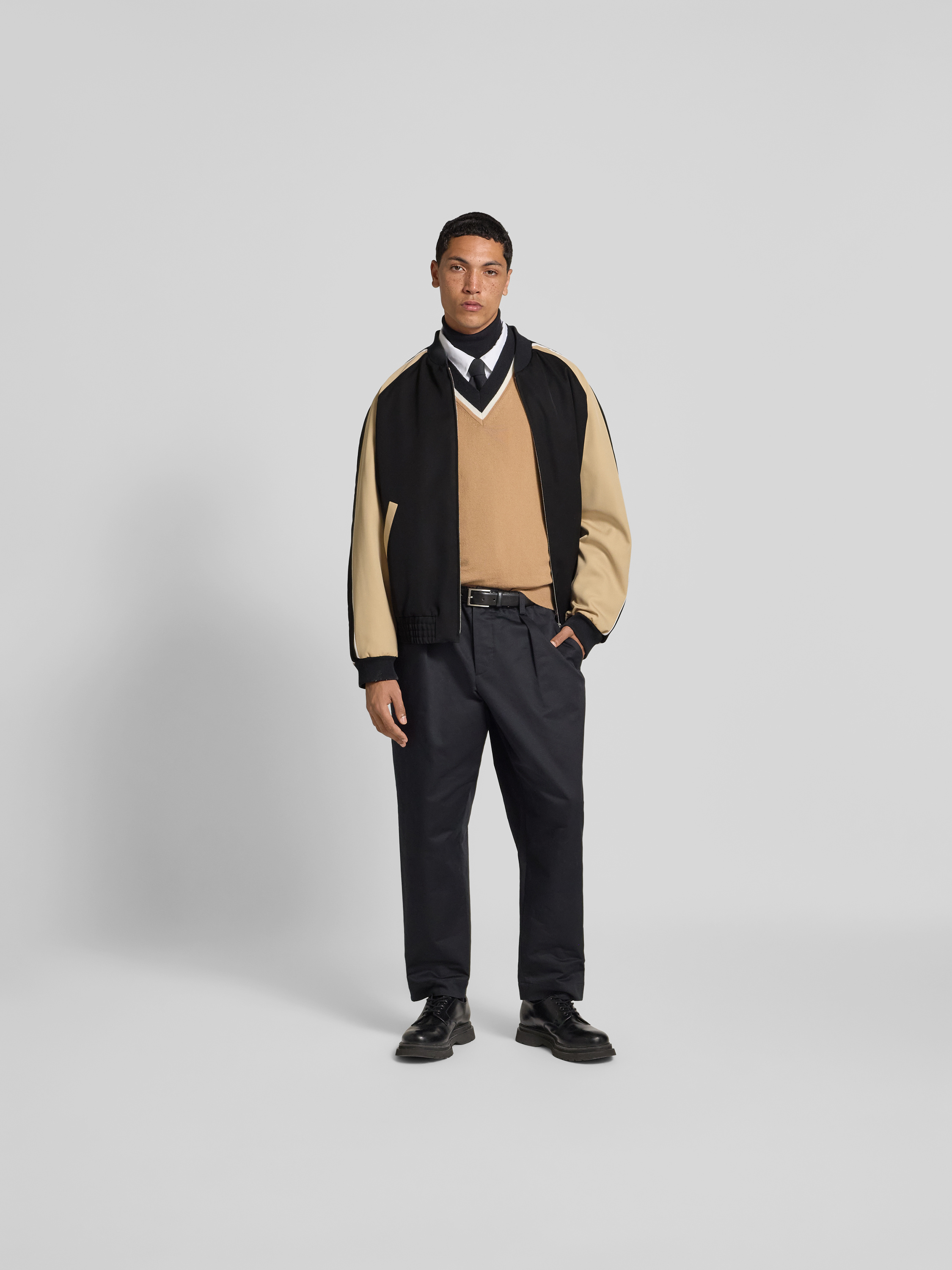 Die Herren Jacke von Marni aus reiner Schurwolle eignet sich durch ihren entspannten Schnitt für vielseitige Outfits im Alltag. Dank der hochwertigen Schurwolle fühlt man sich angenehm gewärmt, während Eingrifftaschen kleine Dinge griffbereit halten. Elastische Abschlüsse runden das bequeme Tragegefühl ab.