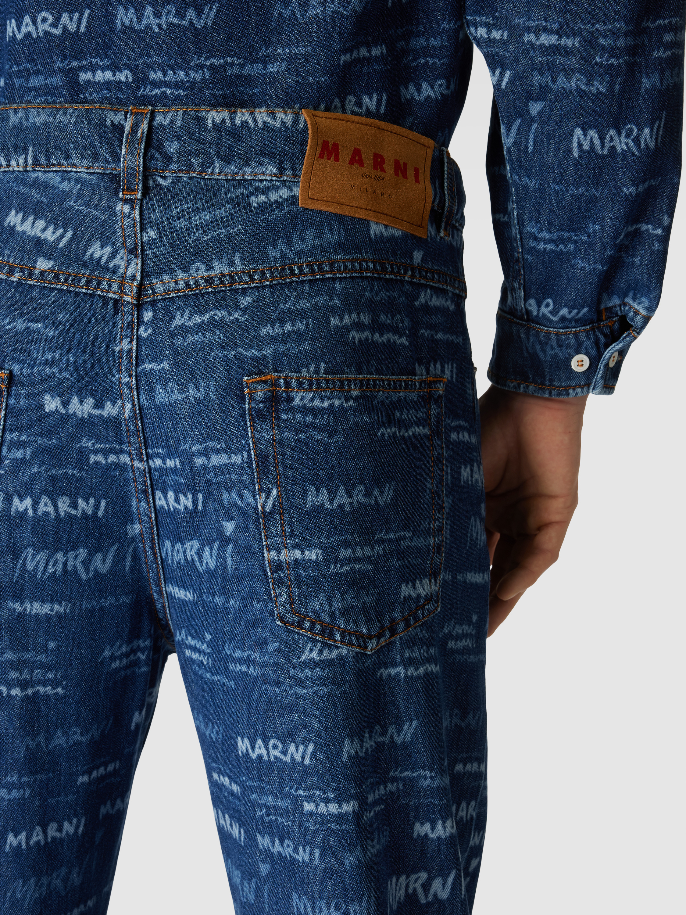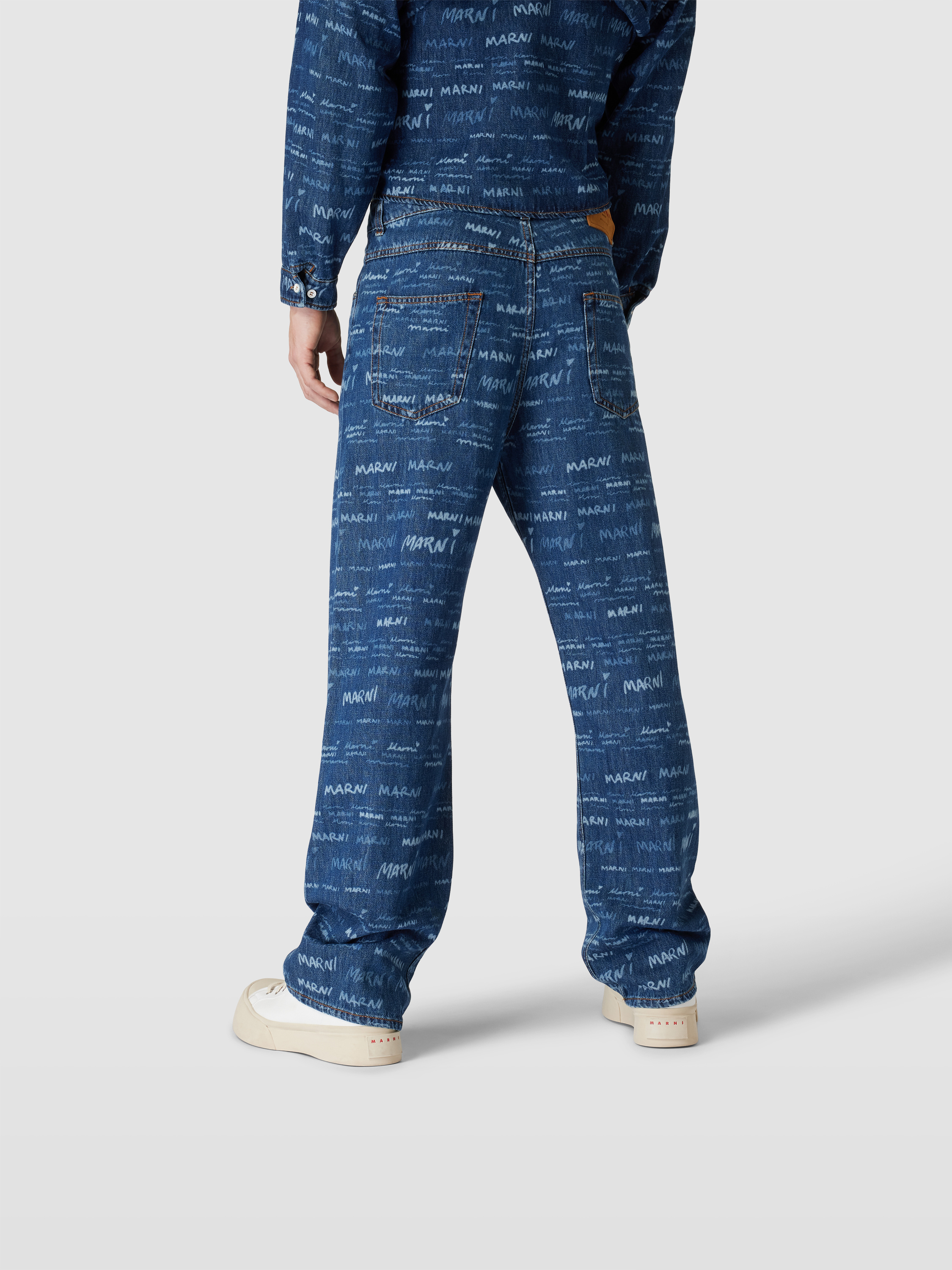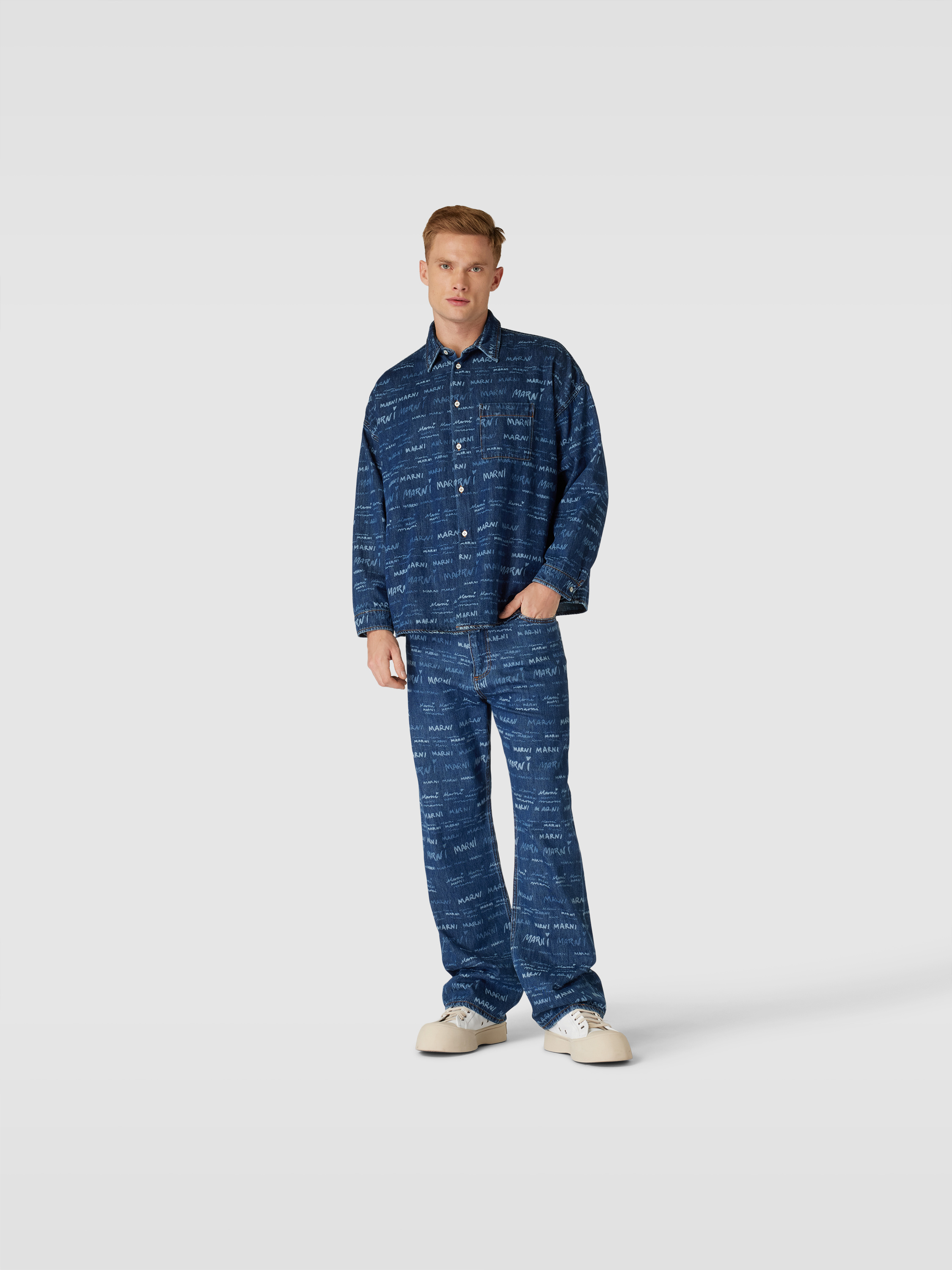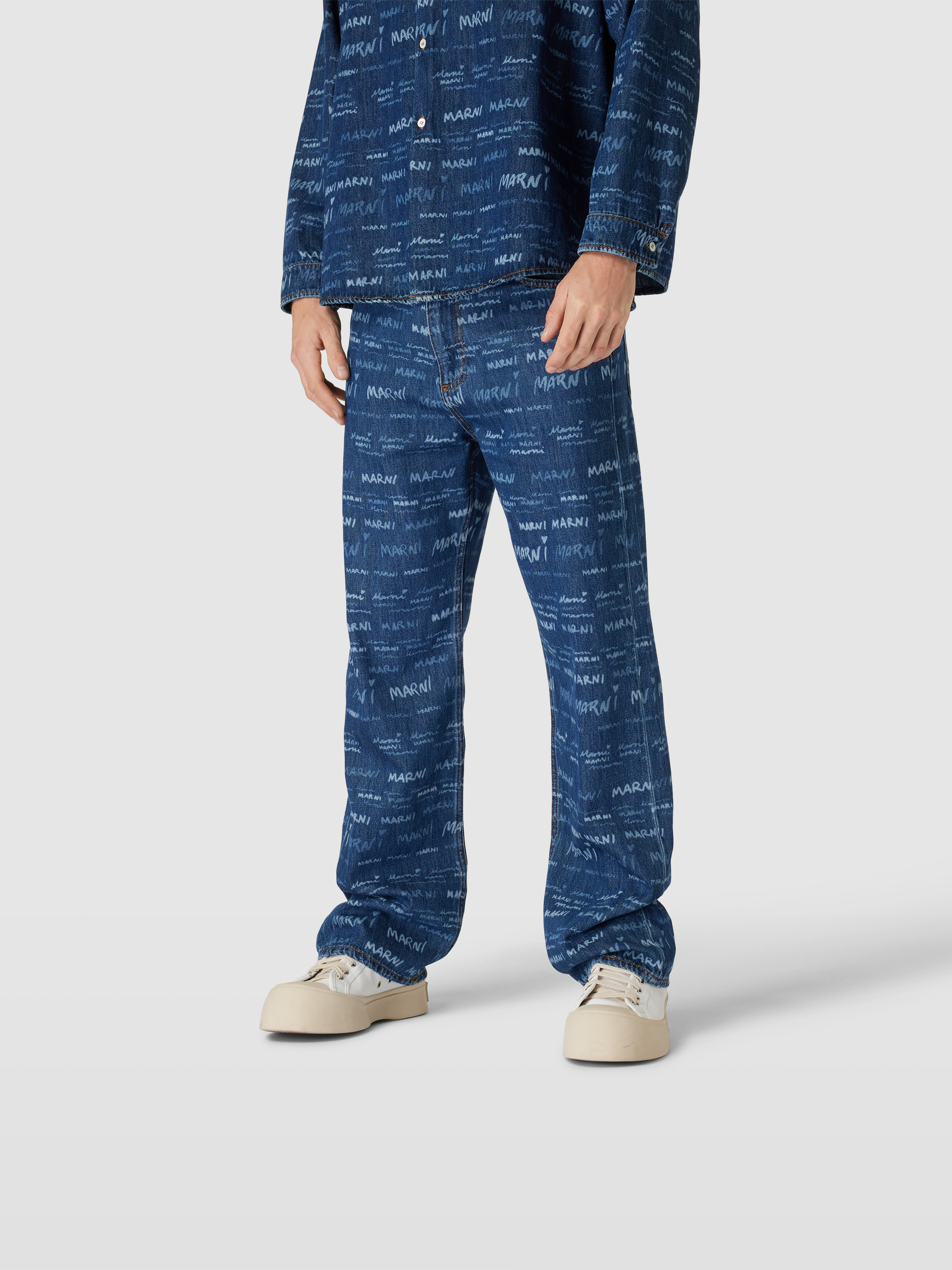 Die Herren Loose Fit Jeans von Marni aus reiner Baumwolle fällt durch ihren lockeren Schnitt angenehm auf. Durch das 5-Pocket-Design lassen sich kleine Dinge unkompliziert verstauen, während der Allover-Label-Print dem Look eine individuelle Note verleiht. So entsteht ein legerer Eindruck, der vielseitig kombinierbar bleibt.