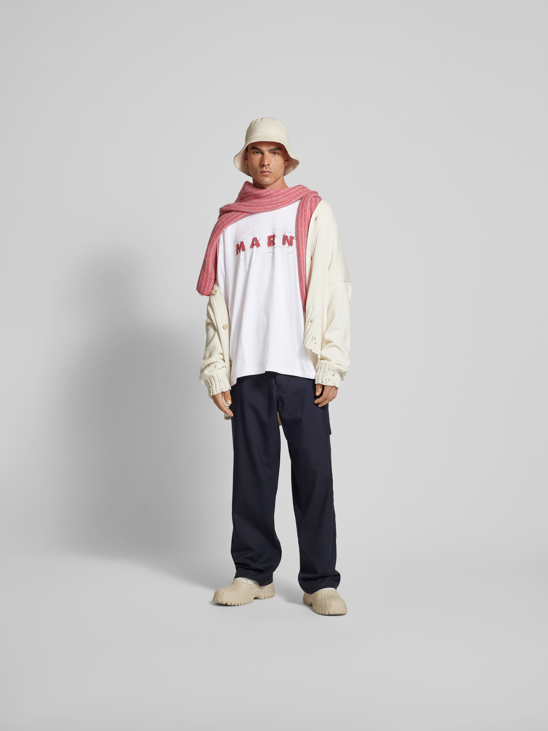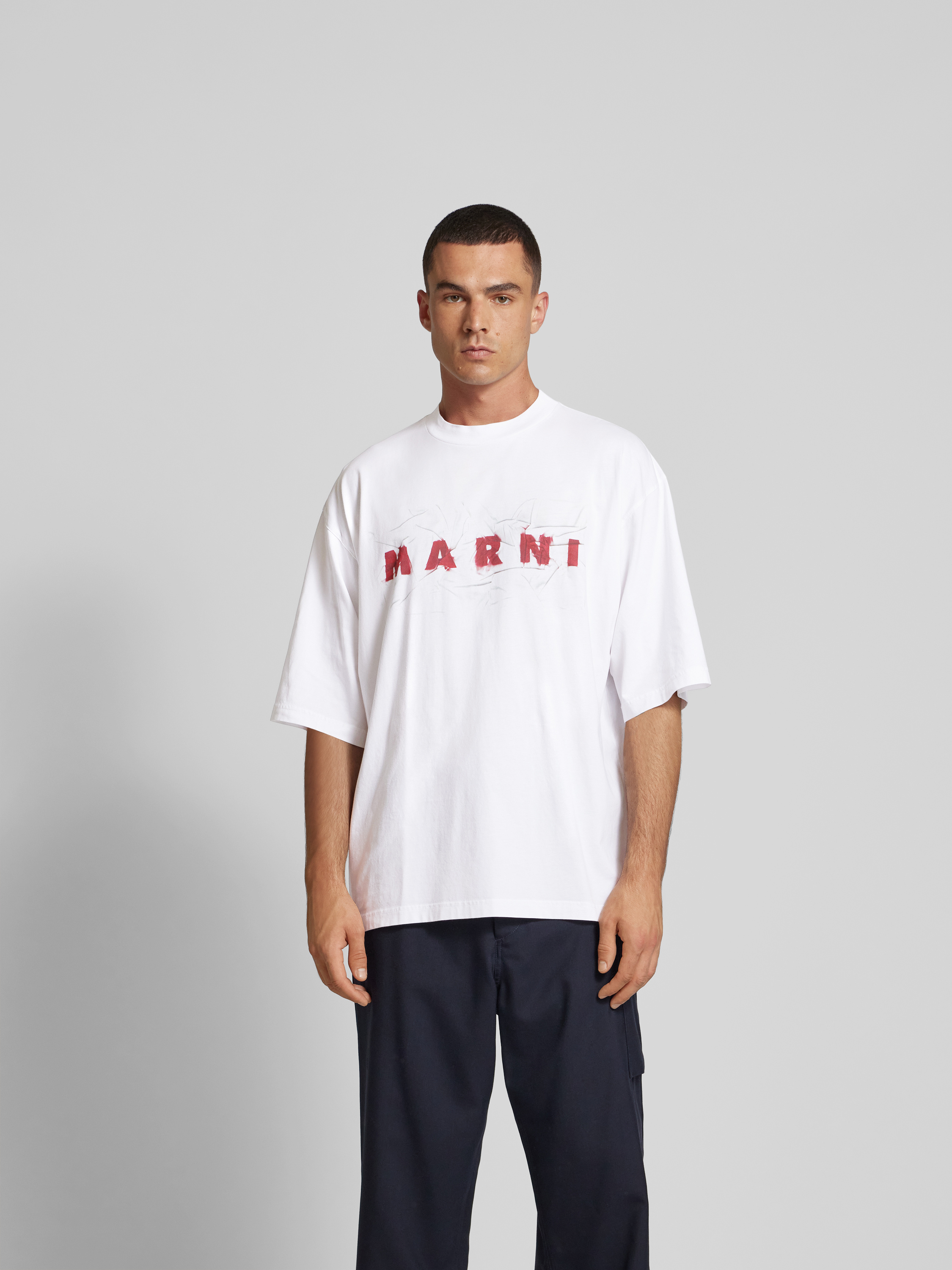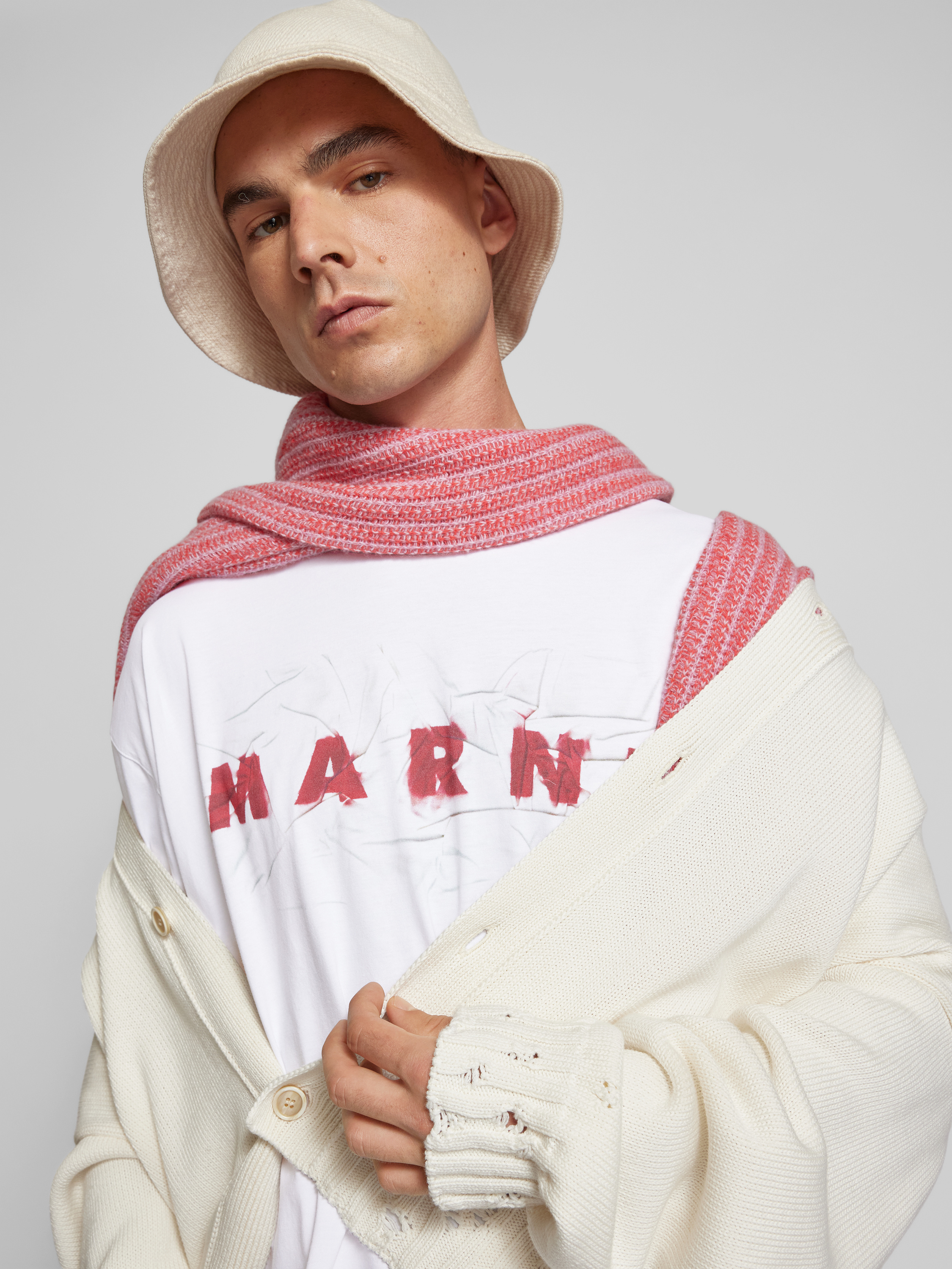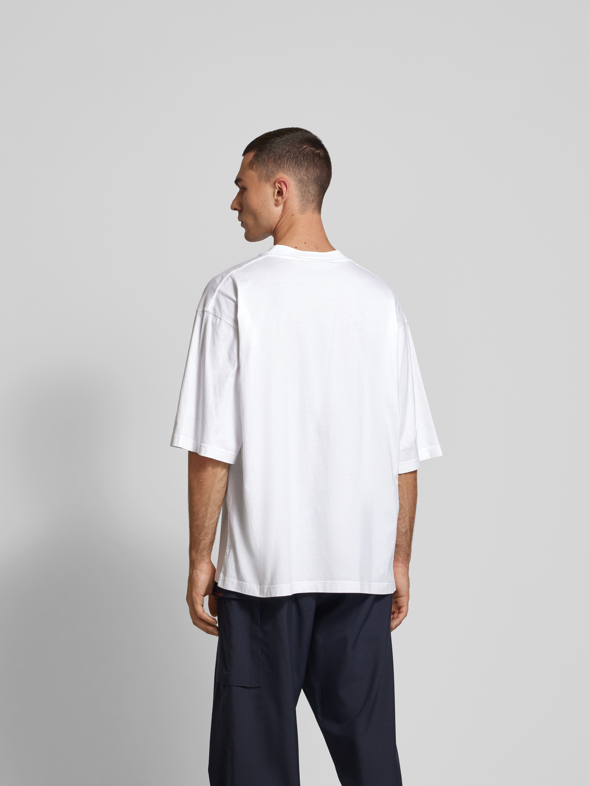 Das Herren Oversized T-Shirt von Marni fällt durch seine großzügige Passform angenehm locker und sorgt für ein entspanntes Tragegefühl. Gefertigt aus reiner Baumwolle, lässt es die Haut atmen und fühlt sich weich an. Dezente Details wie das Label am Saum runden das Gesamtbild ab.