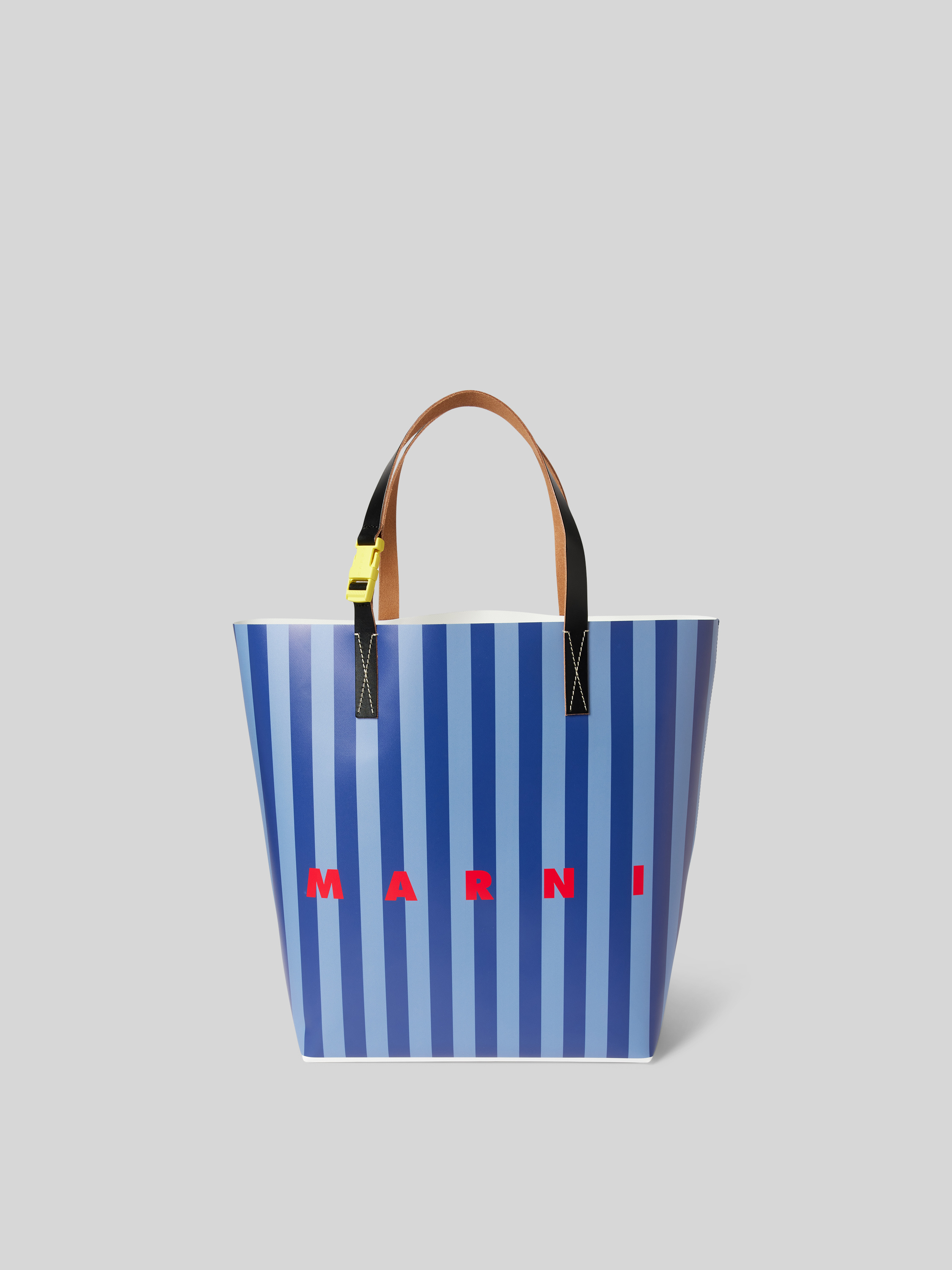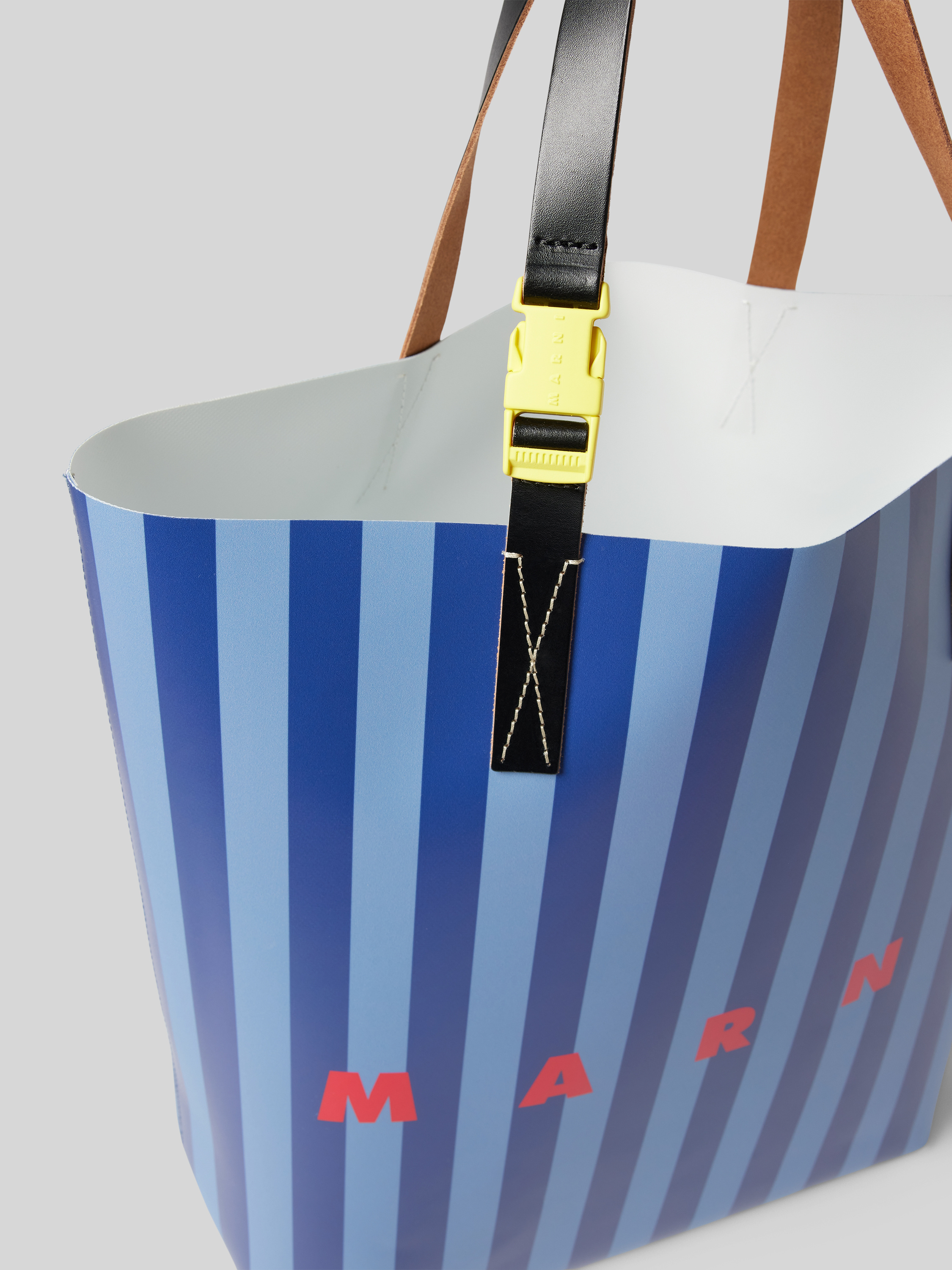 Der Herren Shopper von Marni überzeugt durch ein offenes Hauptfach, das schnellen Zugriff auf den Inhalt ermöglicht. Lange Tragehenkel sorgen für komfortablen Transport im Alltag, während ein Klickverschluss das Verstauen erleichtert. Ein dezenter Label-Print und markante Ziernähte runden das Design ab.