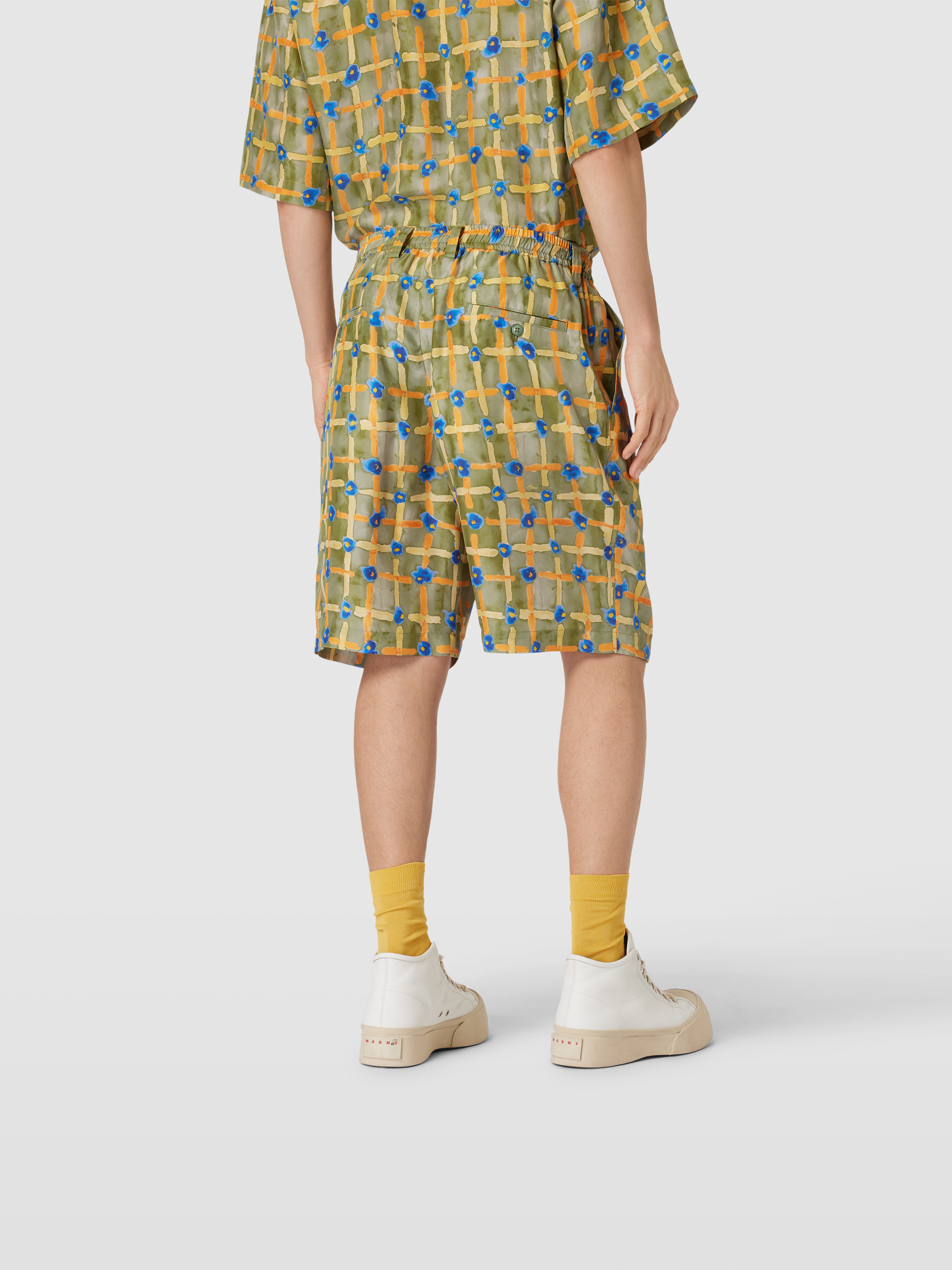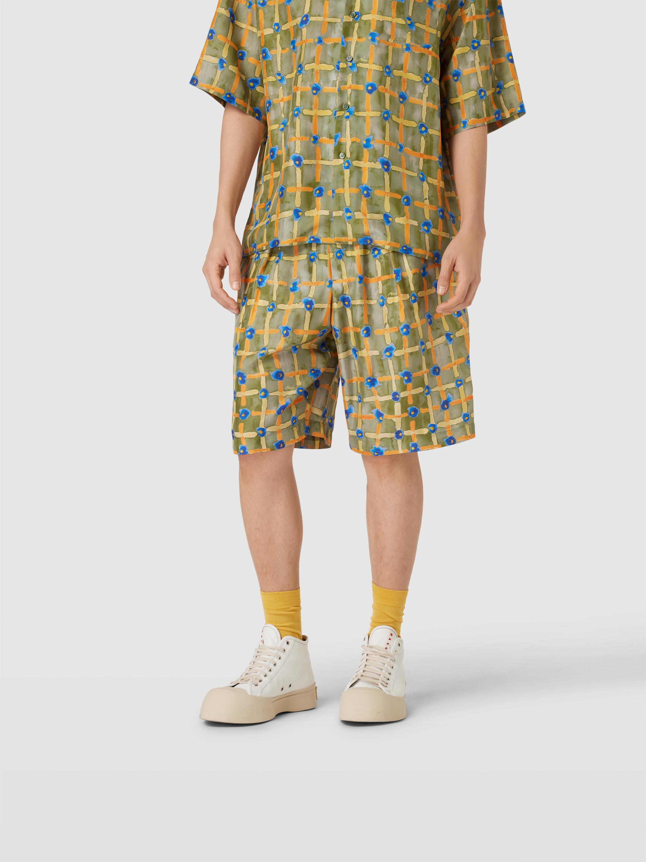 Die Marni Shorts mit Allover-Muster aus reiner Seide zeichnen sich durch ihren angenehm leichten Griff aus. Dank des geraden Schnitts und des bequemen Bundes entsteht ein entspannter Sitz, während französische Taschen das praktische Detail für den Alltag liefern. So lassen sich sommerliche Outfits unkompliziert ergänzen.