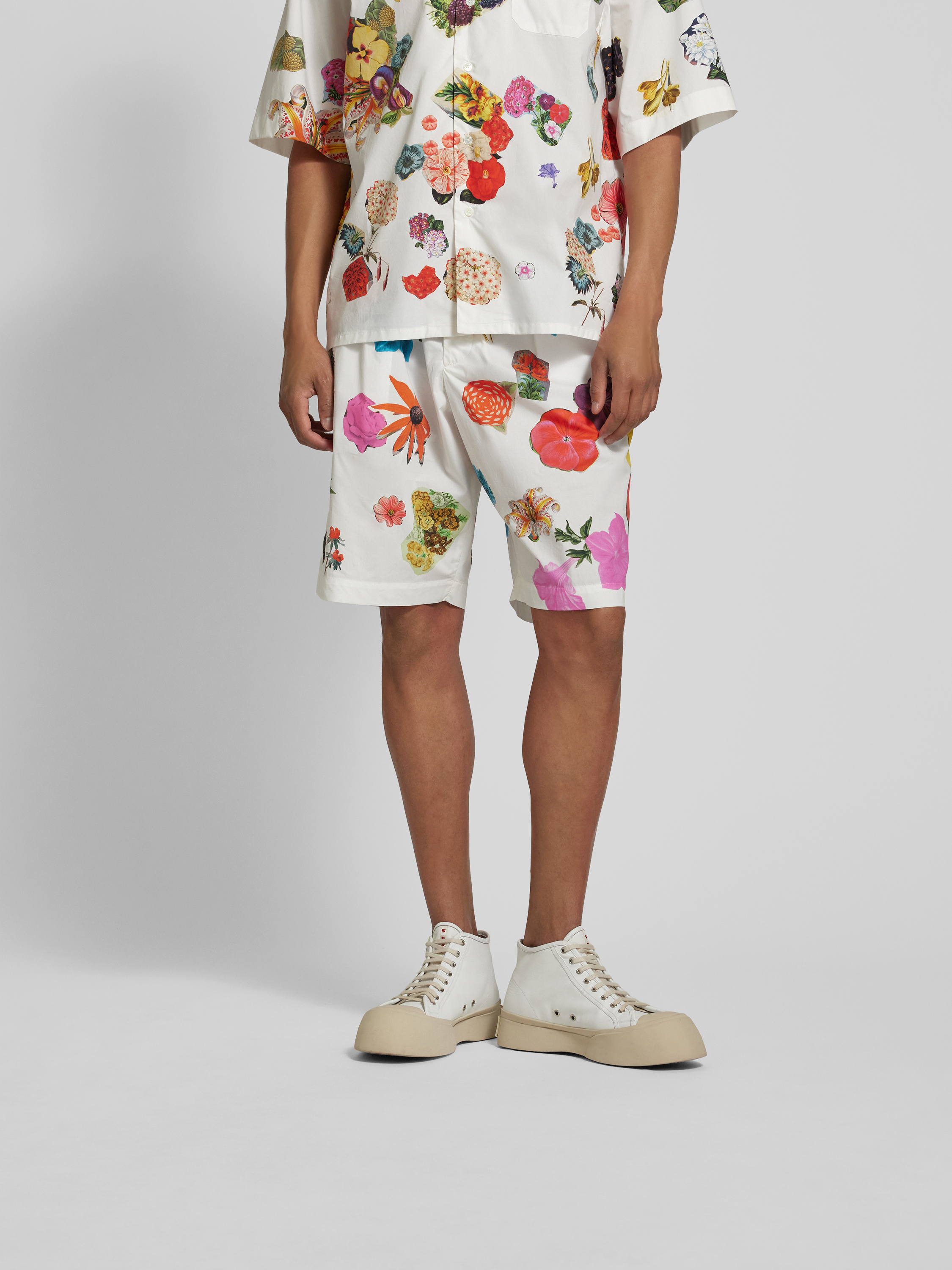 Die Herren Shorts von Marni zeichnen sich durch reine Baumwolle und einen lockeren Schnitt aus, wodurch sie angenehm zu tragen sind. Das florale Muster sorgt für einen frischen Akzent, während der elastische Bund Bewegungsfreiheit im Alltag ermöglicht. So eignet sich die Shorts mit floralem Muster für entspannte Sommertage.