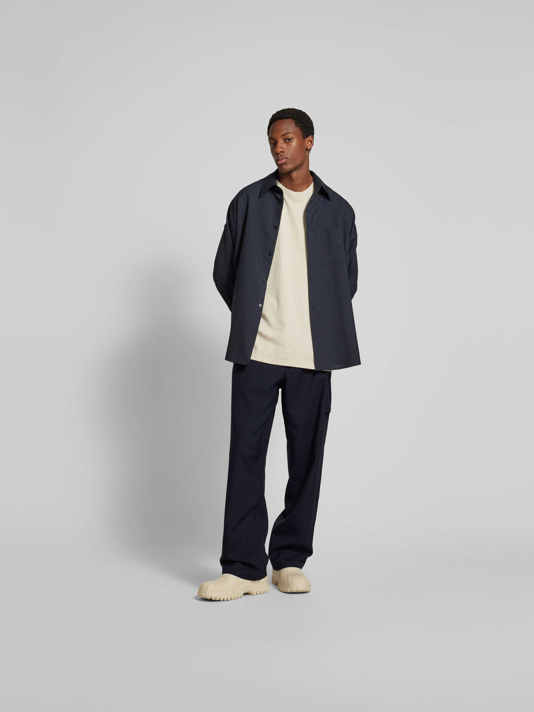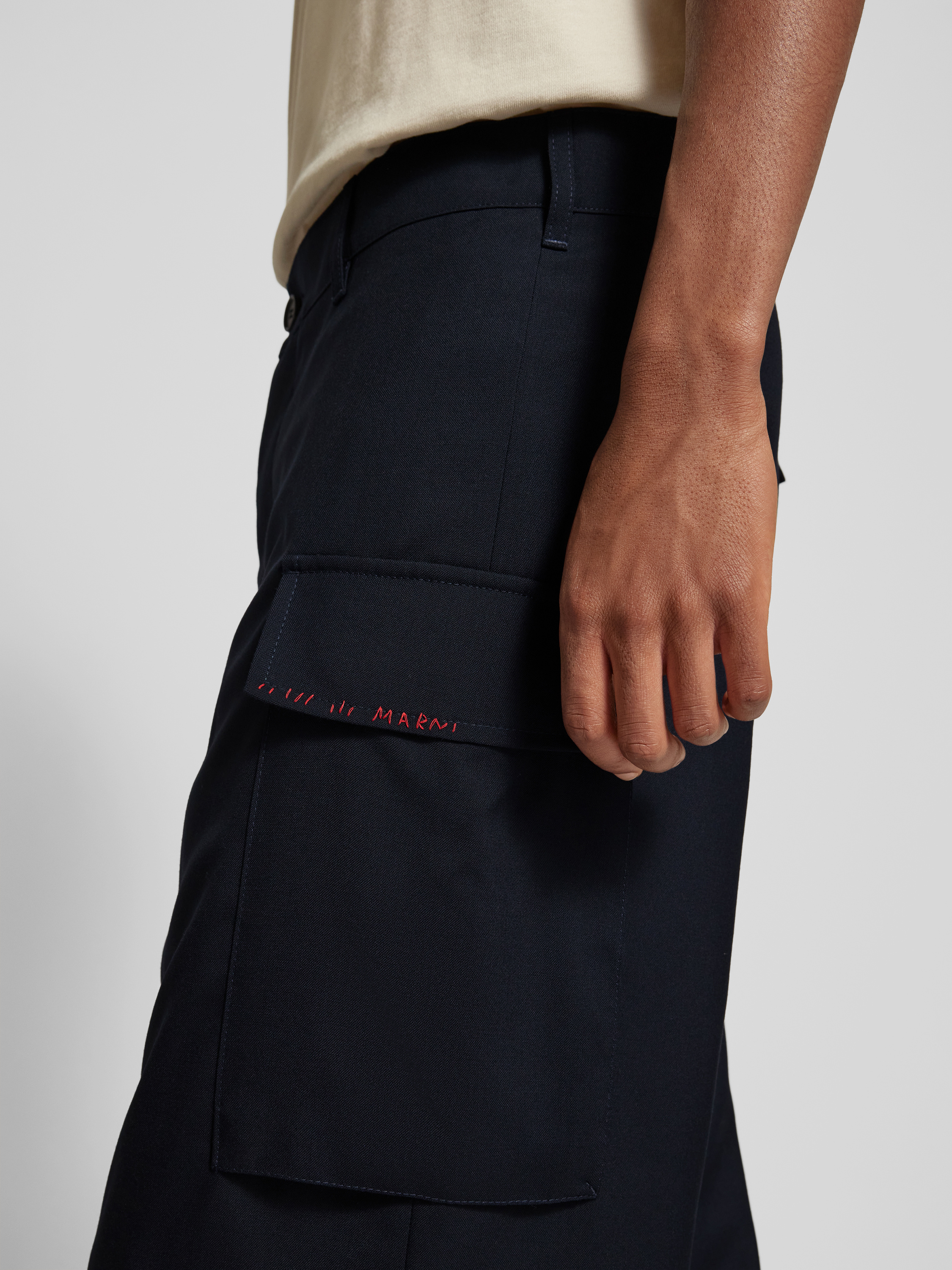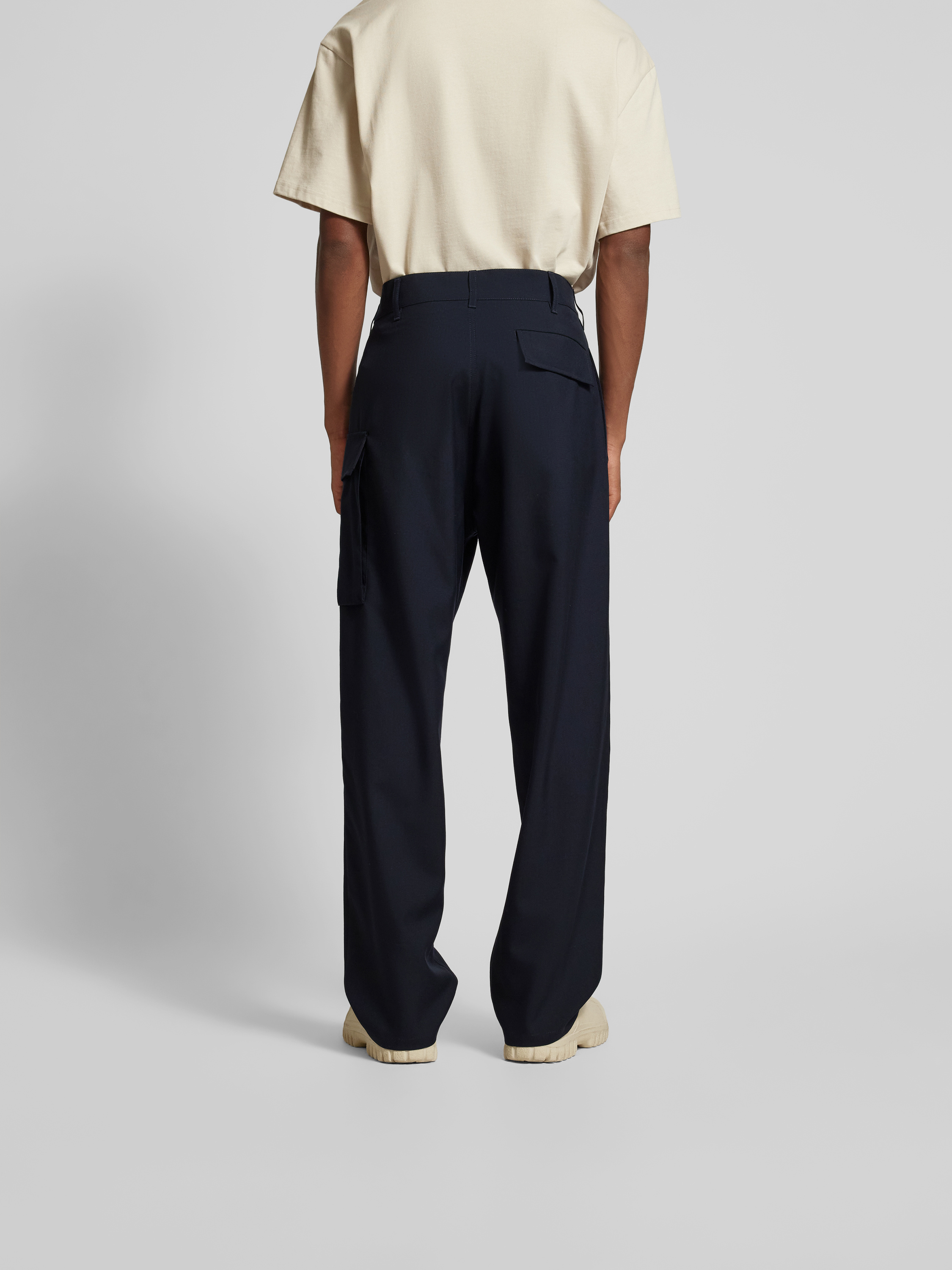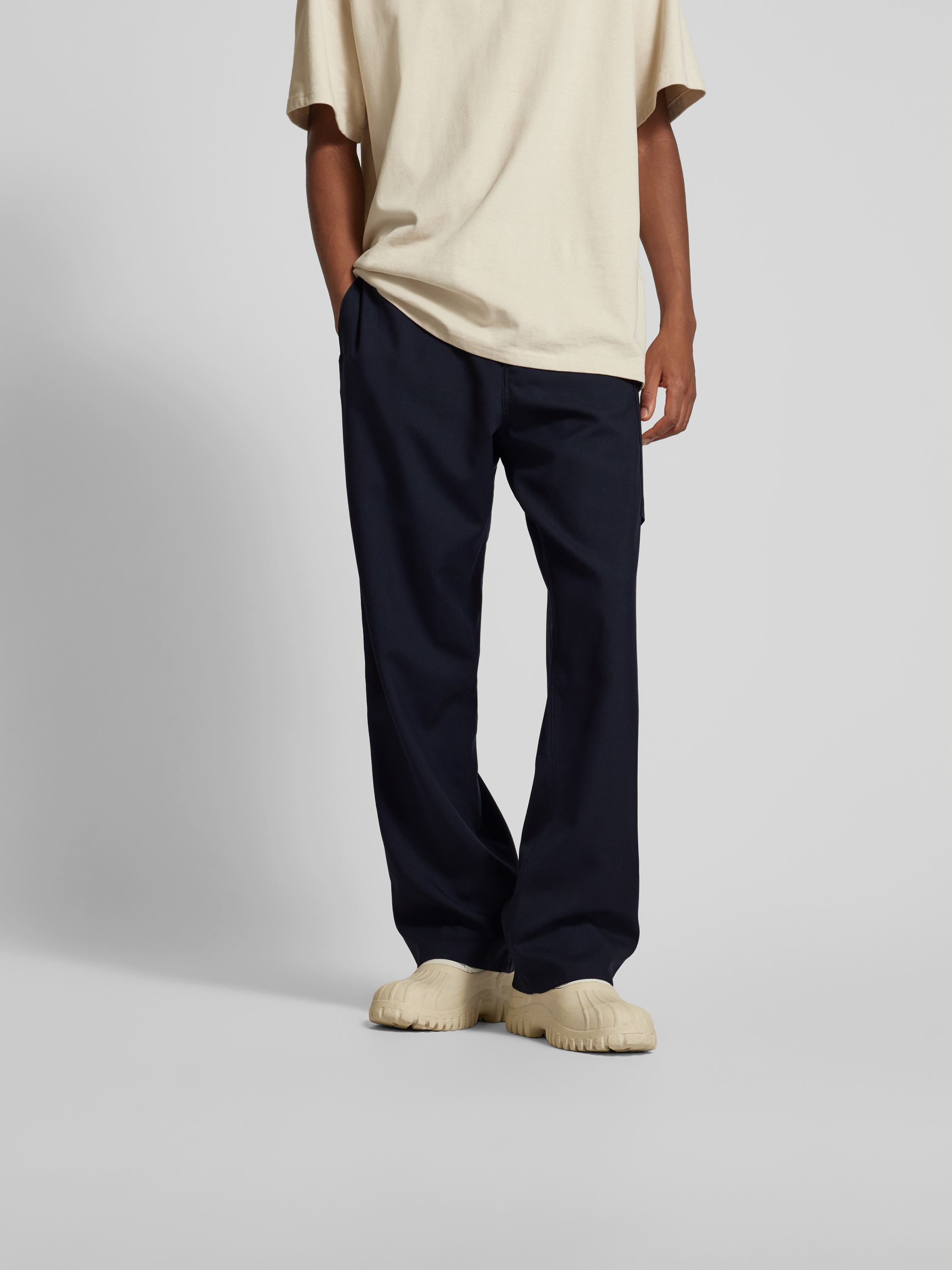 Die Herrenhose von Marni besteht aus reiner Schurwolle, wodurch ein angenehmes Tragegefühl entsteht. Durch den geraden Schnitt sitzt sie locker und lässt sich vielseitig kombinieren. In der aufgesetzten Gesäßtasche lassen sich kleinere Gegenstände unkompliziert verstauen.
