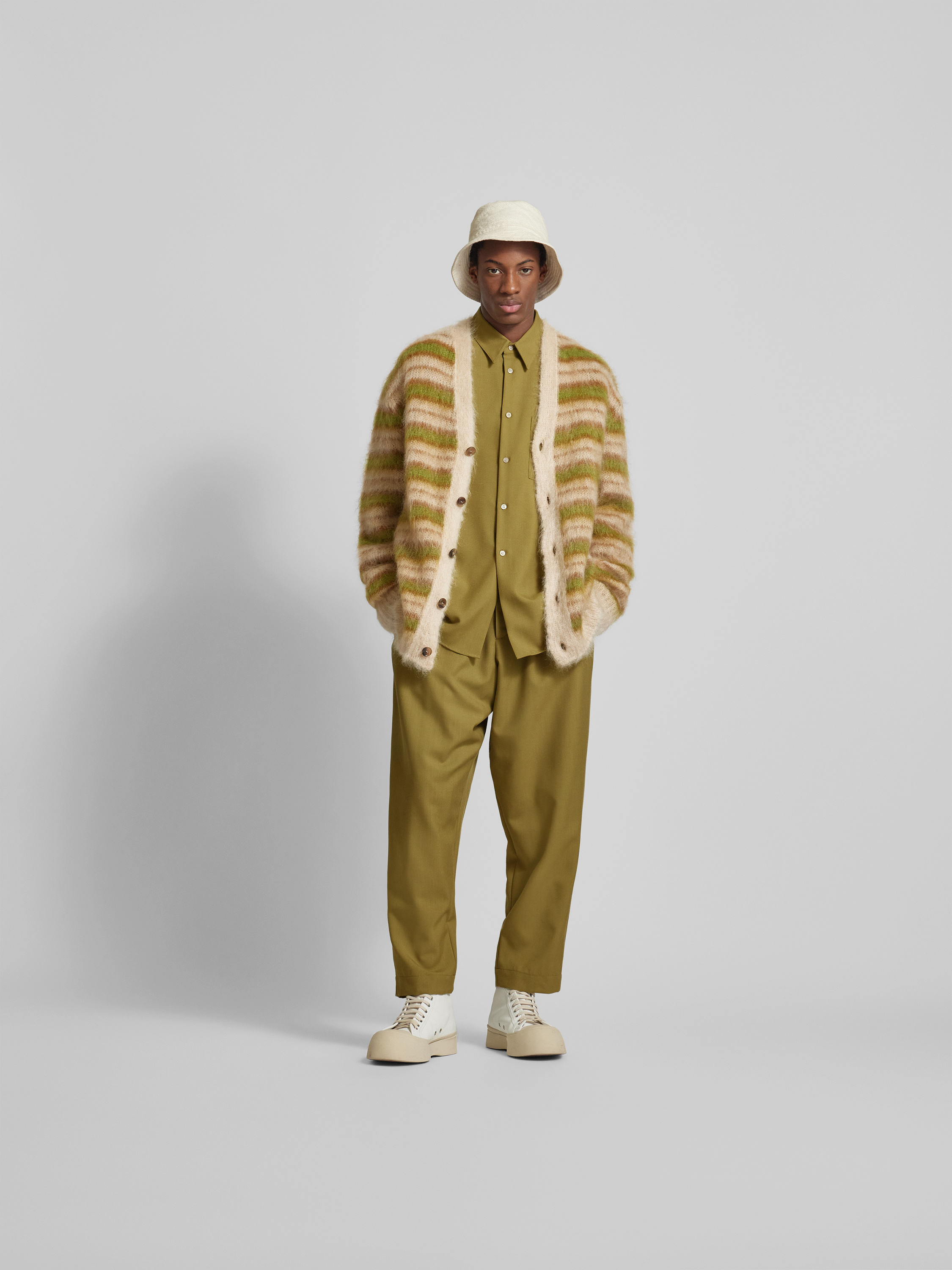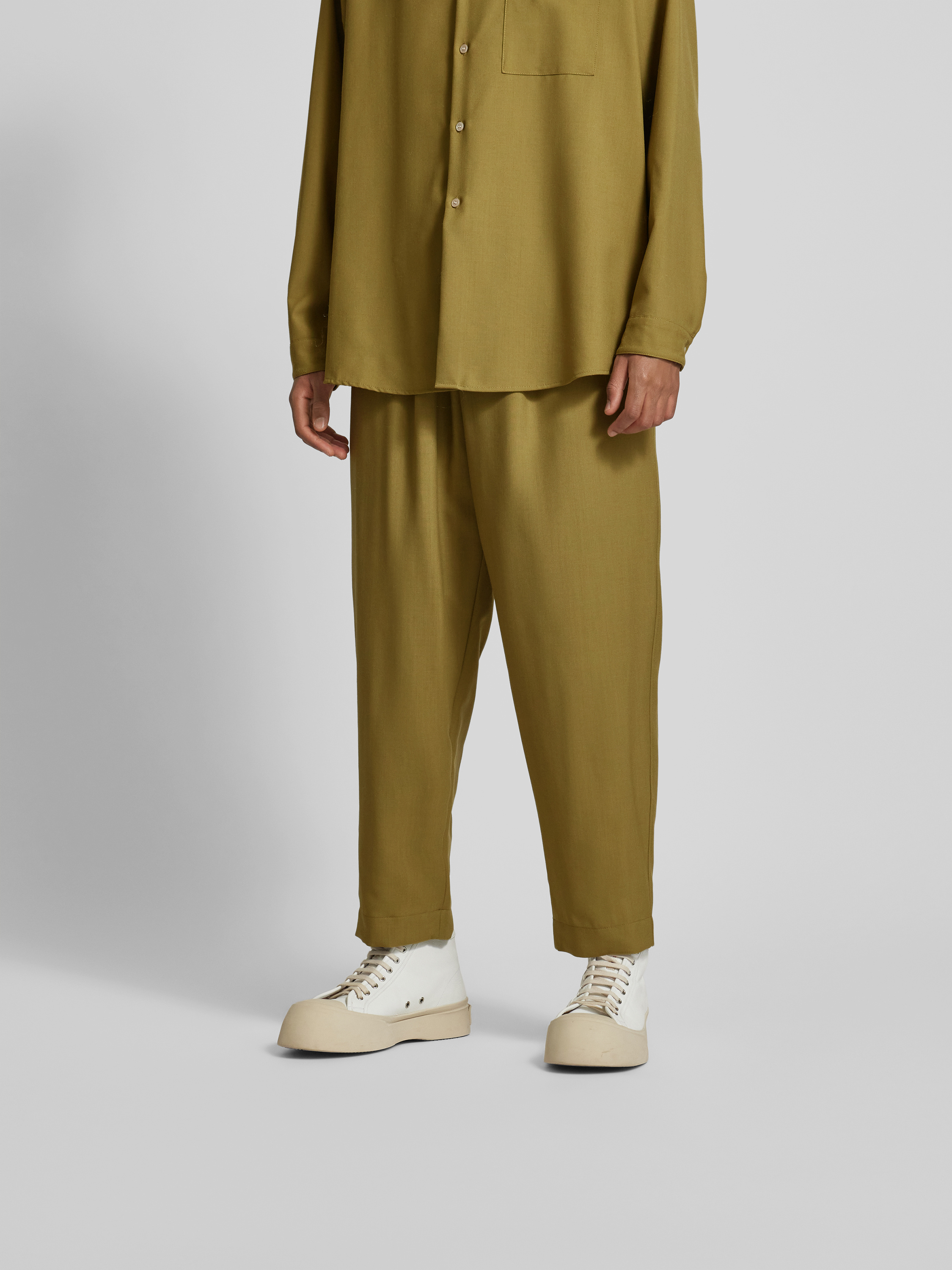 Die Herren Straight Fit Hose von Marni besteht aus reiner Lanawolle und fühlt sich angenehm auf der Haut an. Durch den geraden Schnitt bleibt die Bewegungsfreiheit erhalten, während sich der elastische Bund flexibel anpasst. Alltag und Freizeit lassen sich damit gleichermaßen entspannt gestalten.
