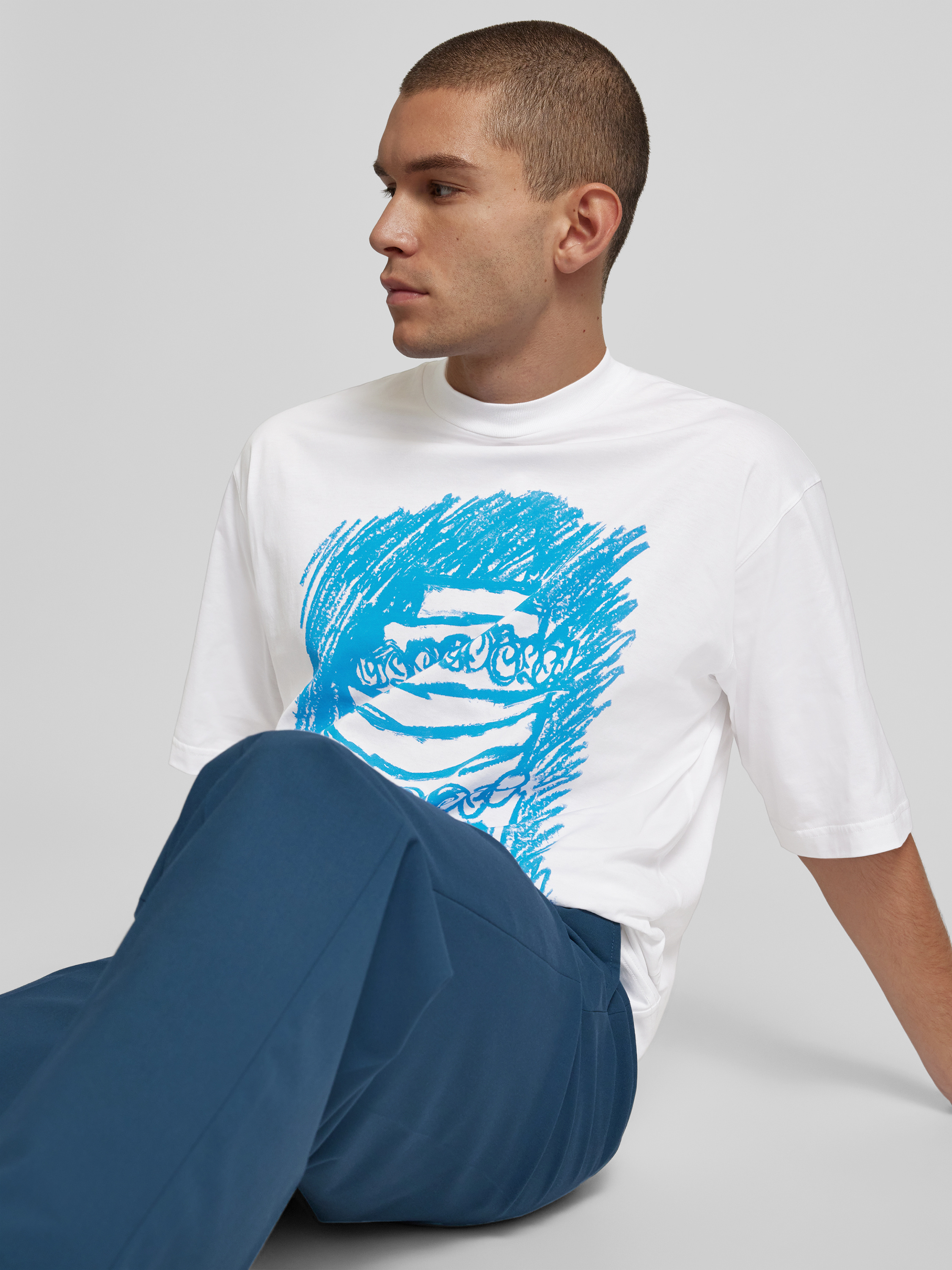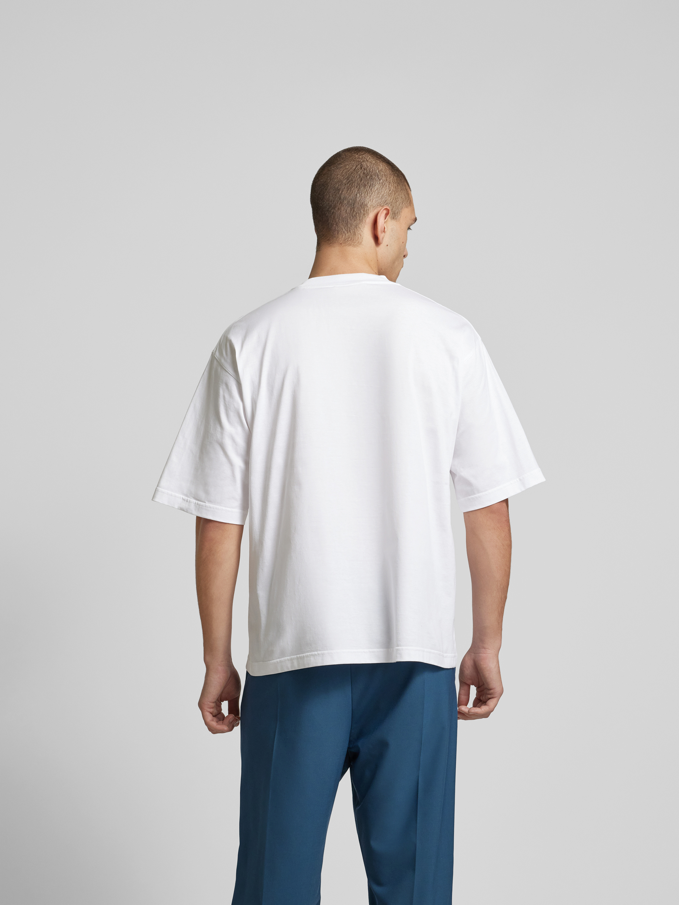 Das Herren T-Shirt von Marni aus reiner Baumwolle fällt durch seinen lockeren Schnitt angenehm leicht und sorgt so für hohen Tragekomfort. Ein markanter Label-Print setzt einen modernen Akzent, während der klassische Rundhalsausschnitt das Gesamtbild lässig abrundet. So eignet sich das T-Shirt mit Label-Print besonders für entspannte Outfits.