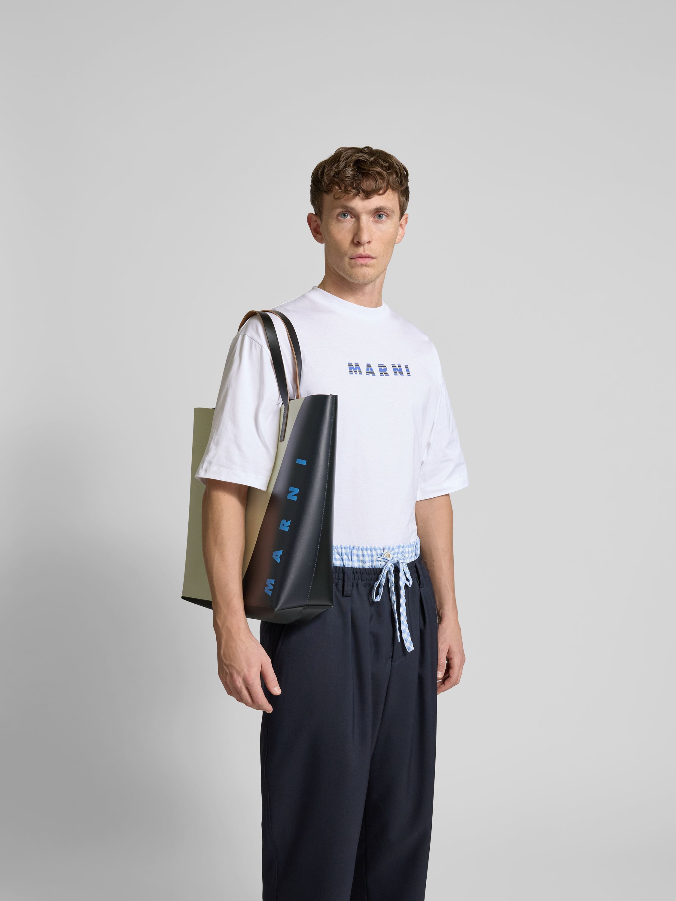 Die Herren Tote Bag von Marni zeichnet sich durch ihr offenes Hauptfach aus, das schnellen Zugriff auf den Inhalt ermöglicht. Mit stabilen Tragehenkeln ausgestattet, lässt sich die Tasche bequem transportieren. Der dezente Label-Print verleiht dem Accessoire eine stilvolle Note.
