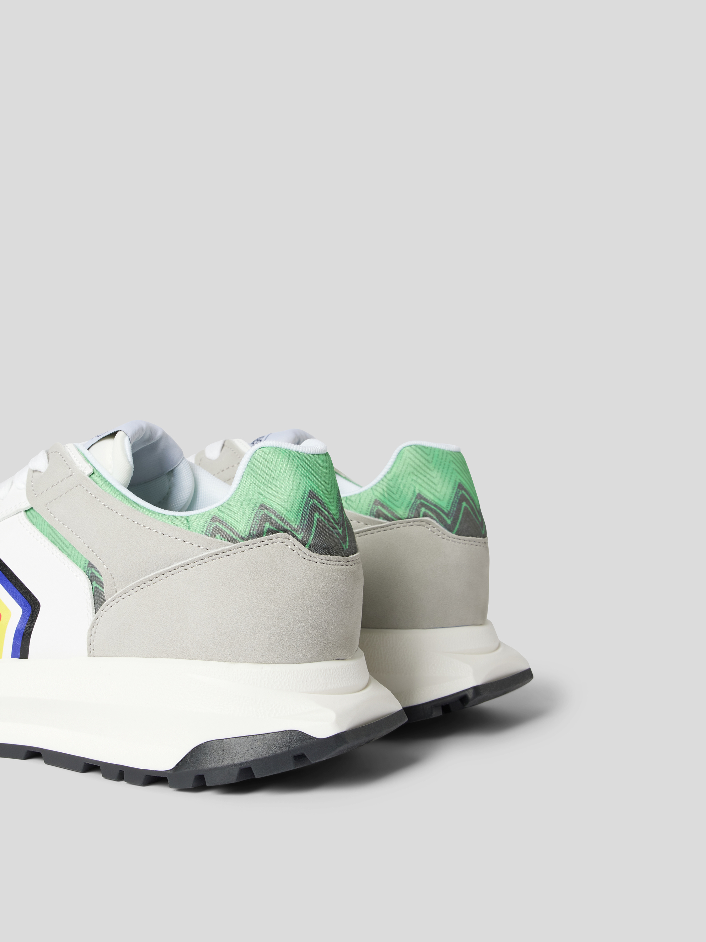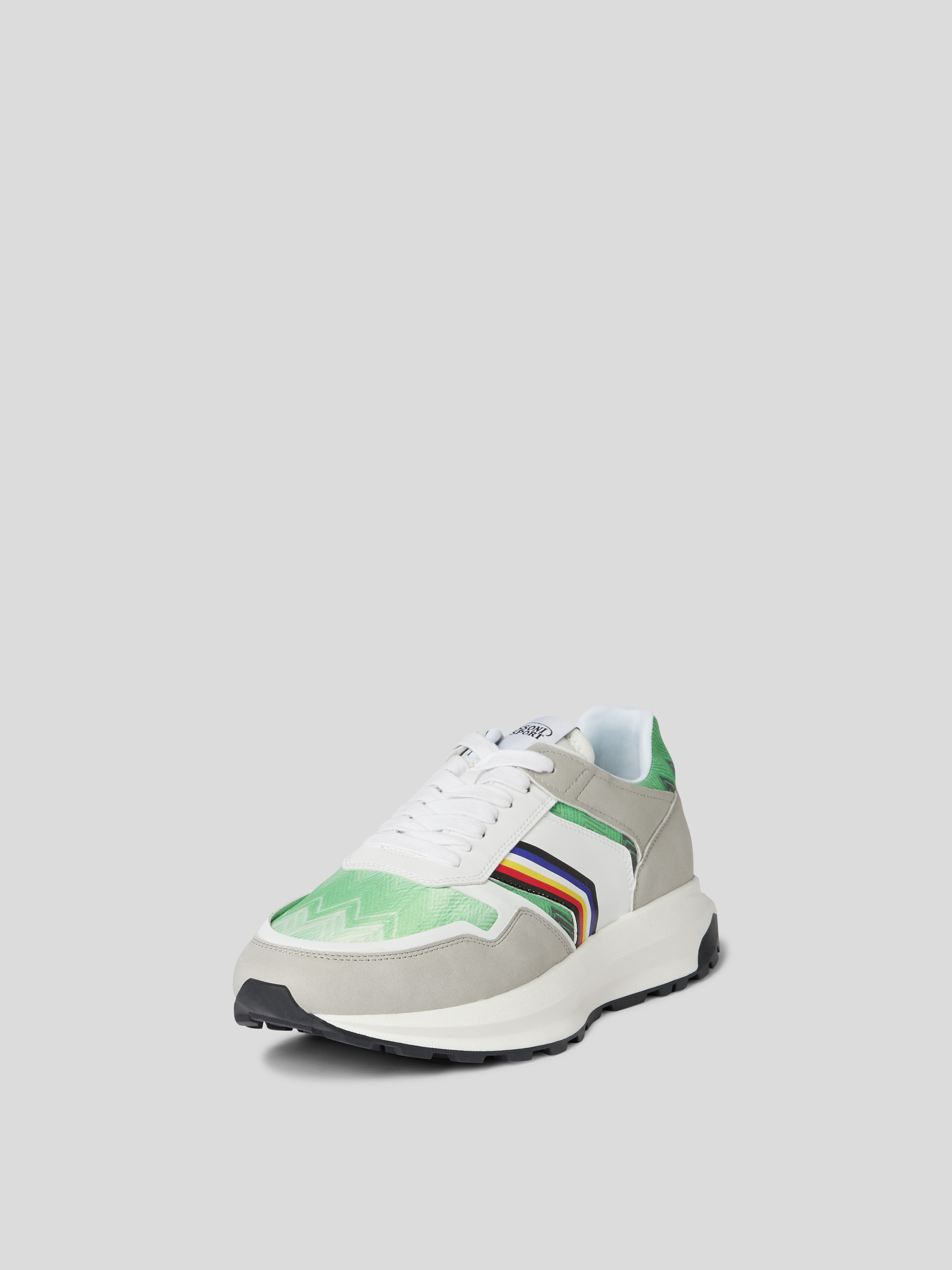 Die Damen Sneaker von M Missoni präsentieren sich mit einer abgerundeten Spitze und markanten Kontrastbesätzen, die dem klassischen Design eine besondere Note verleihen. Durch die strukturierte Sohle wird ein angenehmer Halt unterstützt, während dezente Label-Details für einen modernen Akzent sorgen. So eignet sich dieser Sneaker mit Kontrastbesatz vielseitig für den Alltag.