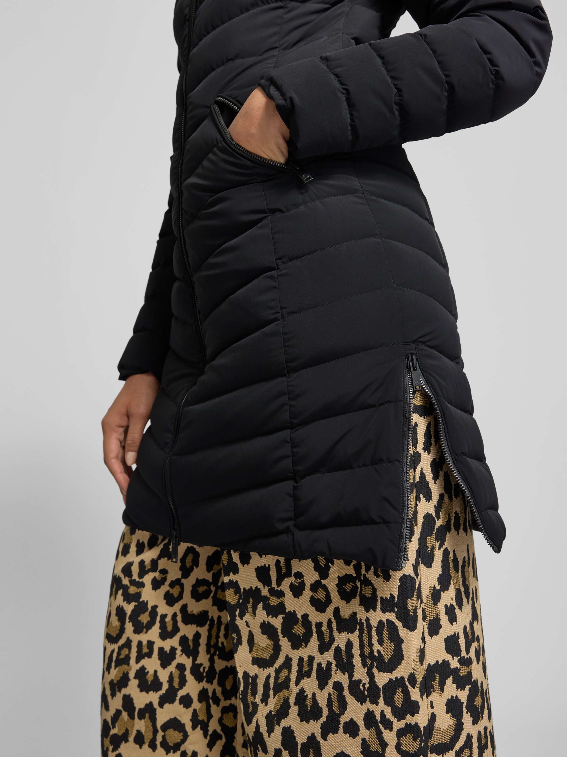 Der Daunenmantel von Moose Knuckles verbindet eine taillierte Silhouette mit einer Füllung aus hochwertigen Entendaunen und sorgt so für angenehme Wärme. Die Kapuze mit Tunnelzug schützt an windigen Tagen, während das leichte Material Bewegungsfreiheit im Alltag ermöglicht. Eingrifftaschen runden das funktionale Design ab.