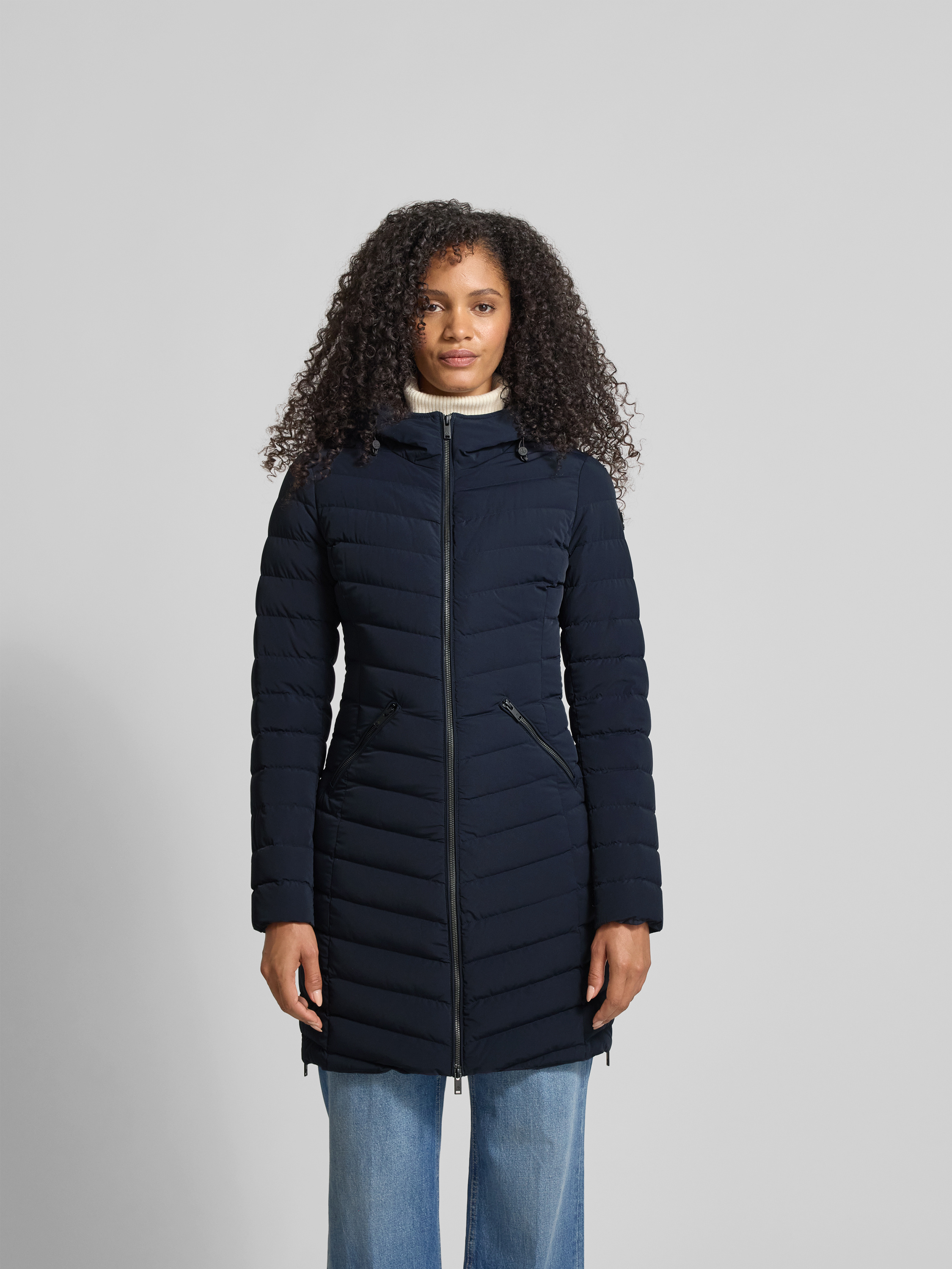 Der Daunenmantel von Moose Knuckles verbindet eine taillierte Silhouette mit einer Füllung aus hochwertigen Entendaunen und sorgt so für angenehme Wärme. Die Kapuze mit Tunnelzug schützt an windigen Tagen, während das leichte Material Bewegungsfreiheit im Alltag ermöglicht. Eingrifftaschen runden das funktionale Design ab.