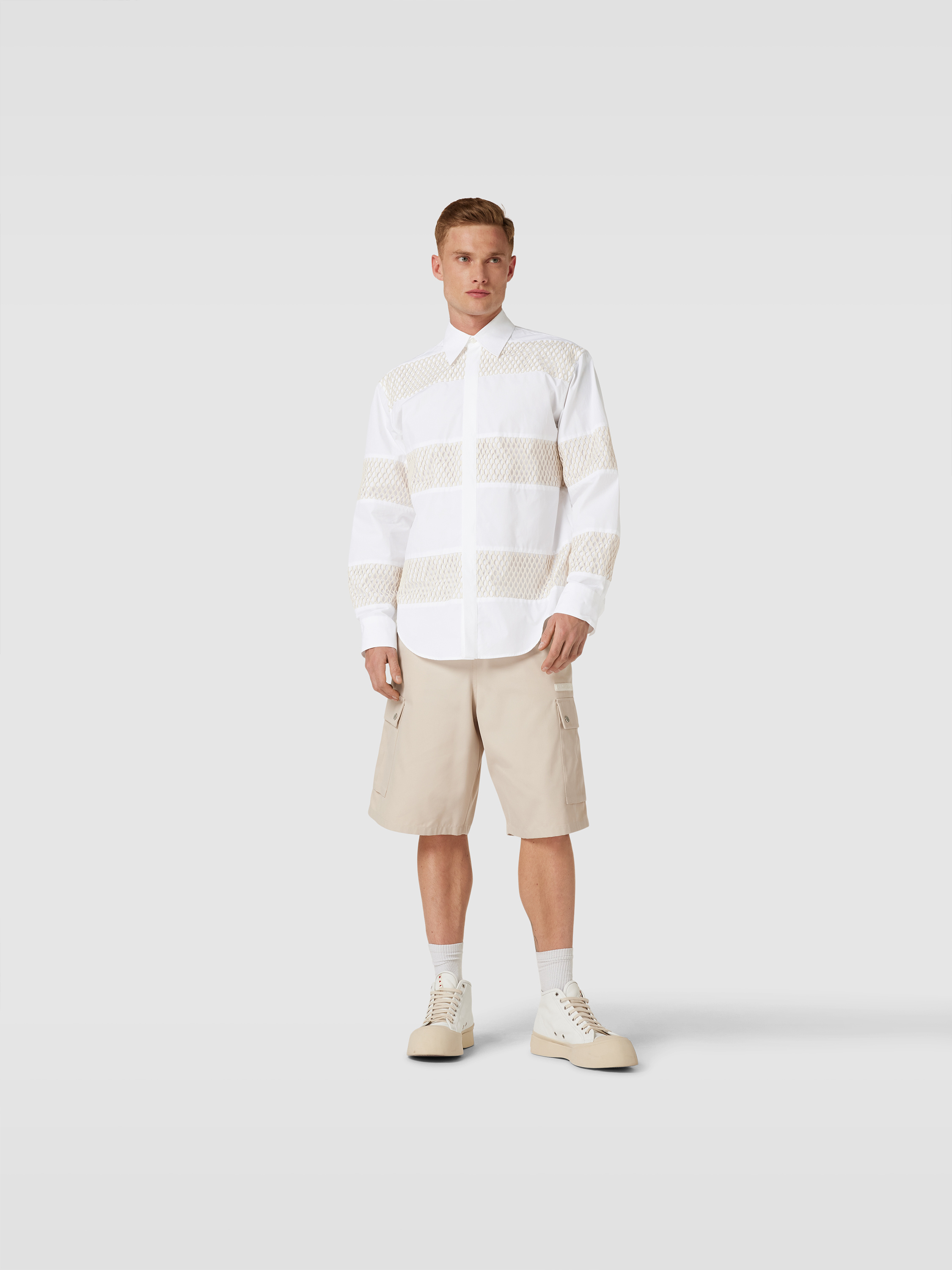 Das Herrenhemd von MSGM fällt durch ein lebendiges Allover-Muster auf und bringt Abwechslung in den Alltag. Die reine Baumwolle fühlt sich angenehm auf der Haut an, während der gerade Schnitt für Bewegungsfreiheit sorgt. So eignet sich das Modell für verschiedenste Freizeitaktivitäten.