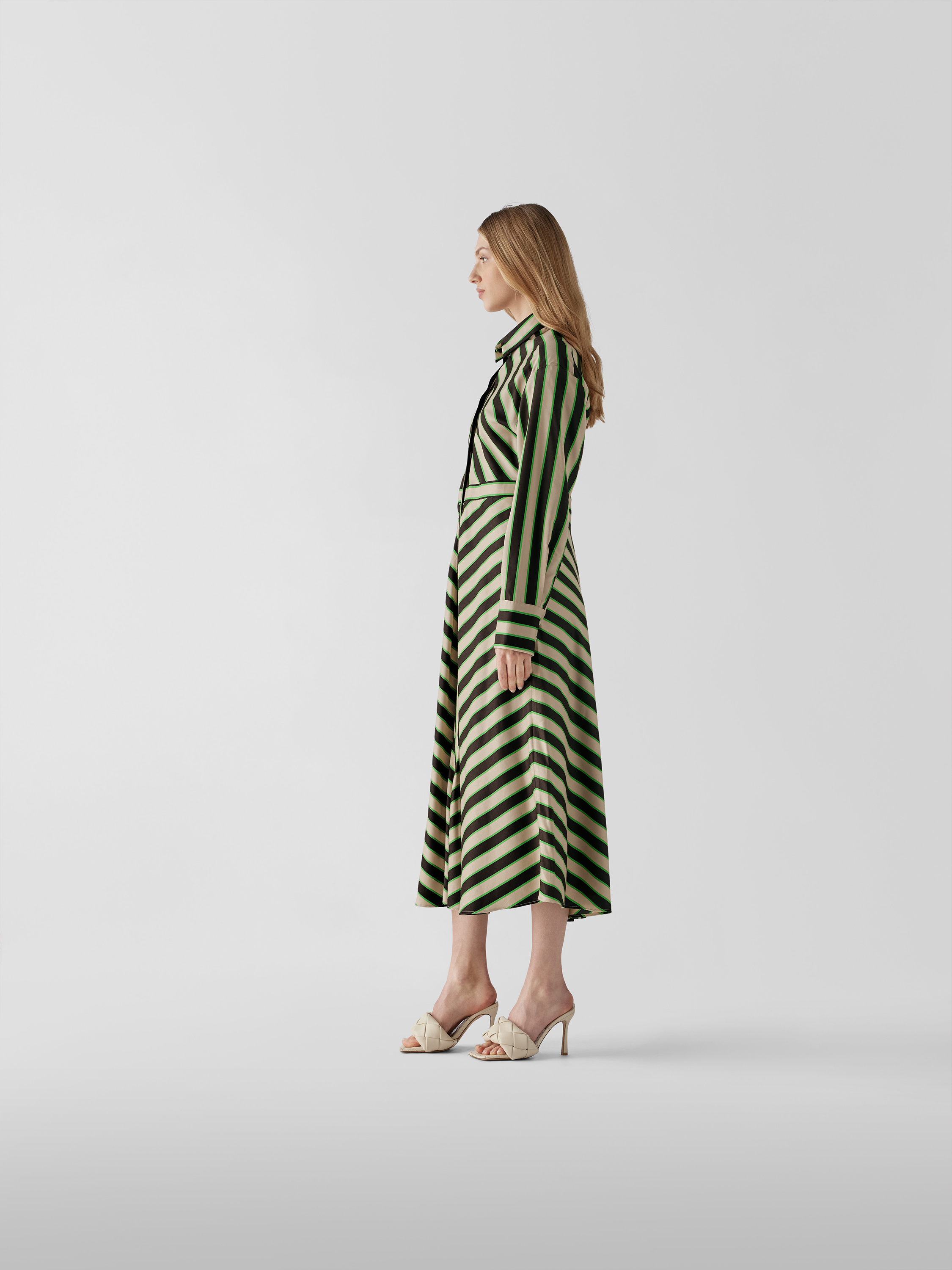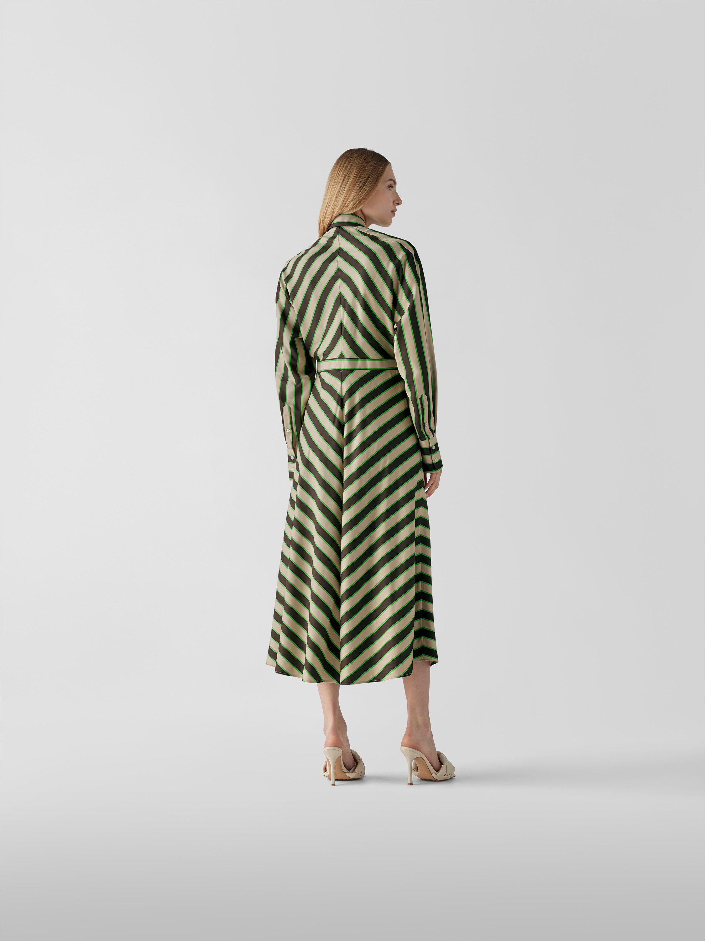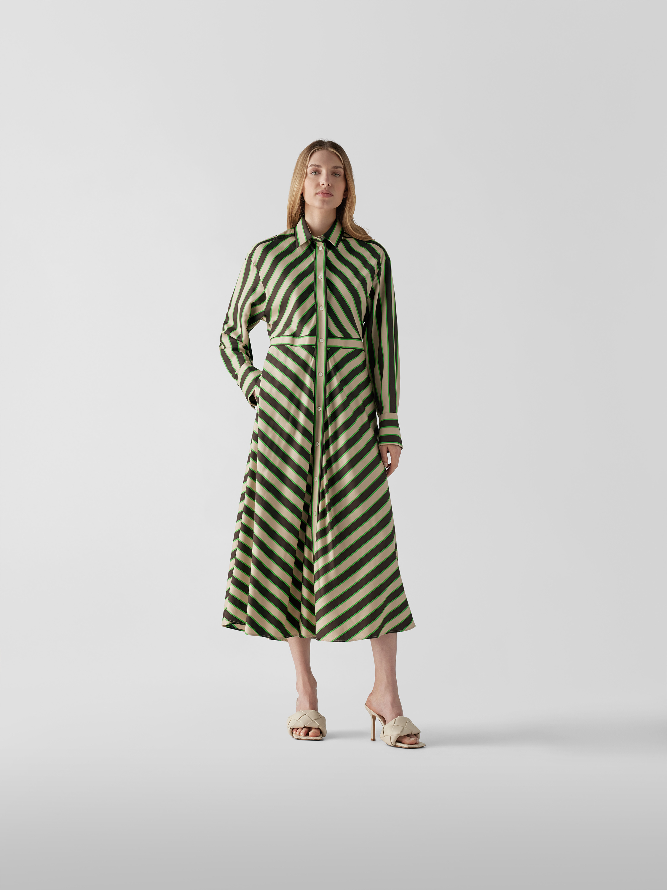 Das Maxikleid mit Streifenmuster von MSGM zeigt sich in einer geraden Passform und umspielt angenehm die Silhouette. Dank des Viskose-Mix fällt das Material weich und sorgt für ein luftiges Tragegefühl, während die langen Ärmel auch an kühleren Tagen Komfort schenken. Eingrifftaschen runden das Design praktisch ab.